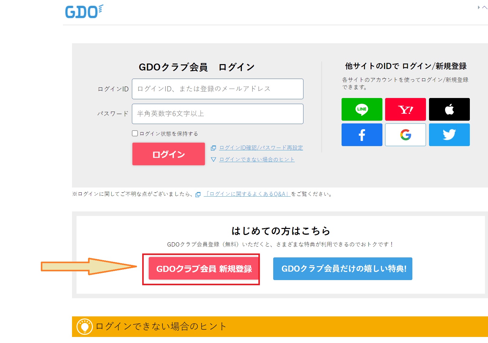 먼저, 메인 홈페이지 우측상단에 빨간버튼으로 된 로그인 버튼을 클릭하면 <GDO 골프회원 로그인>이라는 버튼을 눌러 진행하면 된다. 다만 처음 회원등록 하는 분은 <GDO 골프회원 신규등록> 이라는 항목을 클릭하여 진행하면 된다. 바로 옆에 보면 페이스북이나 구글메일 등의 로고가 보이는데, 연동 가입을 진행할 분은 그에 맞는 로고 그림을 클릭하여 진행하면 된다.