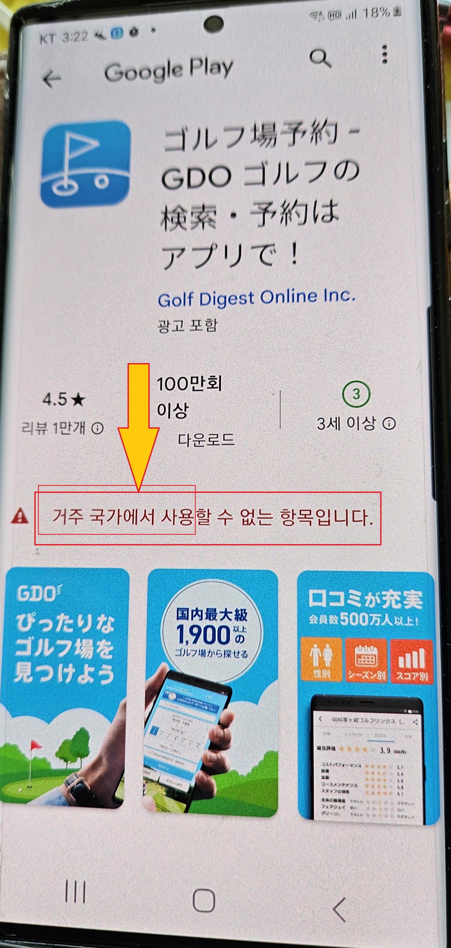 ▶ 앱에서 일본 골프장 예약을 해보니, 외국(한국)에서는 사용할수 없다고 한다. 골프장 예약은 일본에서만 사용이 된다고 한다.