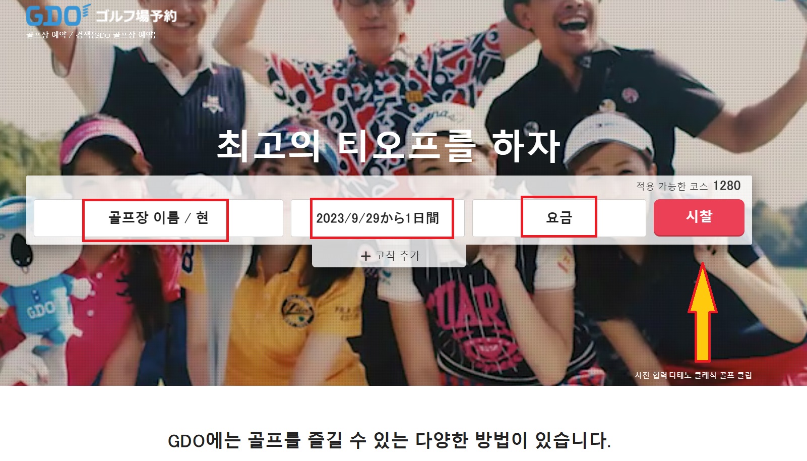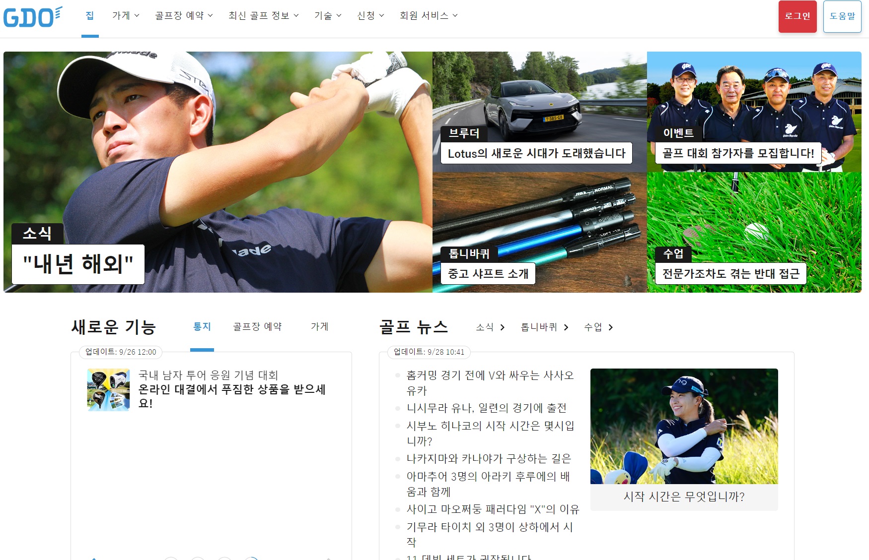 회원가입 후 다시 PC홈페이지 메인화면으로 이동해서 예약하면 된다. 만약 자동으로 메인화면 이동이 안될 경우에는 왼쪽 위에 있는 <GDO 로고>를 클릭하면 된다.