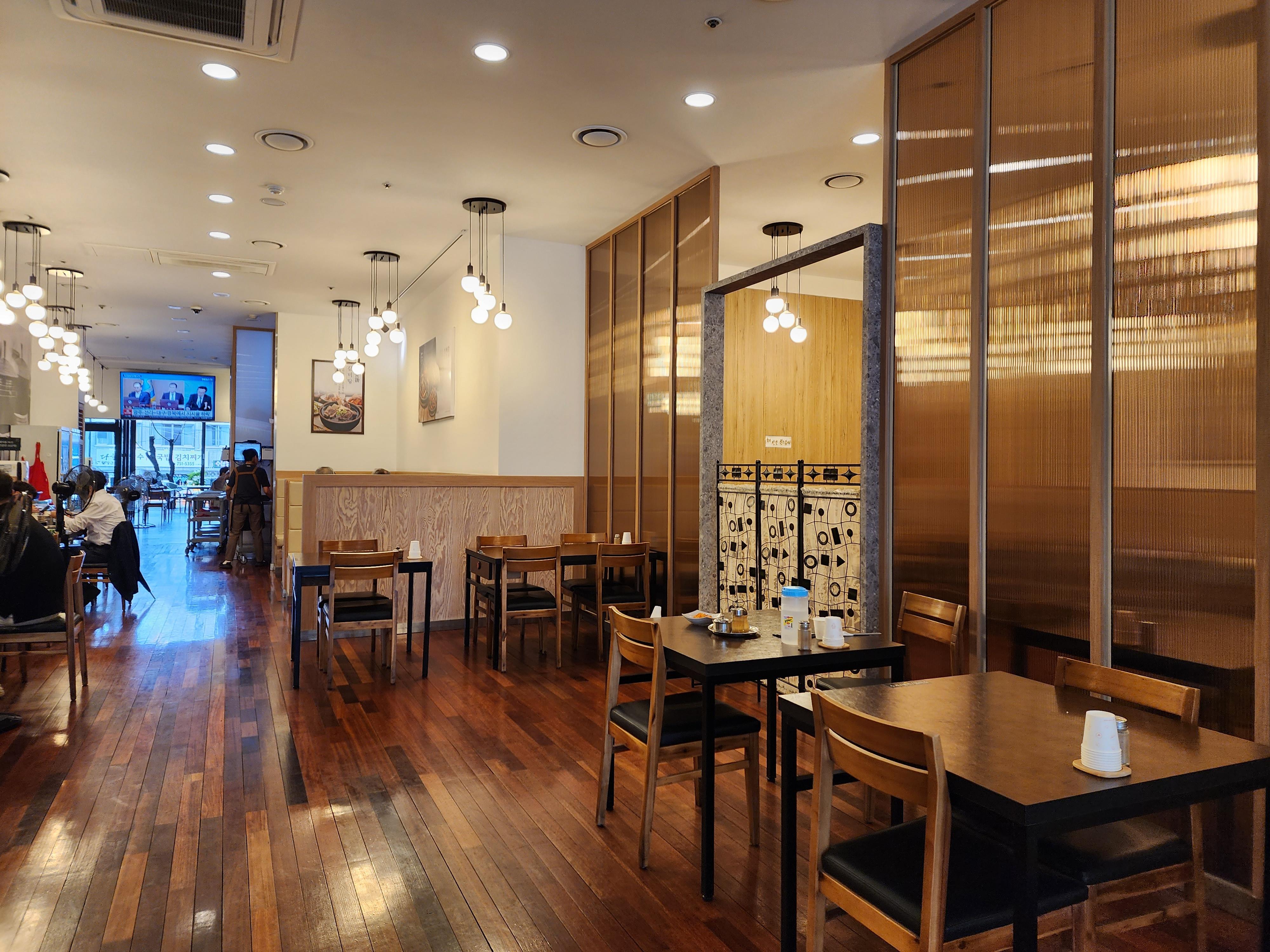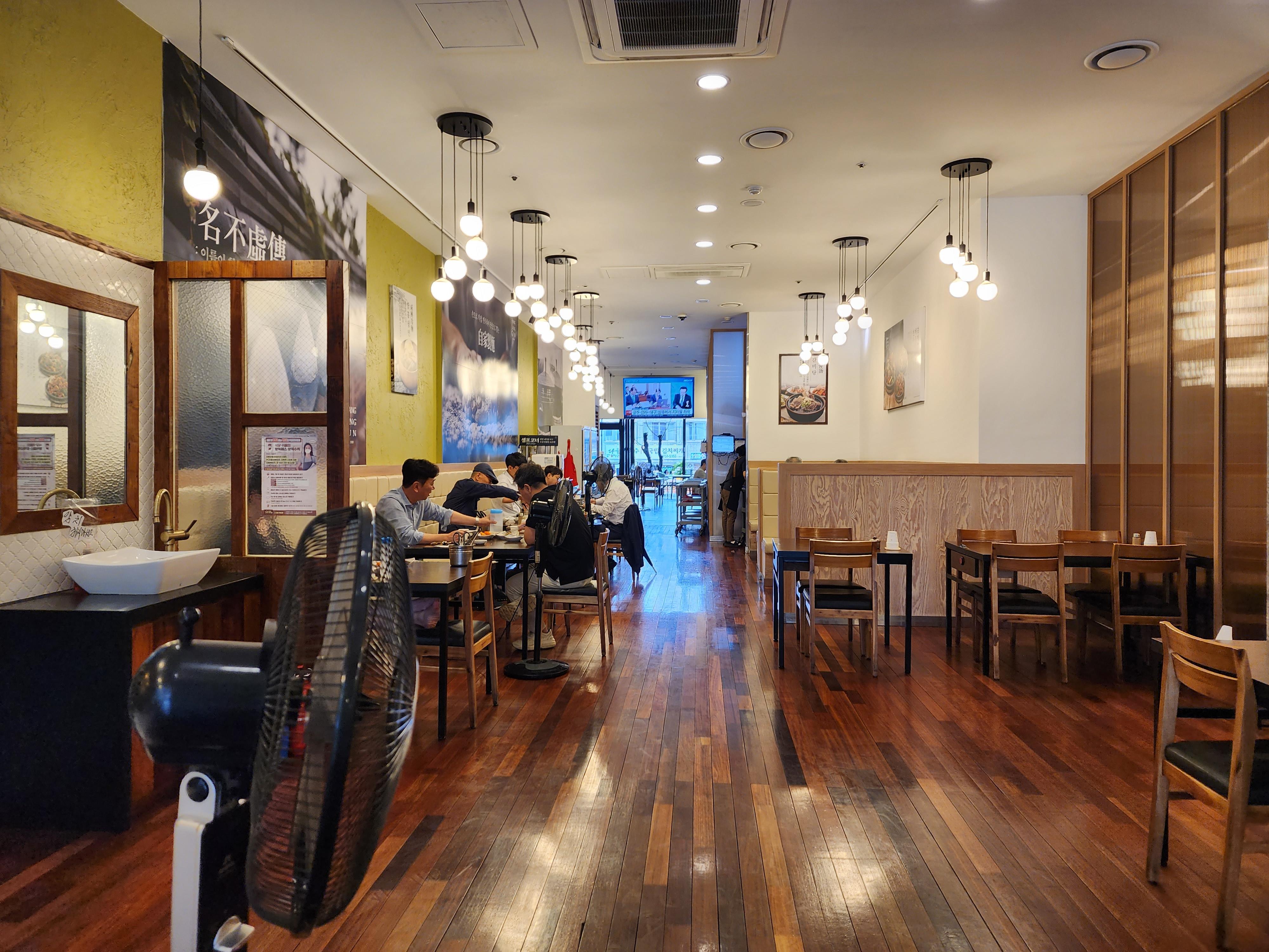 갈비탕에는 고기도 많고 진국인데, 보통 깍두기와 김치, 양파절임 등의 반찬이 나오고 냉면에는 깍두기만 약간 나온다. 저는 냉면의 면이 아주 가느다란 함흥낸명이 평양냉면보다 더 좋다.