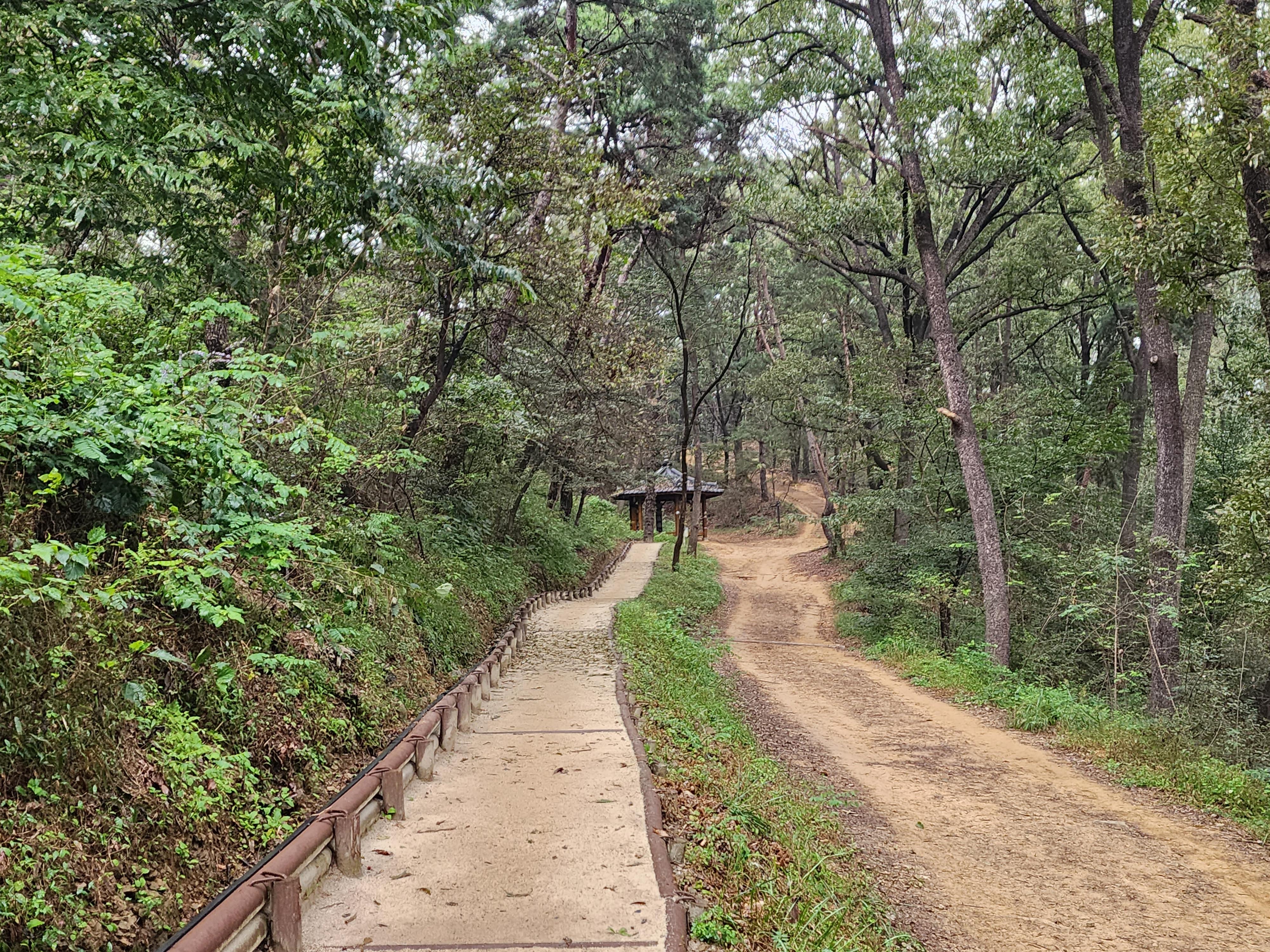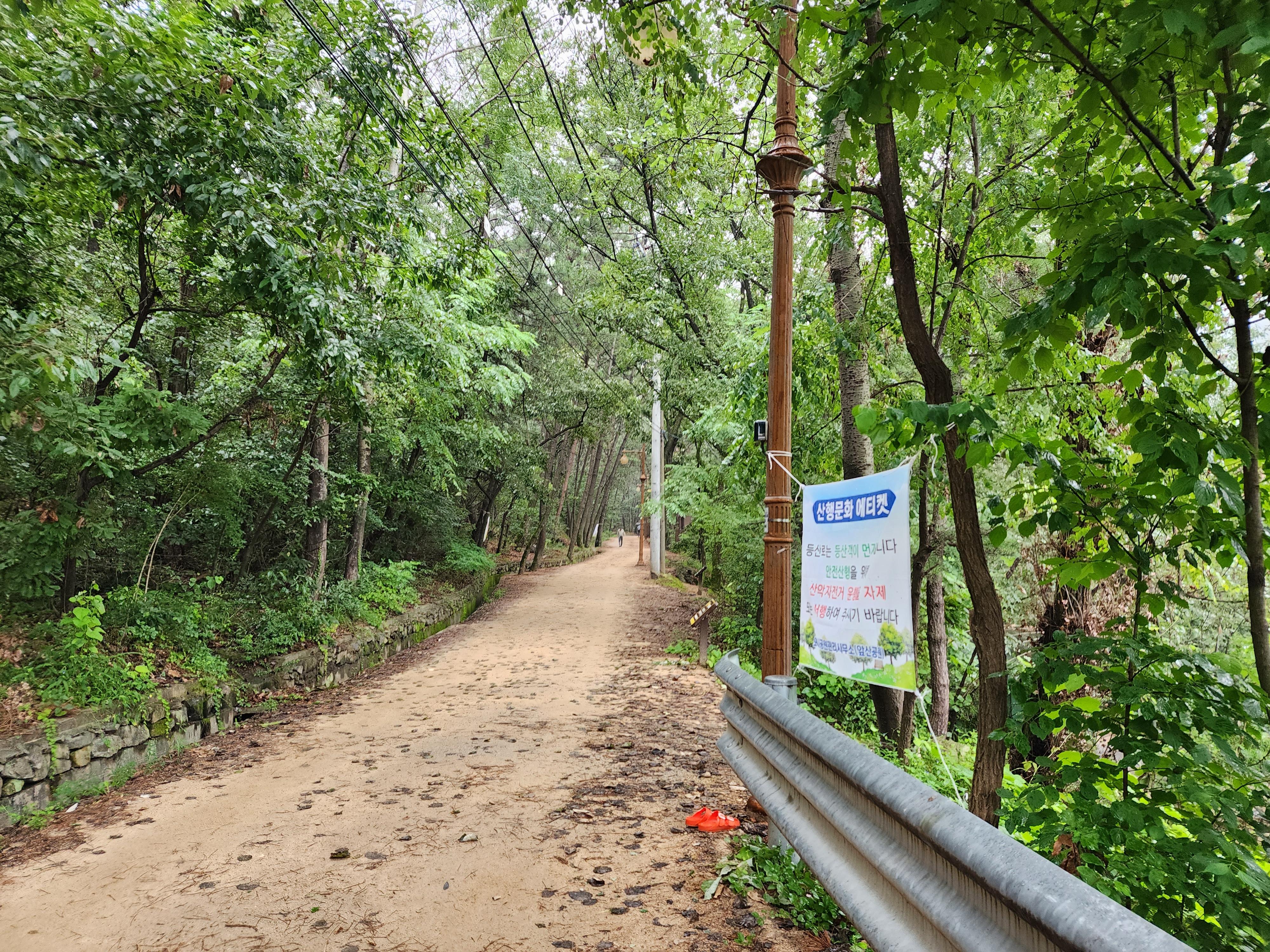 그런데 자락길 제1코스인 고산골 메타세콰이어길에서 강당골까지 편도 1.9km를 인데, 숲길과 맨발 산책로 2개 코스가 있다. 이 코스는 숲길 자락길도 있고, 별도 맨발 산책로를 편도 1.0km가 조성되어 있어 맨발로 걷는 분들도 많이 있다.