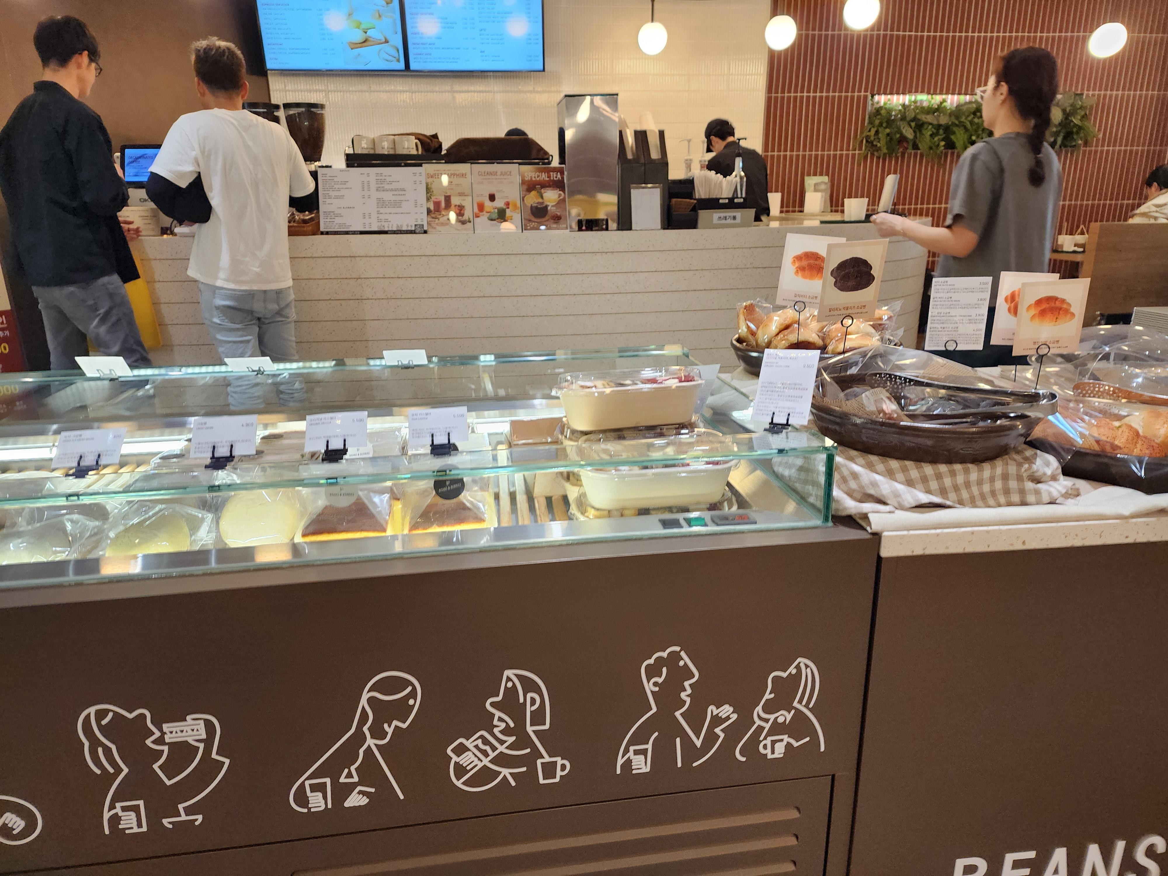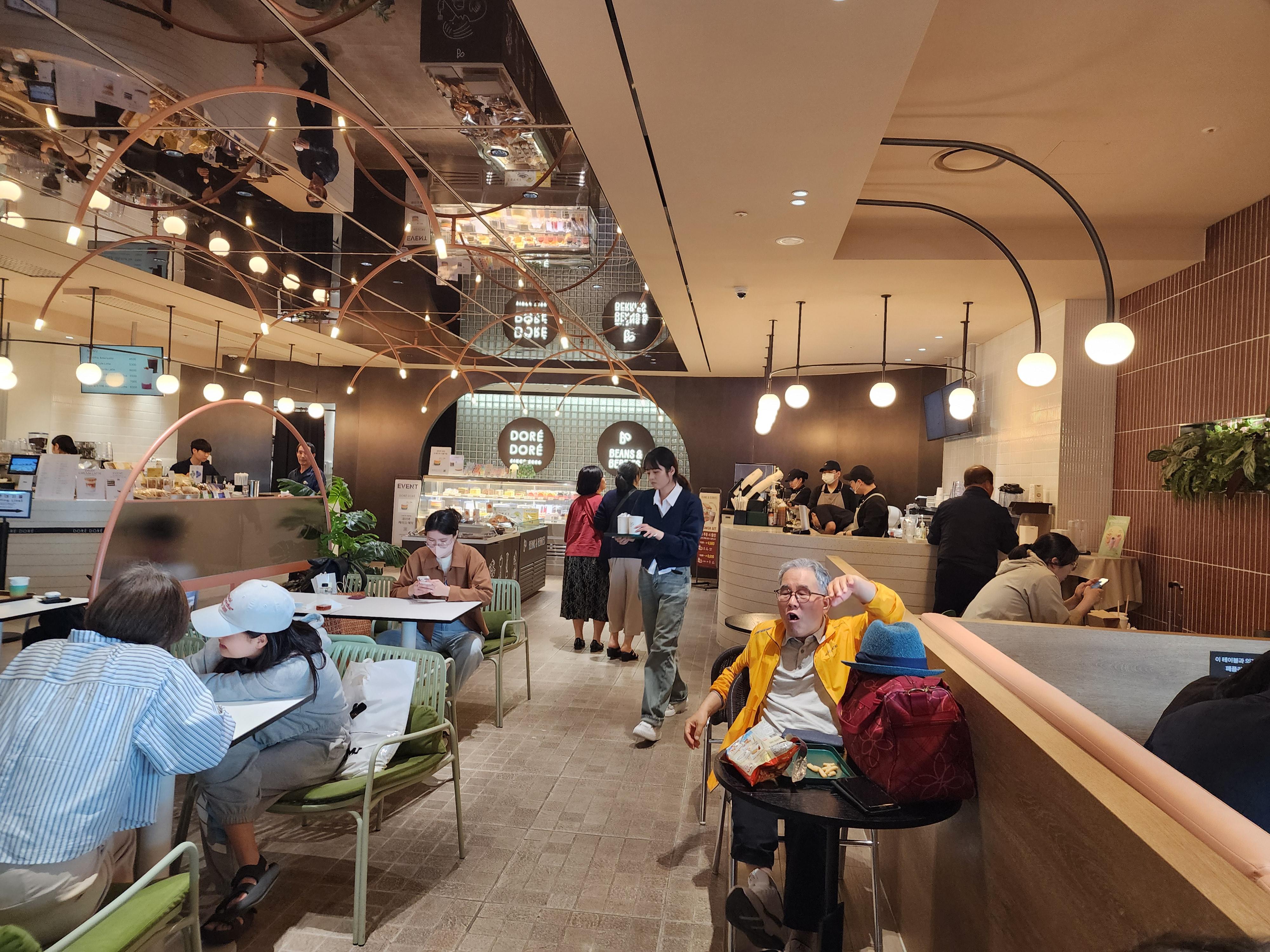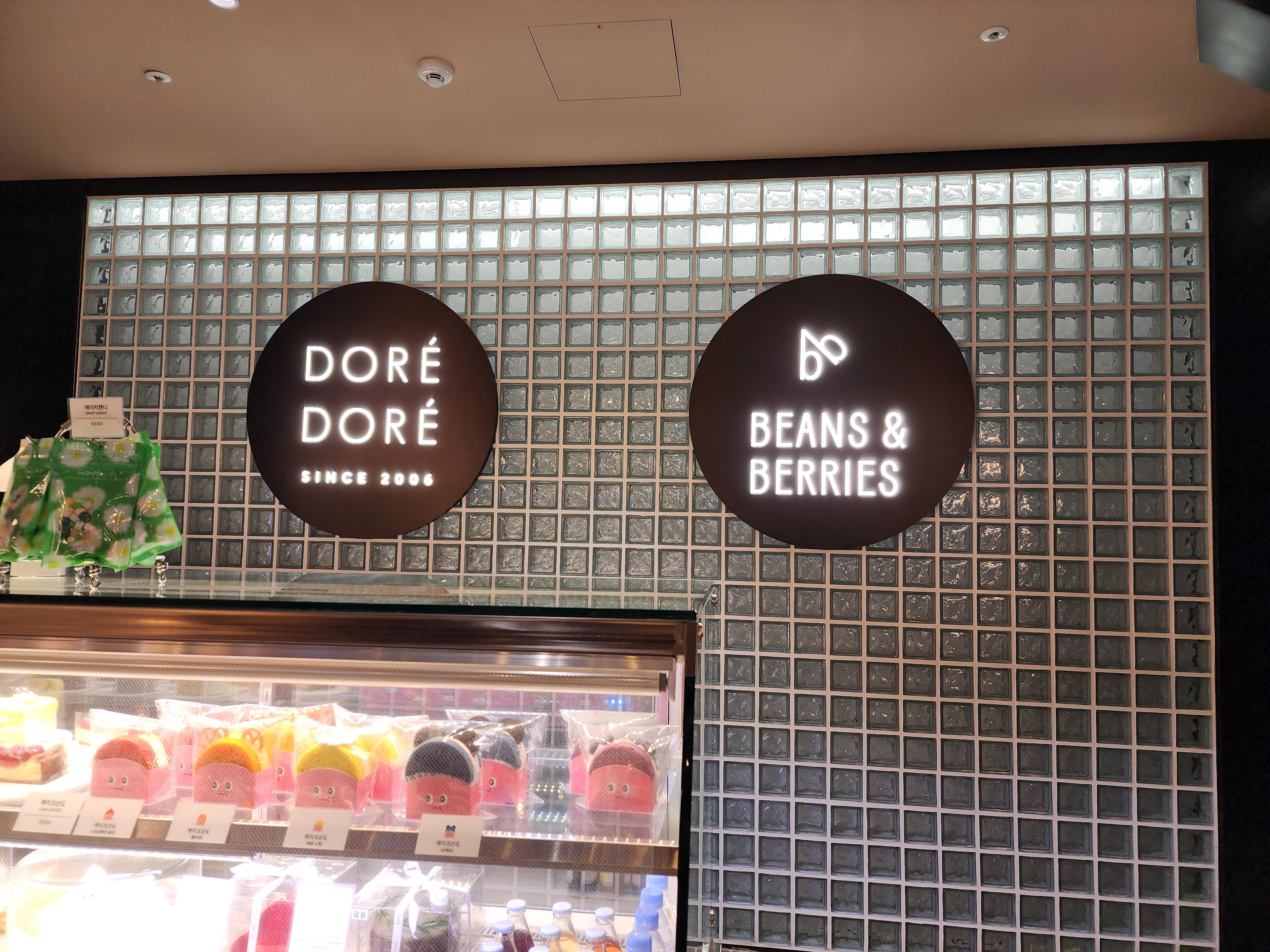저희는 이날 소금빵과 블루베리 생과일주스를 먹었는데 맛이 좋았다. 특히 소금빵에는 명란이 들어있어서 더욱 좋았다. 바로 옆에는 Dore Dore 커피숍이다. 각종 빵 종류도 다양하게 있다.