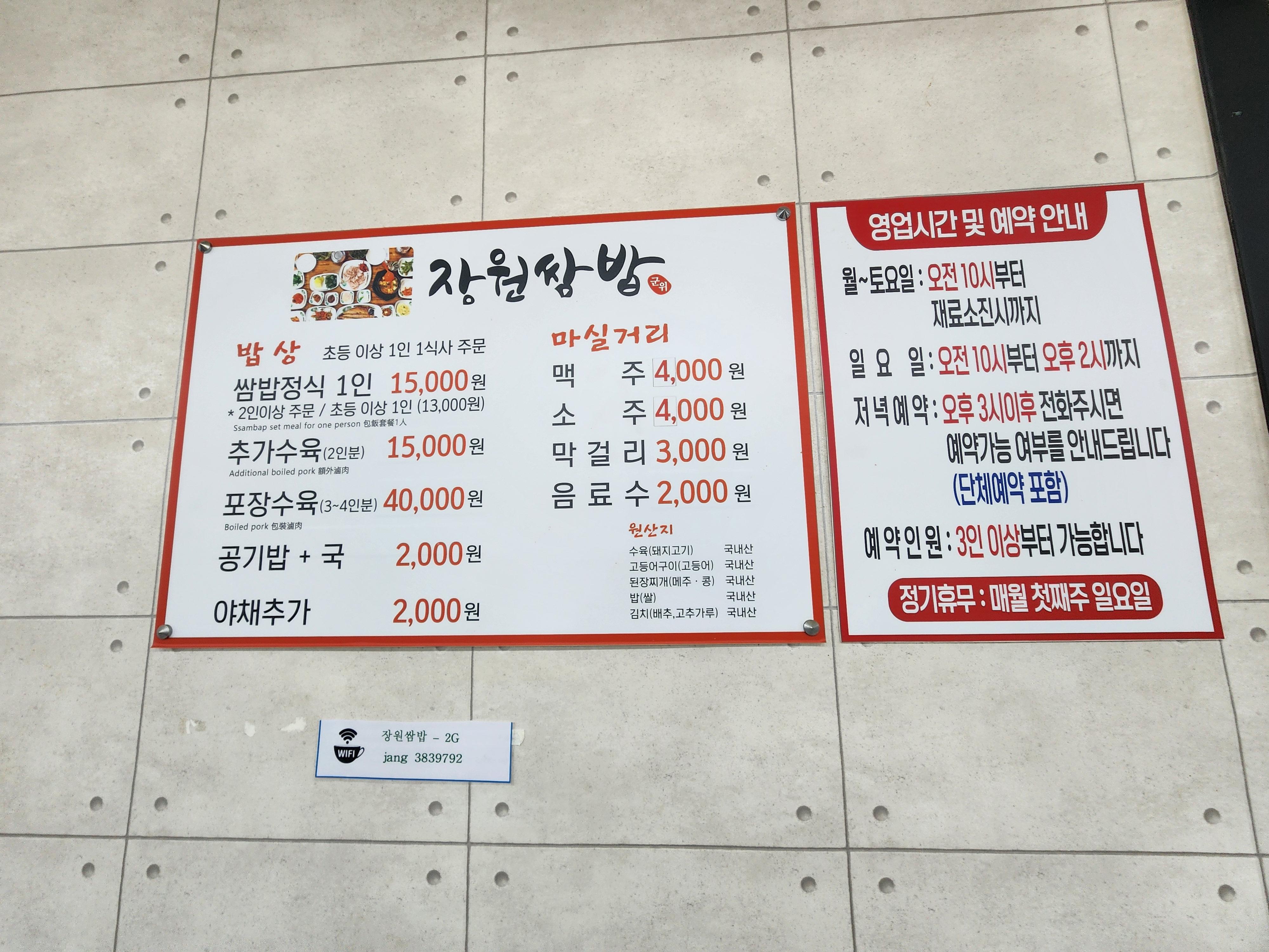 장원쌈밥은 판매하시는 메뉴가 쌈밥정식으로 단일 메뉴이다. 1인분에 15,000원이라서 가성비도 좋은 편이다. 원산지 표시판을 보니 대부분 국산이라서 더욱 신뢰가 갔다. 군위 근처에 가는 분들께 추천한다.