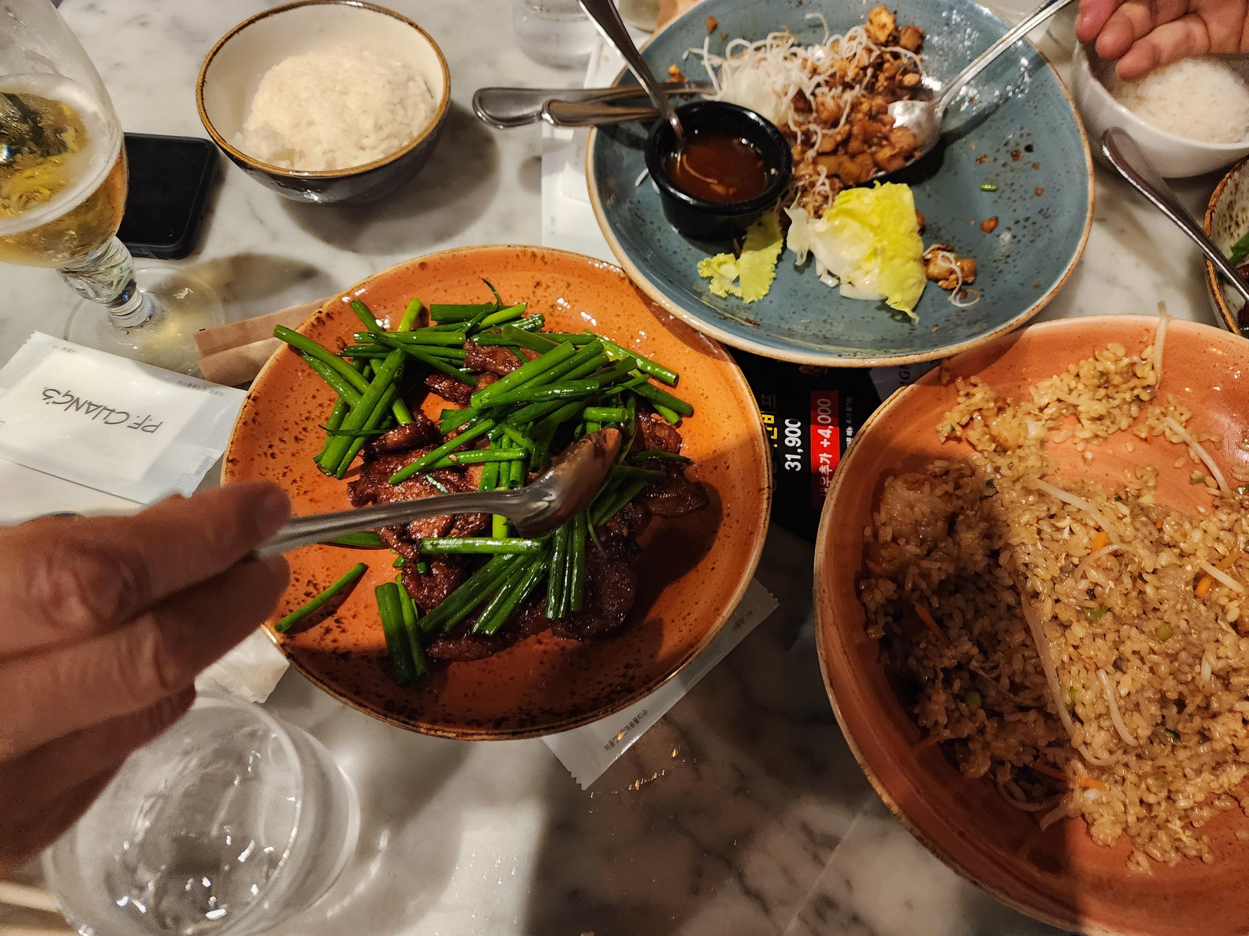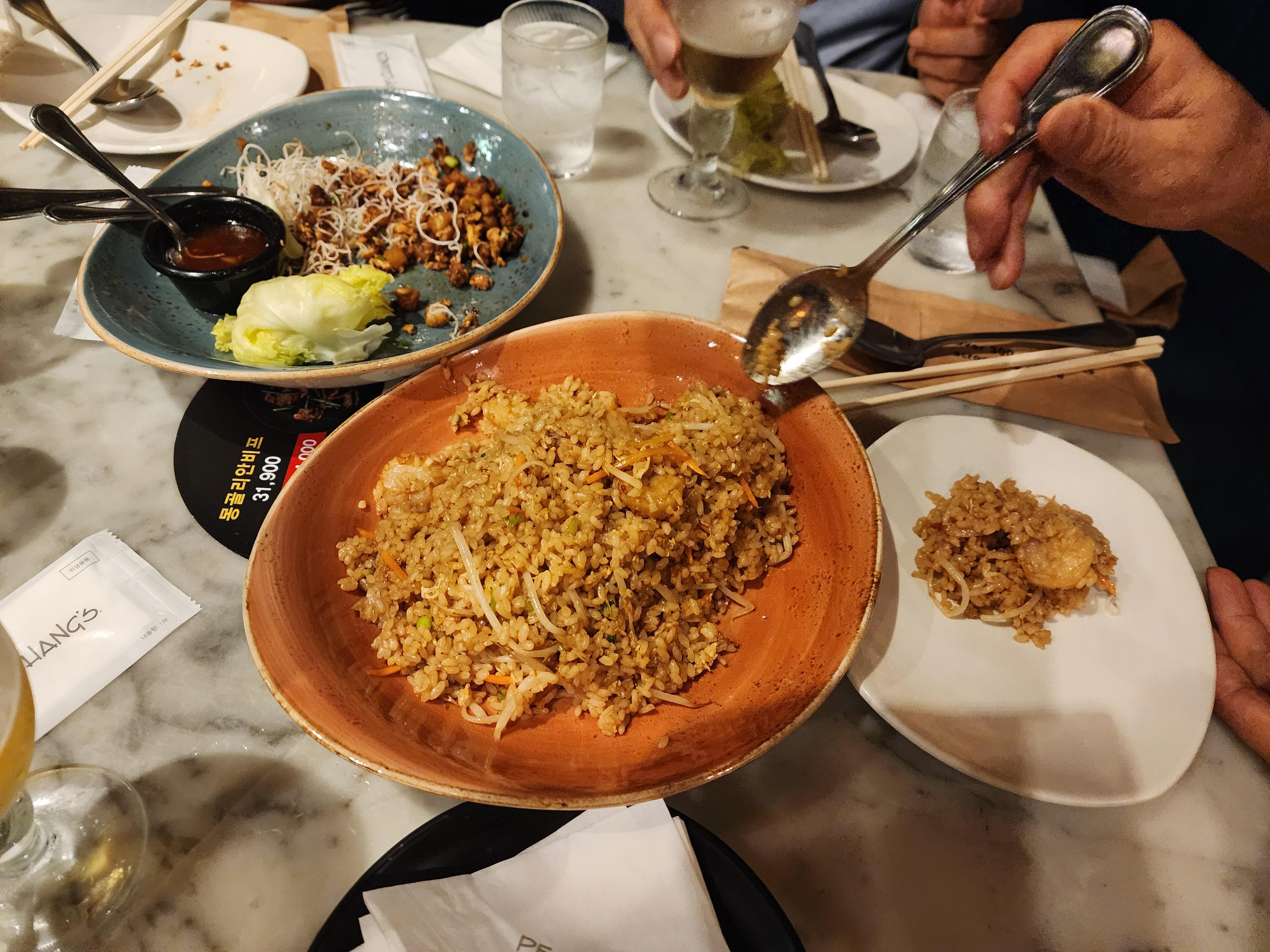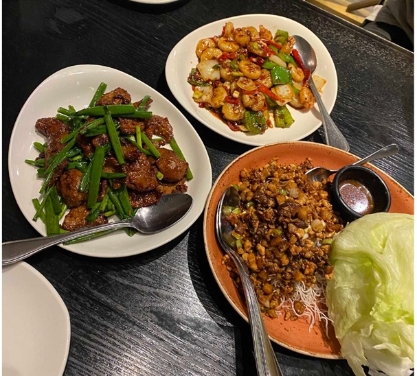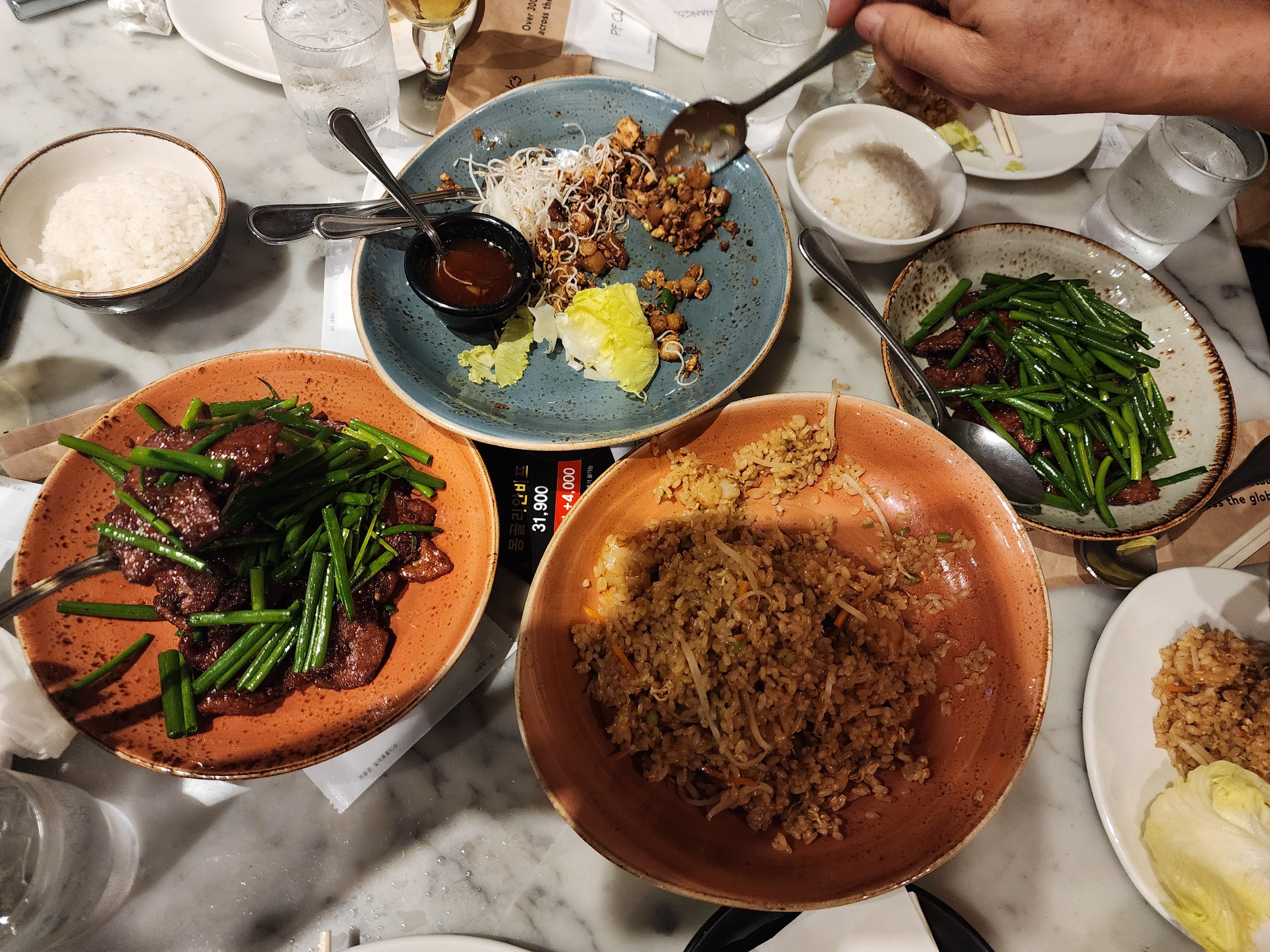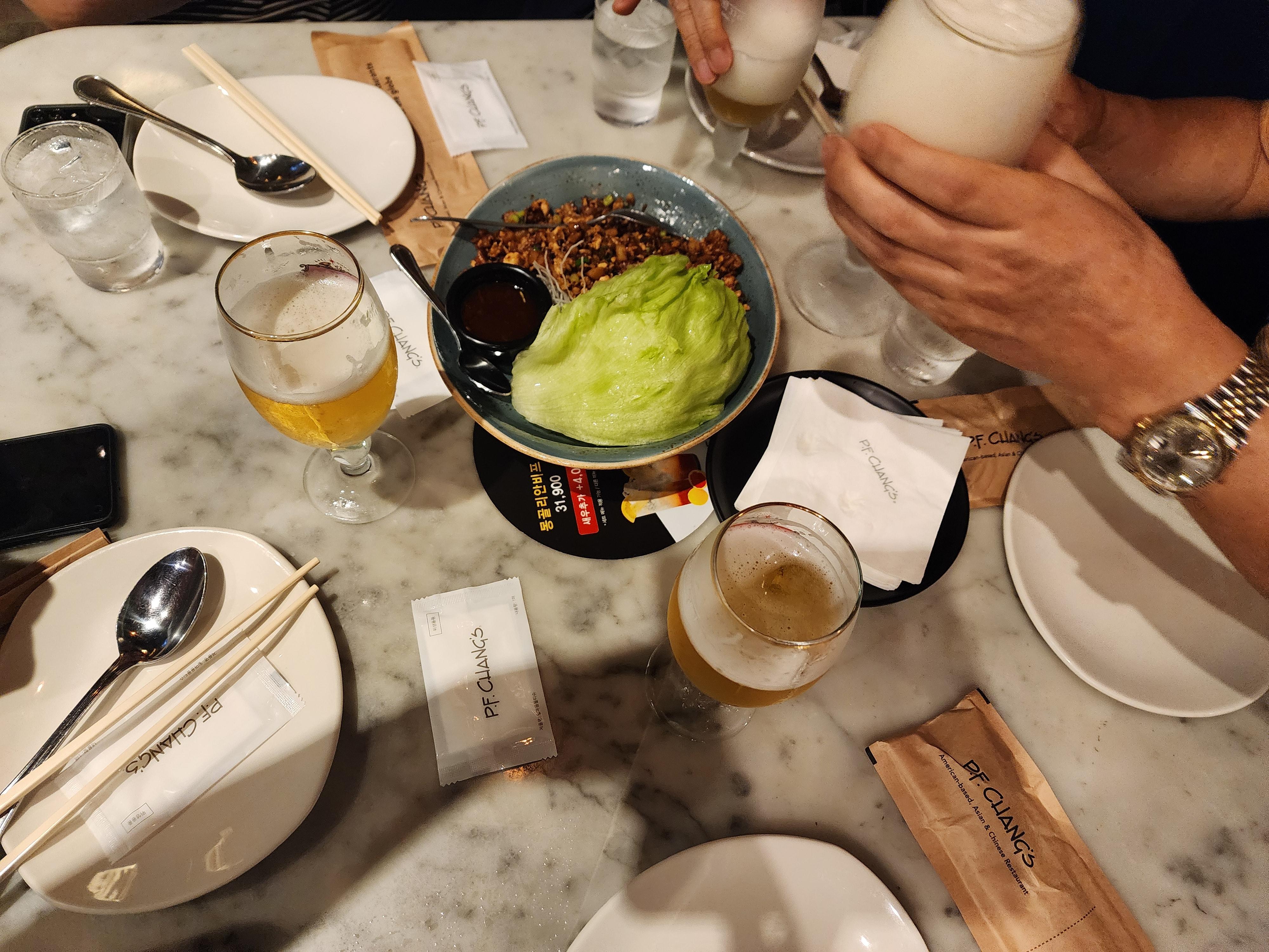 이날 저희는 창스 치킨래터스랩(다진 닭고기와 버섯등 라이스 스틱을 곁들여 양상추에 싸서 먹는 요리)과 몽골리안 비프(바삭하게 익힌 소고기 슬라이슬르 피에프창만의 특제소스로 볶아 낸 대표 인기요리), 프라이드 라이스 등을 주문하여여 먹었다.