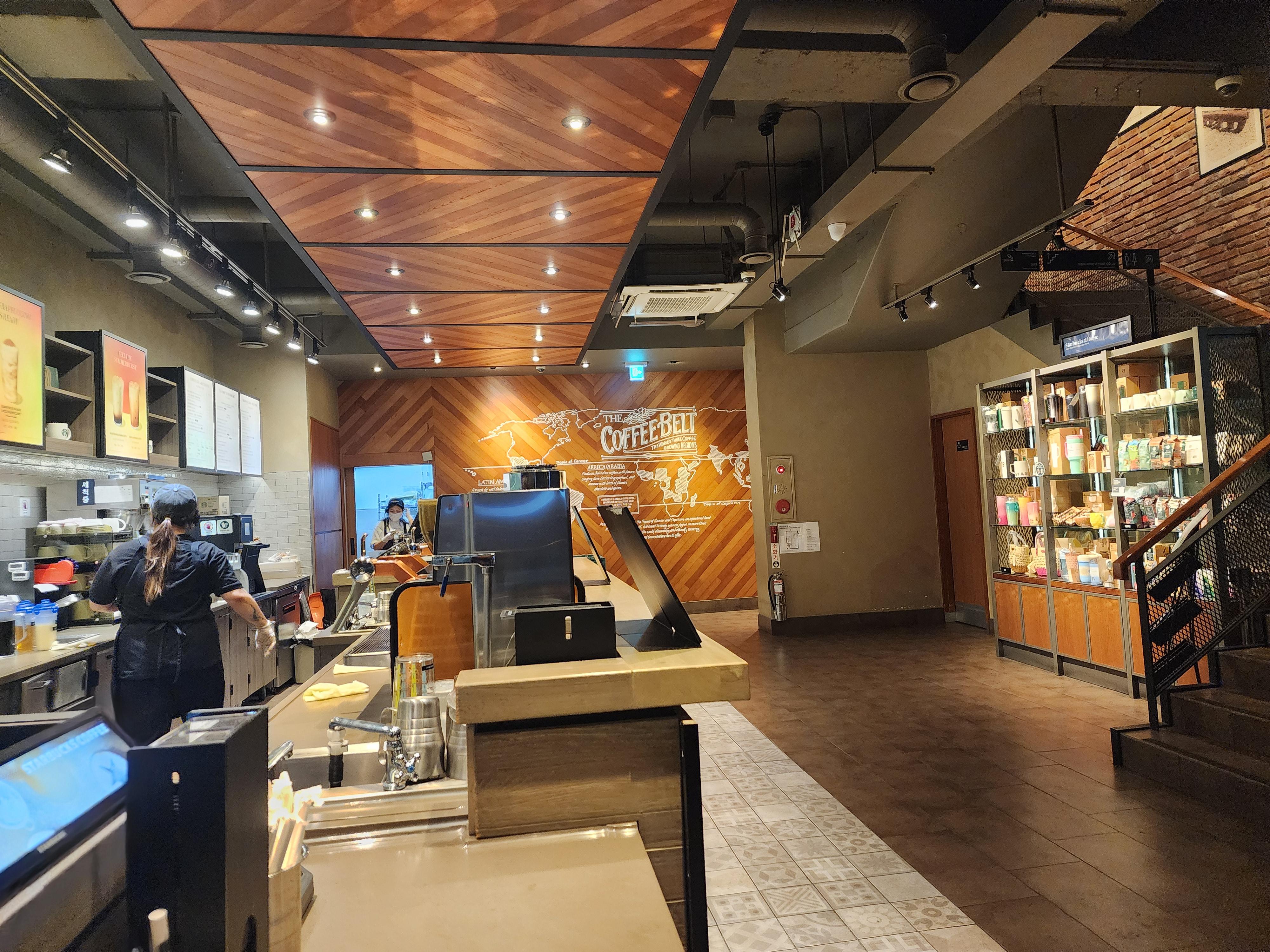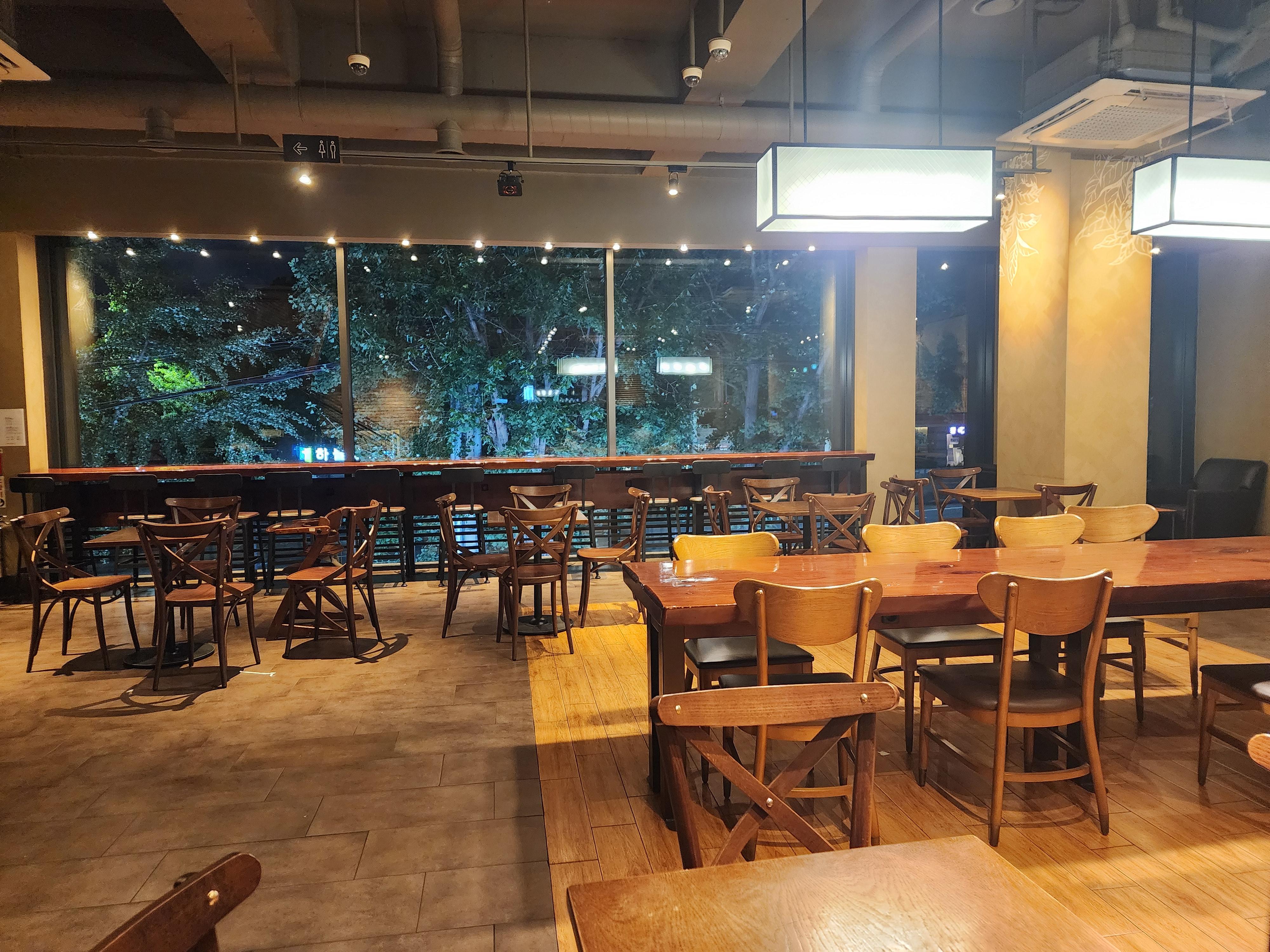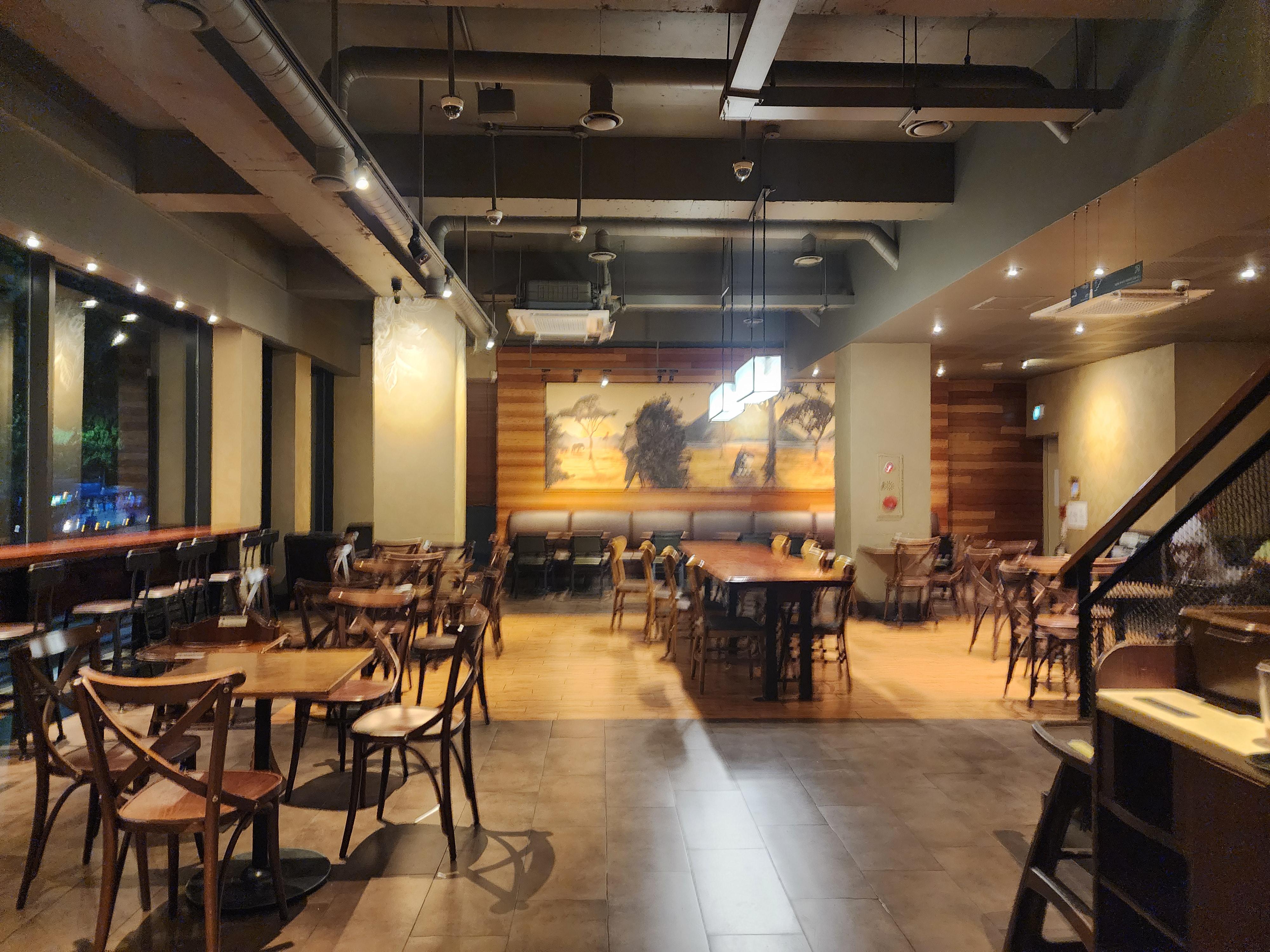 카페는 1층과 2층으로 구성되어 있는데, 1층은 카운터와 몇 개의 테이블이 있고, 2층에 많은 테이블이 있다. 주로 1층에서는 주문하고 2충에서 담소하고, 쉬는 편이다.
