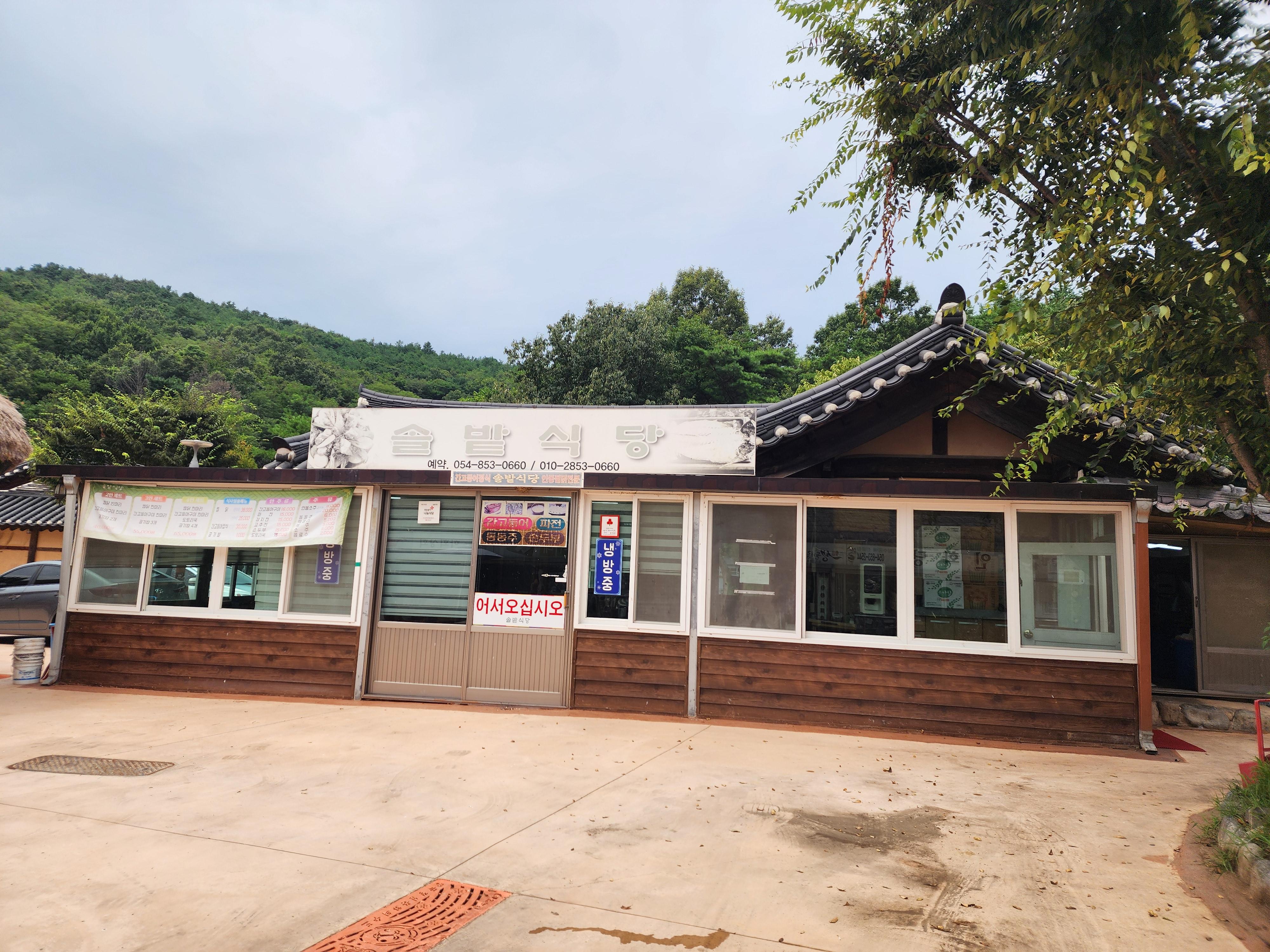 경북 안동시 풍천면 하회장터에 위치한 하회 솔밭식당은 하회별신굿 탈놀이 공연장 및 하회마을 도보거리에 위치하고 있어 관광지 접근성이 좋다. 안동찜닭, 간고등어정식 등 안동 대표음식을 판매하고 있으며, 간고등어정식을 주문하면 10가지 이상의 다양한 밑반찬이 함께 제공된다.