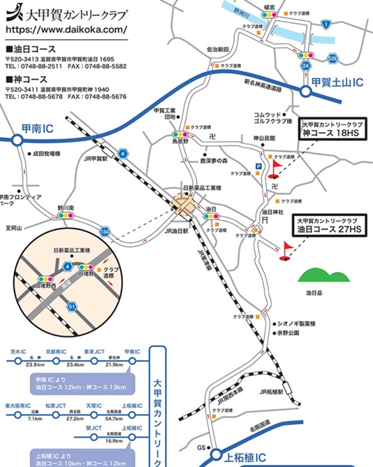 시가현과 미에현의 경계에 위치한 이 클럽은 스즈카 산맥과 유히산 등의 산에 둘러싸인 숲 코스이다. 개장 40 년 이상이 지난 대만의 자랑 첸 칭보 프로를 컨셉으로 간사이 지역 최초의 구부러진 원 그린의 디자인과 천연 나무를 그대로 살린 디자인, 그린