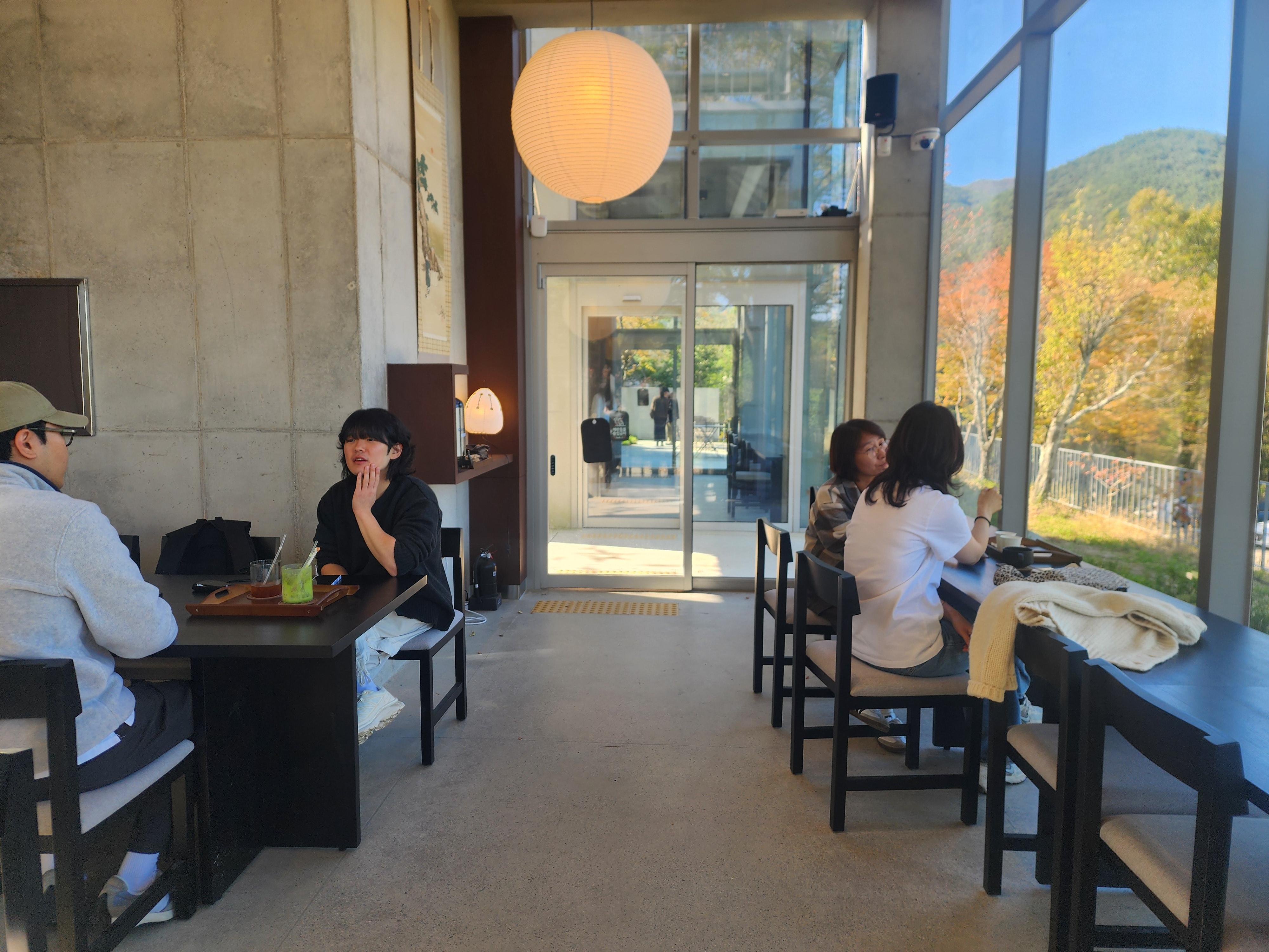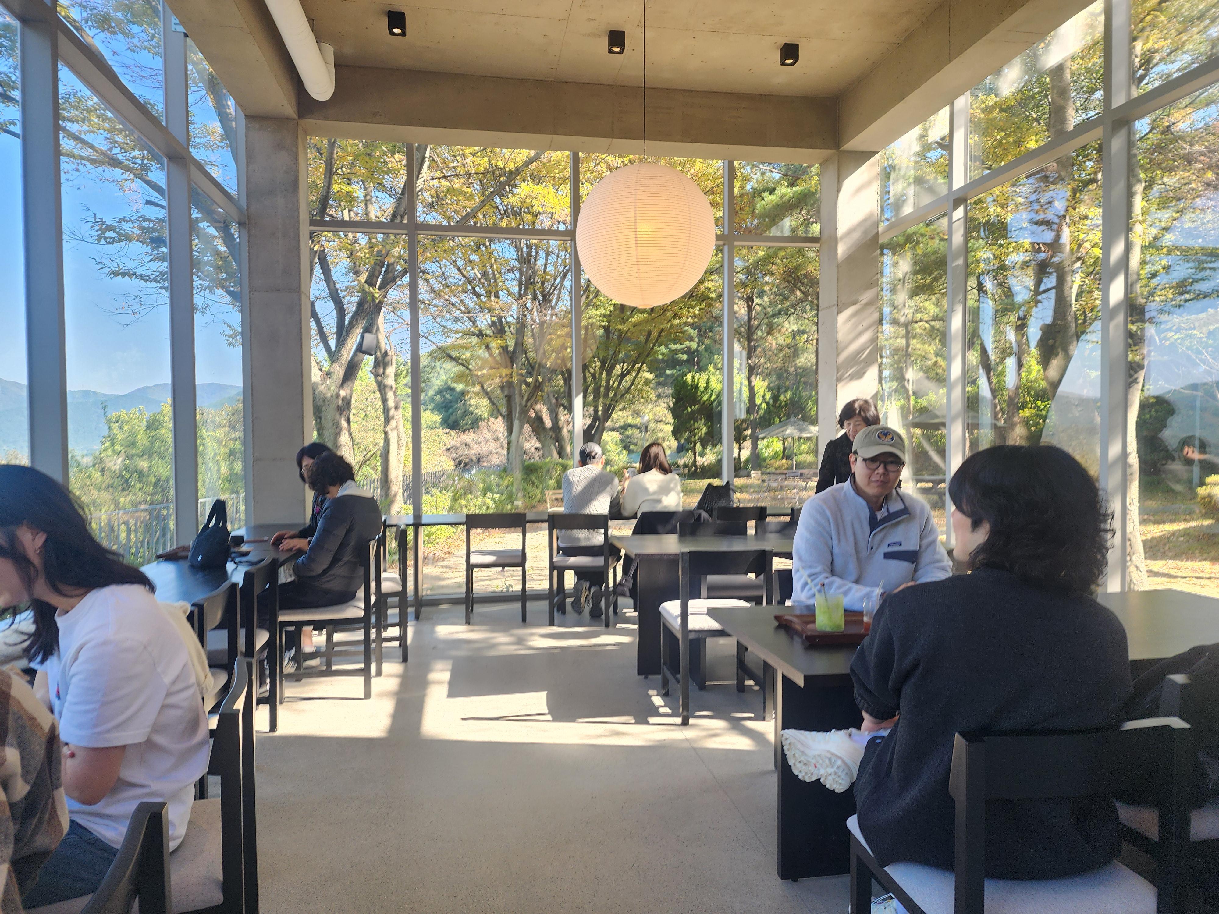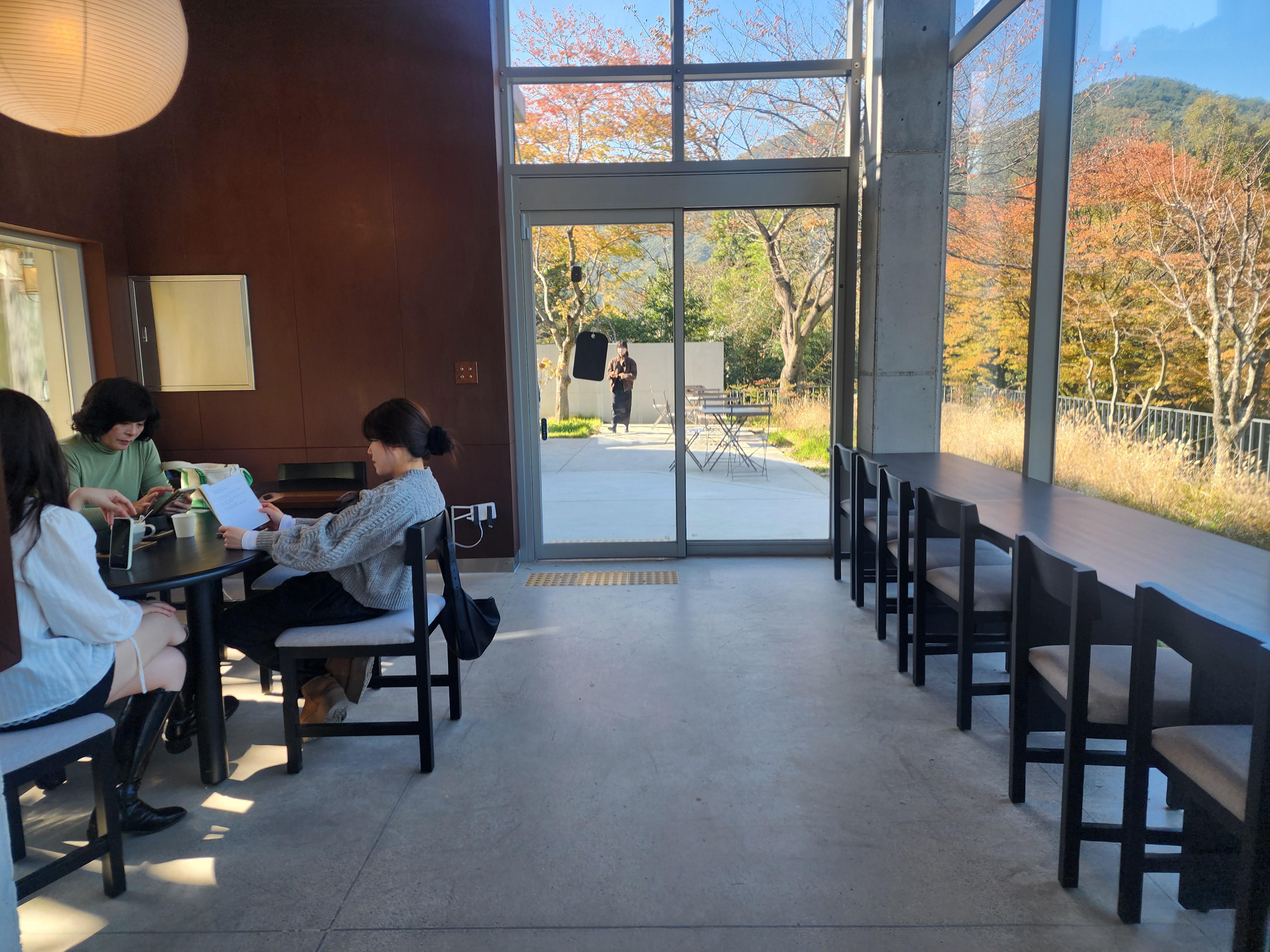1. 분위기: 일본 교토 감성이 물씬 풍기는 아늑한 찻집이다. 숲 속 뷰를 감상할 수 있는 현대적인 공간과 고즈넉한 분위기의 다다미방이 있어 다양한 감성을 느낄 수 있다.