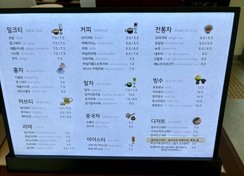 2. 메뉴: 일본식 찻집답게 차(茶) 종류가 다양하며, 특히 말차 라테와 같은 음료 메뉴가 좋은 반응을 얻고 있다.