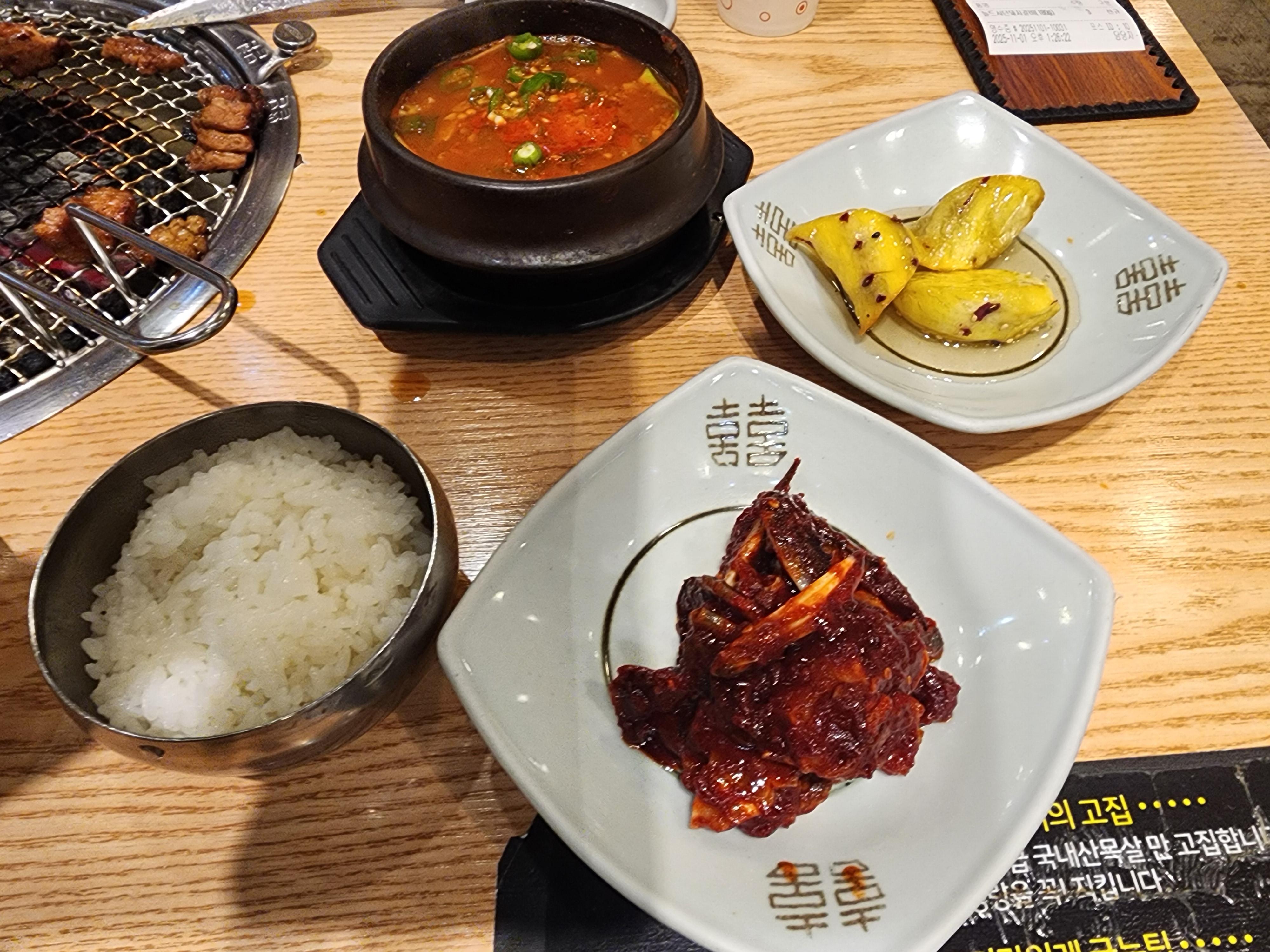 ▶ 된장찌개는 서민돼지갈비가 더 좋았다. 이곳은 꽃게장이 나와서 좋았고, 더 달라고 하니 추가로 주었다.