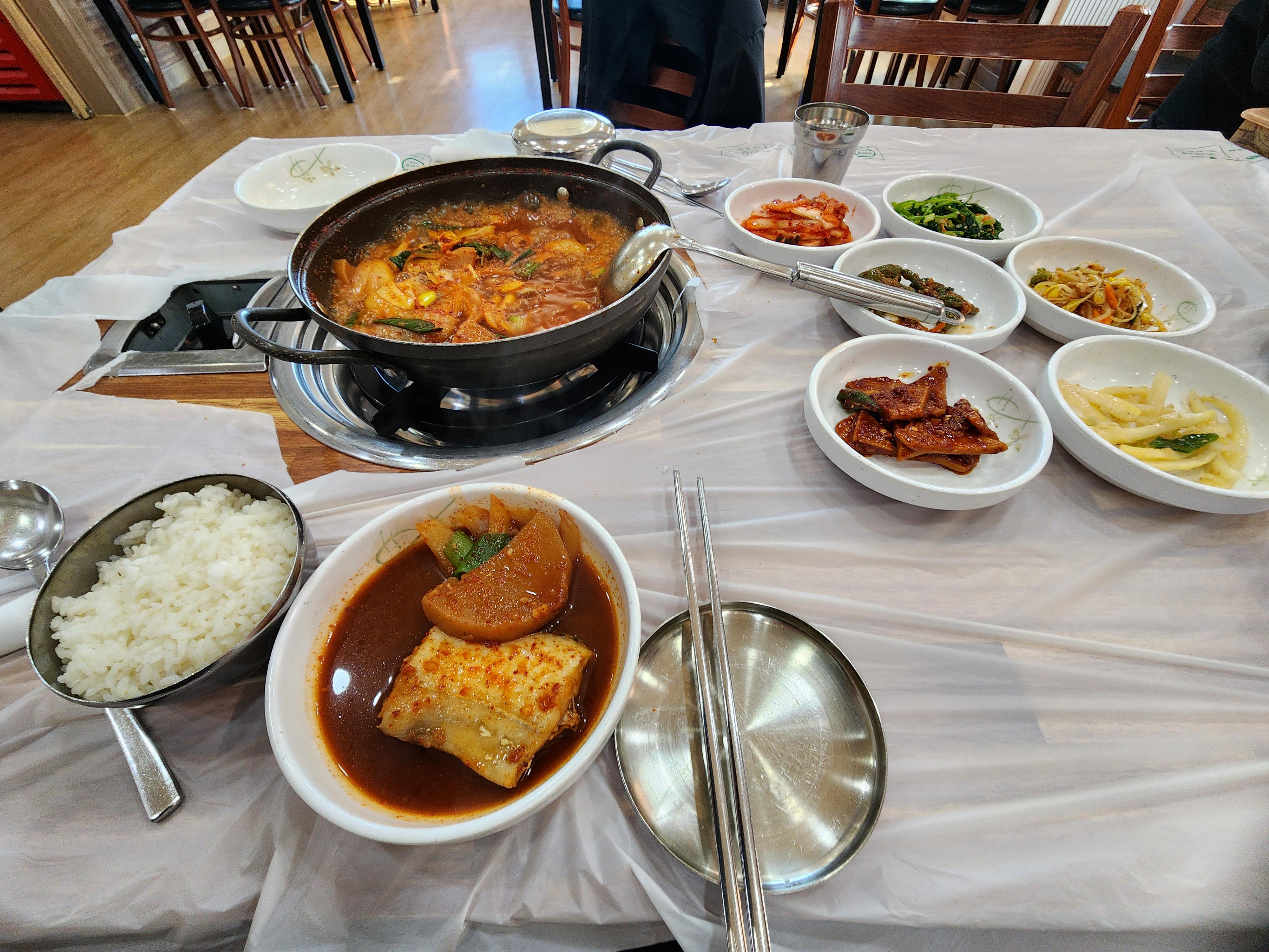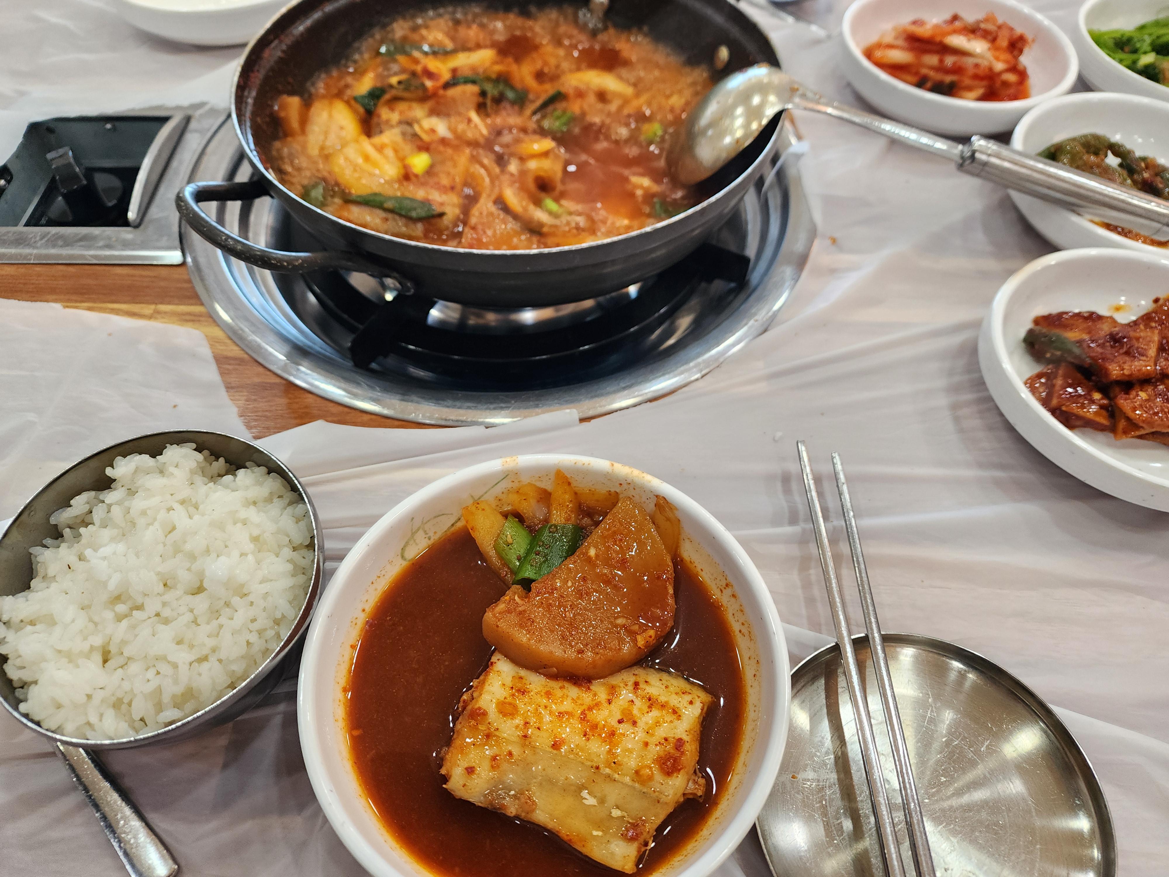경북 상주 모서마을은 상주블루원CC 근처 가정식 백반 맛집이다. 갈치조림과 동태찌개, 두부전골과 시골청국장, 삼겹살 등을 하고, 밑반찬도 좋았다.