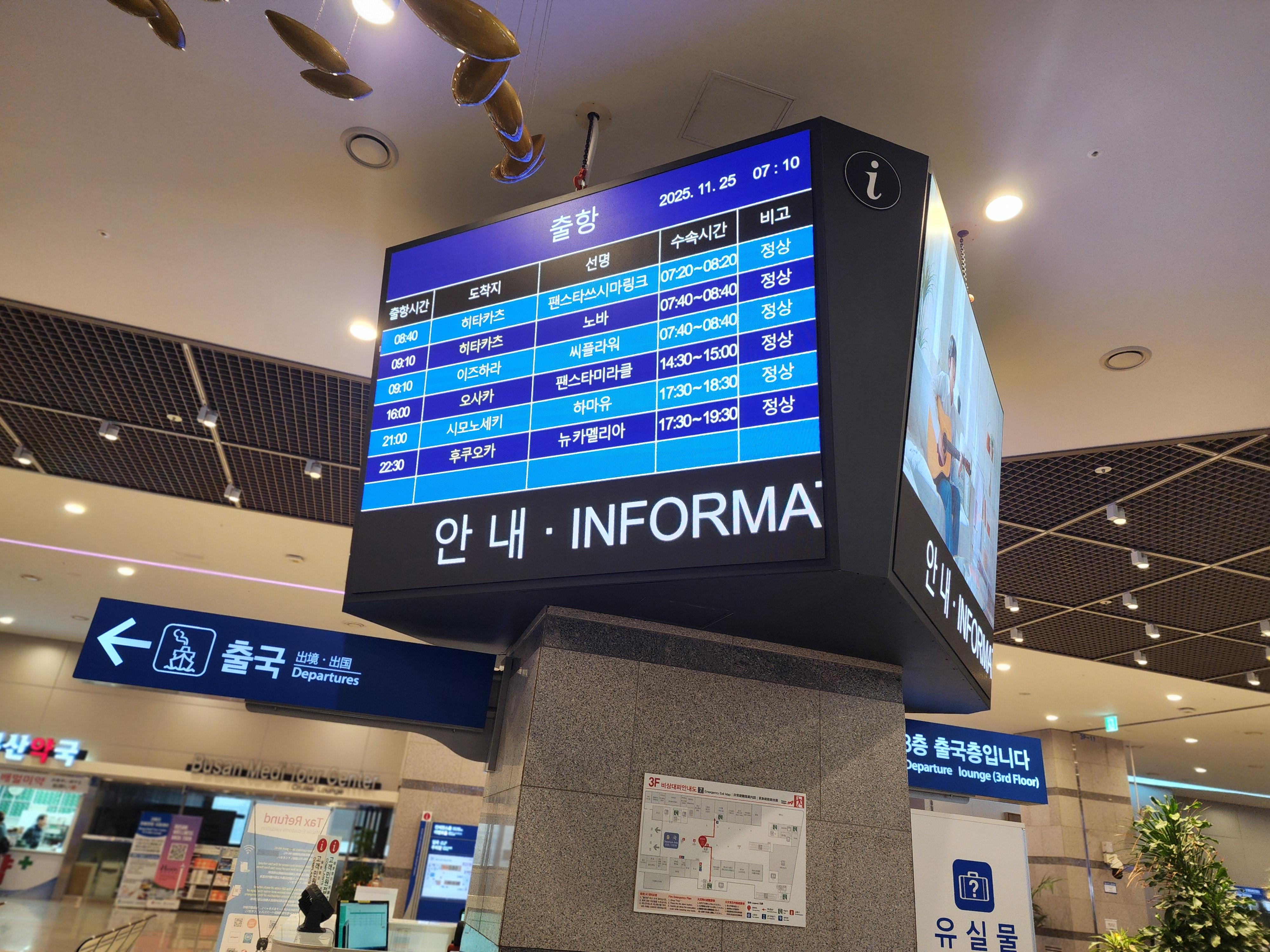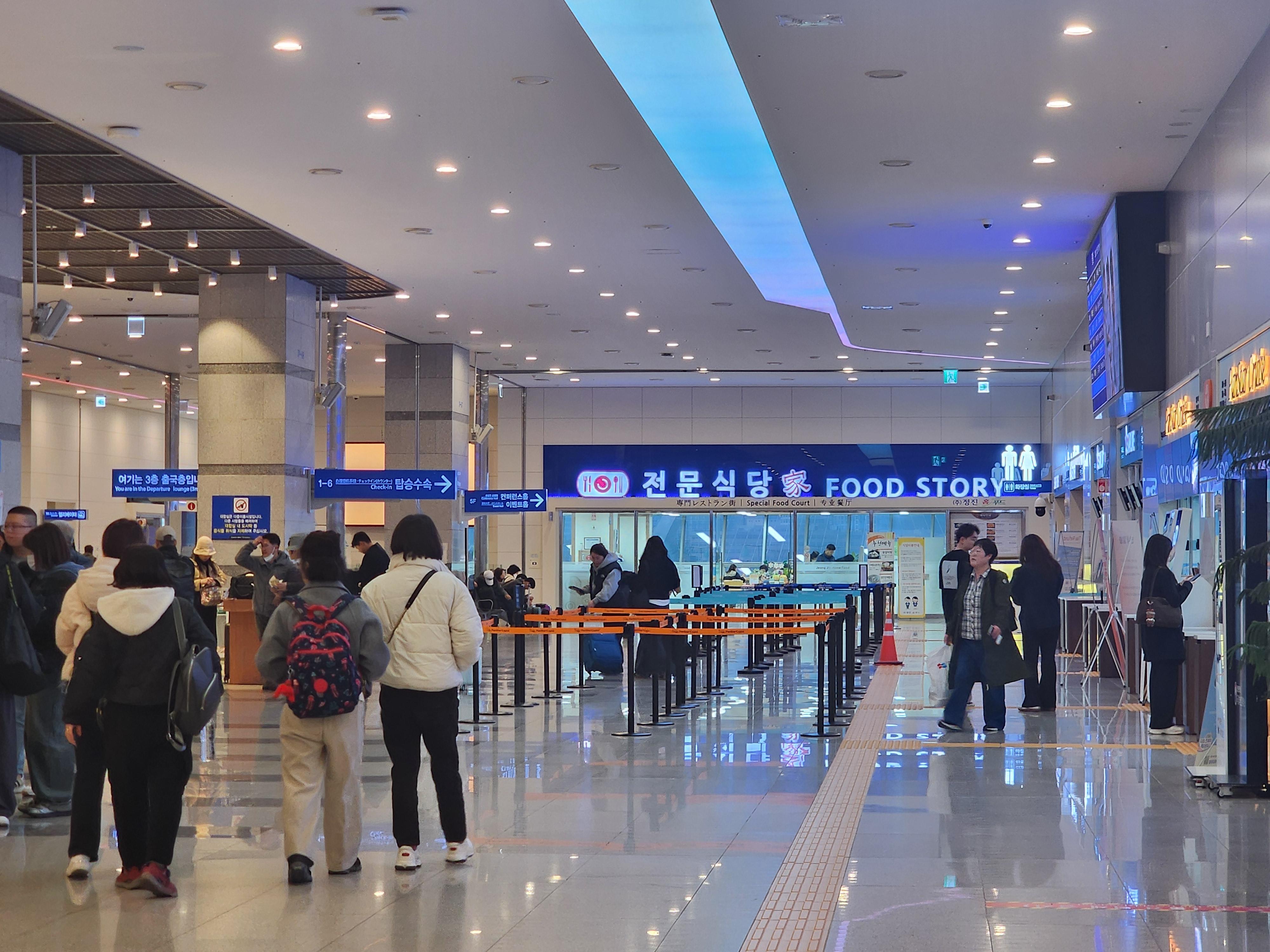 ▶ 부산항 국제여객터미널 3층 출국장; 매표소와 전문 식당가, 커피숍, 약국 등이 있었다.