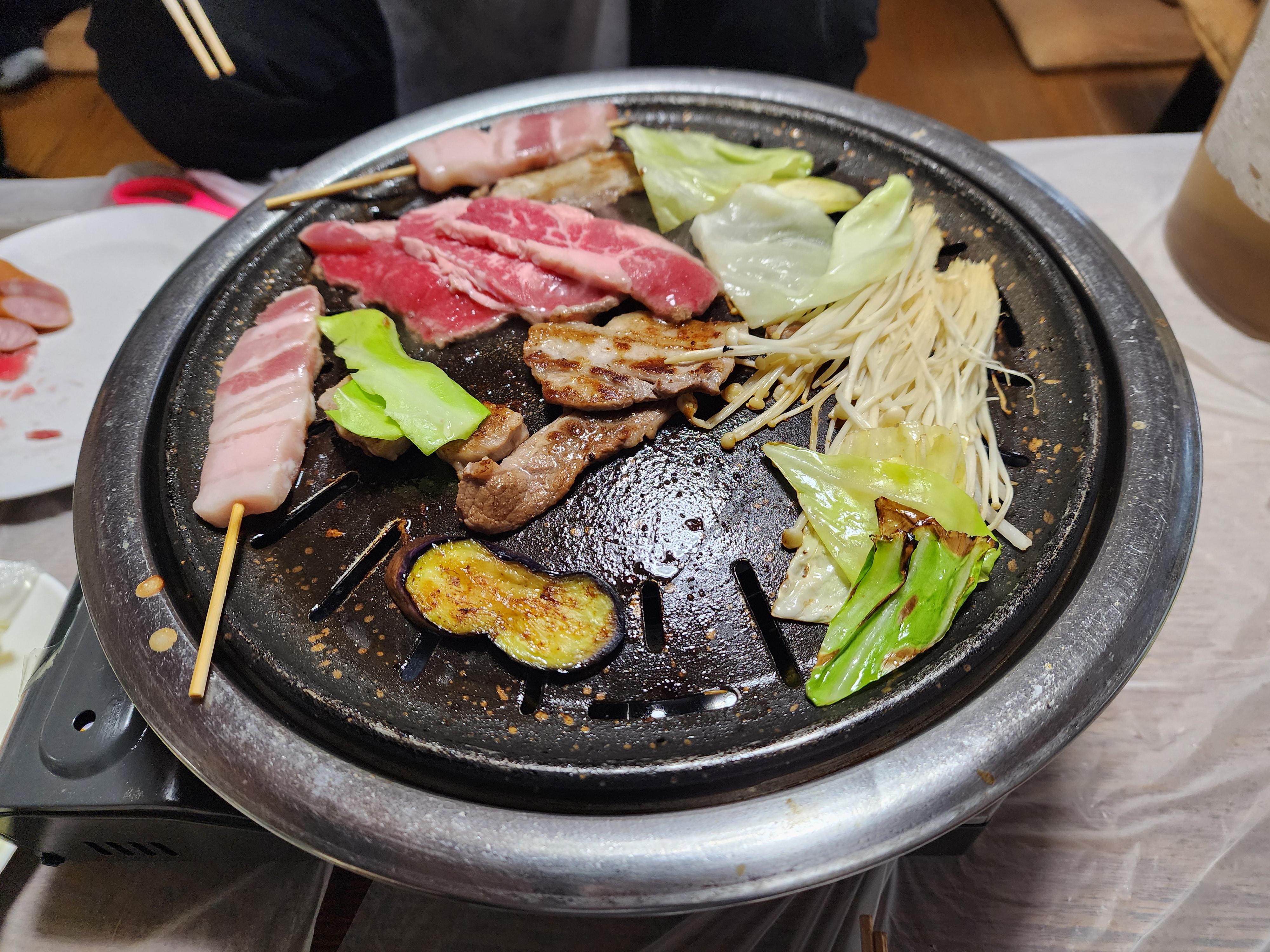 첫날은 도착하자마자 한인 식당에 들어가서 도시락으로 점심 식사를 하였다. 한 끼 식사로는 부족함이 없었다. 그리고 오후 관광을 한 다음 이즈하라항 근처에 있는 오렌지호텔에 투숙한 후 근처에 있는 바비큐 식당에 저녁을 먹고 각자 시간을 가진 후 투숙하였다. 저녁은 베베큐 음식으로 좋은 편이었다. 그다음 날 조식은 호텔에서 일본식 정식으로 식사를 하고, 관광 후 점심은 우동과 초밥 등 등 일본 정식으로 하였다.