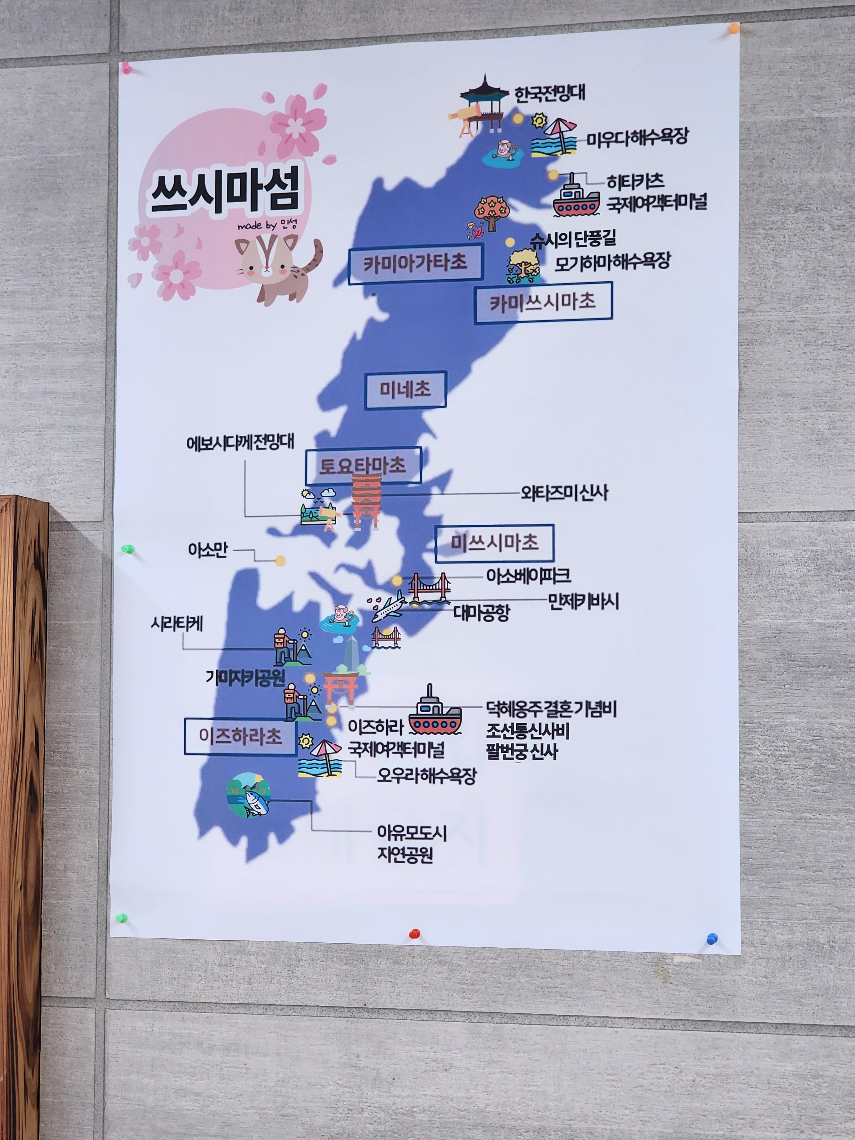 ▶ 벽면에 붙여있는 대마도 관광안내도