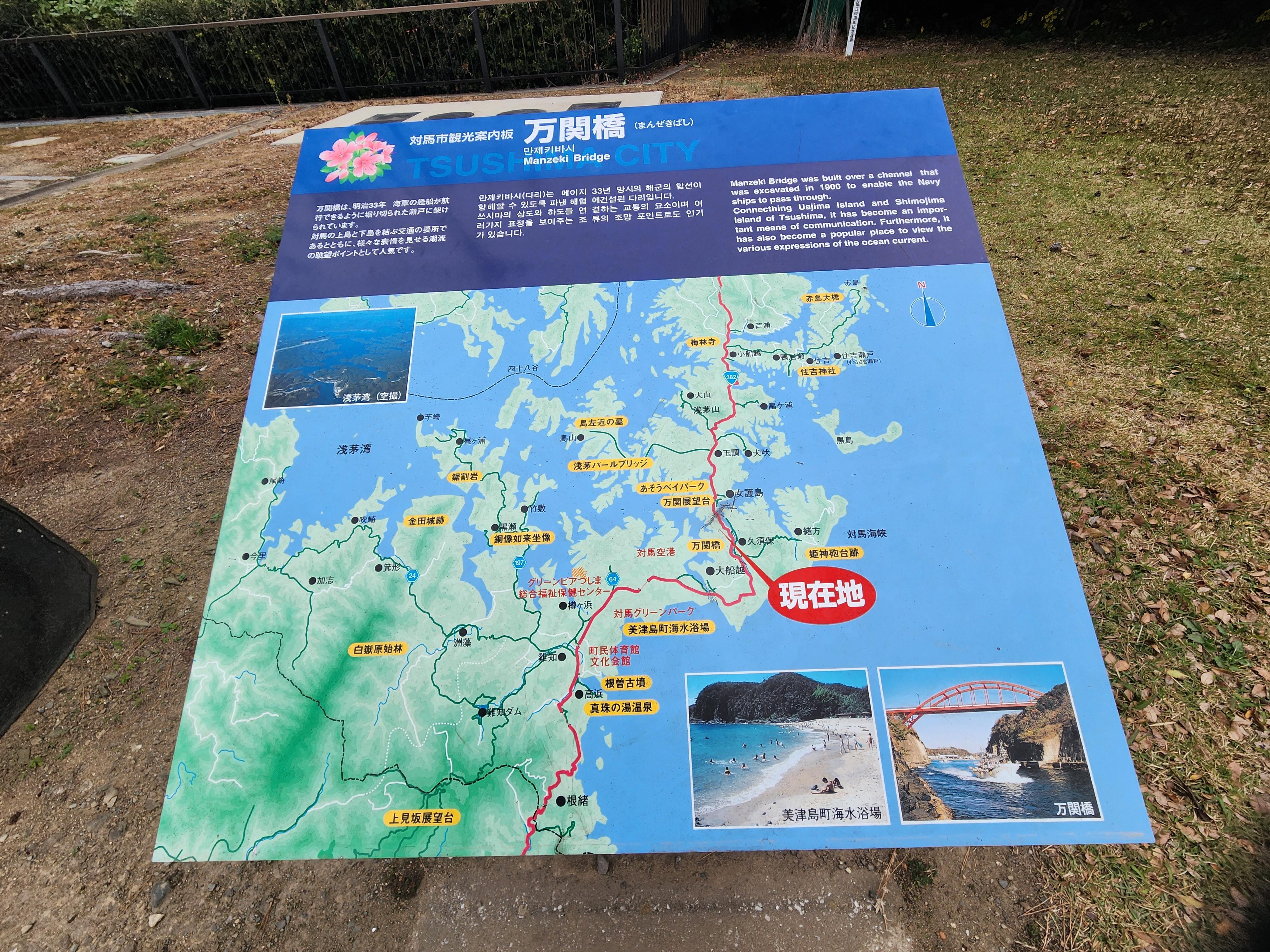 대마도 만제키바시(만관교, 萬關橋)는 1900년에 1차로 대륙침략의 전진기지로 필요해서 대마도를 2개를 섬(상대마도, 하대마도)으로 분리시킨 다리이다. 빨간색 철교가 인상적이다.