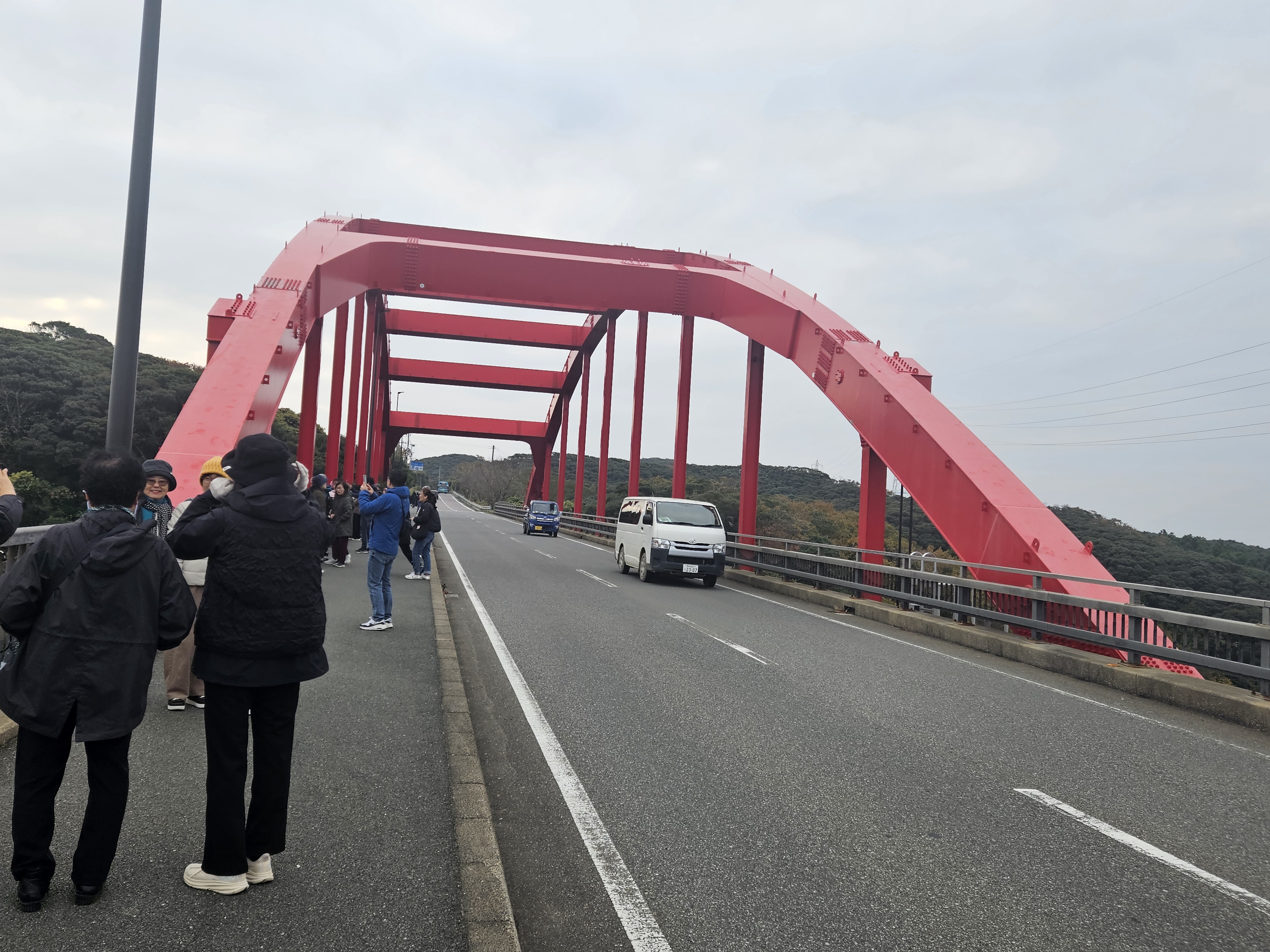 관광쿠어로 대형버스를 타고 가다가 잠시 쉬어가는 장소로 둘러 보았다. 특히 가이드로부터 역사적 의미를 듣고 보니 러일전쟁시 승리의 발판이 되었고, 그 후 대륙침략의 전진기지로 활용되었다고 한다. 이 다리의 건설로 일본 후쿠오카에서 부산까지 최단 해로로 이동할 수 있었다는 것이다.