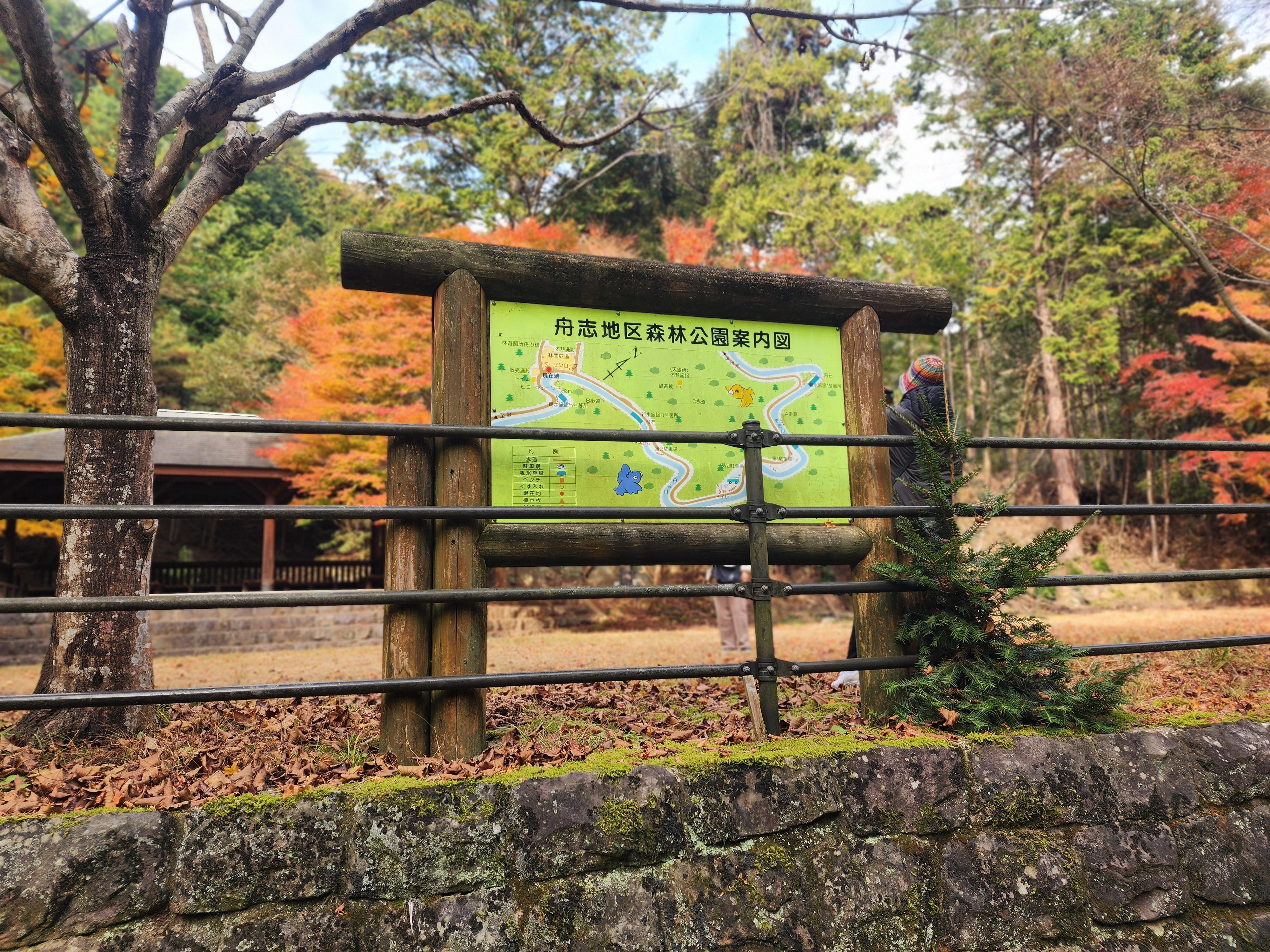 쓰시마 북부 슈시 강 유역에 자리잡은 슈시삼림공원(舟志森林公園)은, 쓰시마 제일의 단풍 명소로 알려져 있다. 슈시 강변을 따라 약 7km에 걸쳐 단풍나무숲이 이어지며, ‘단풍길’이라 불리는 산책로도 정비되어 있다. 가을이 깊어지면, 붉게 물든 단풍잎과 상록수의 녹음이 비단처럼 어우러져 빨강과 초록으로 강수면을 수놓는 아름다운 풍경은 관광객을 매료시킨다.