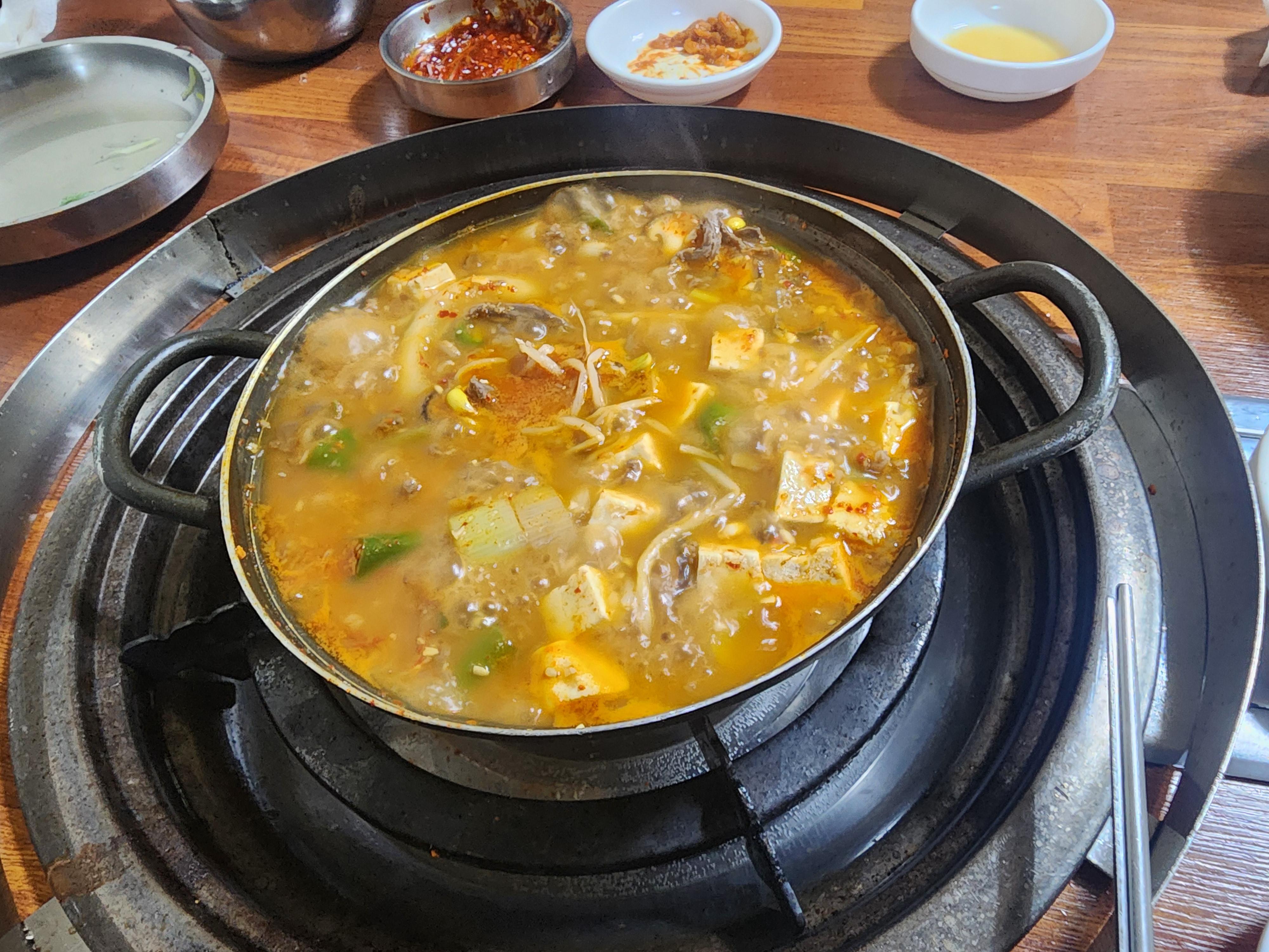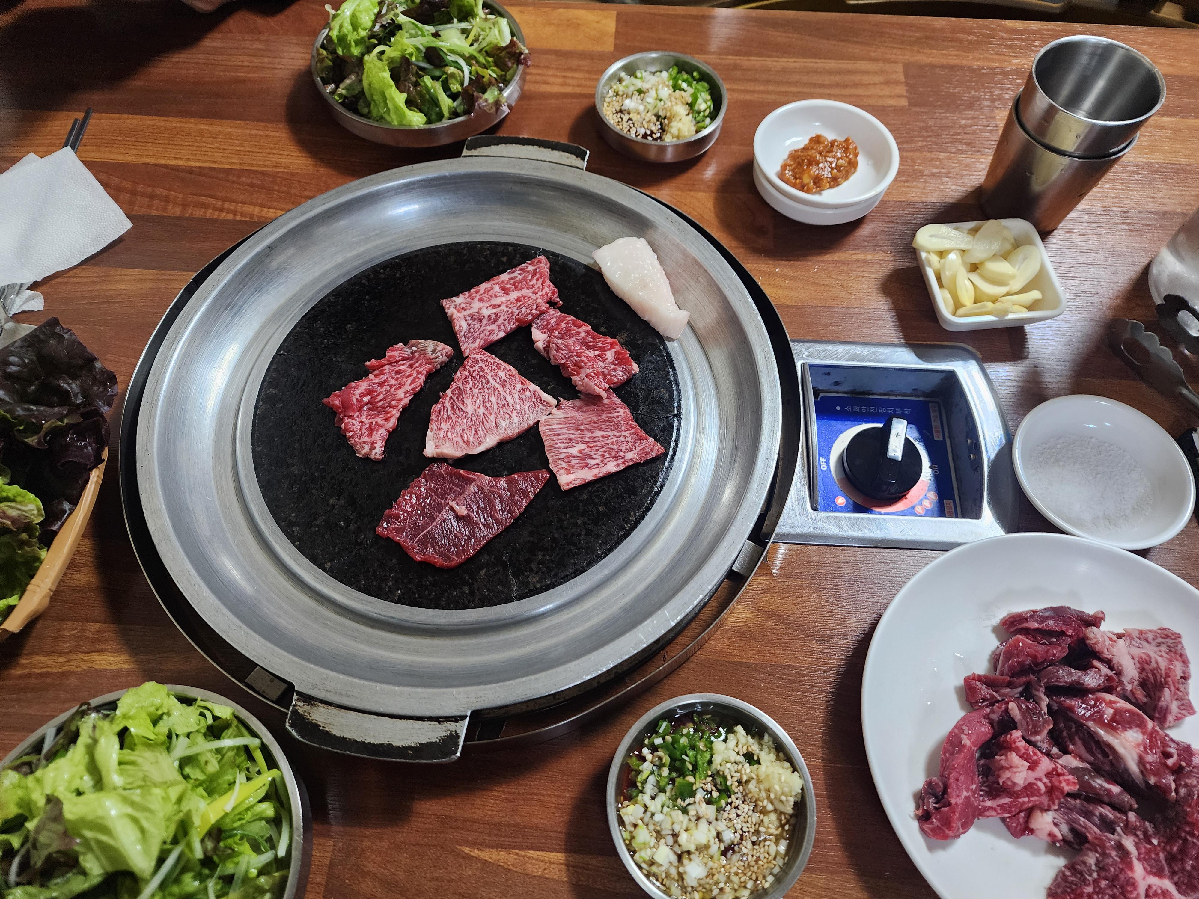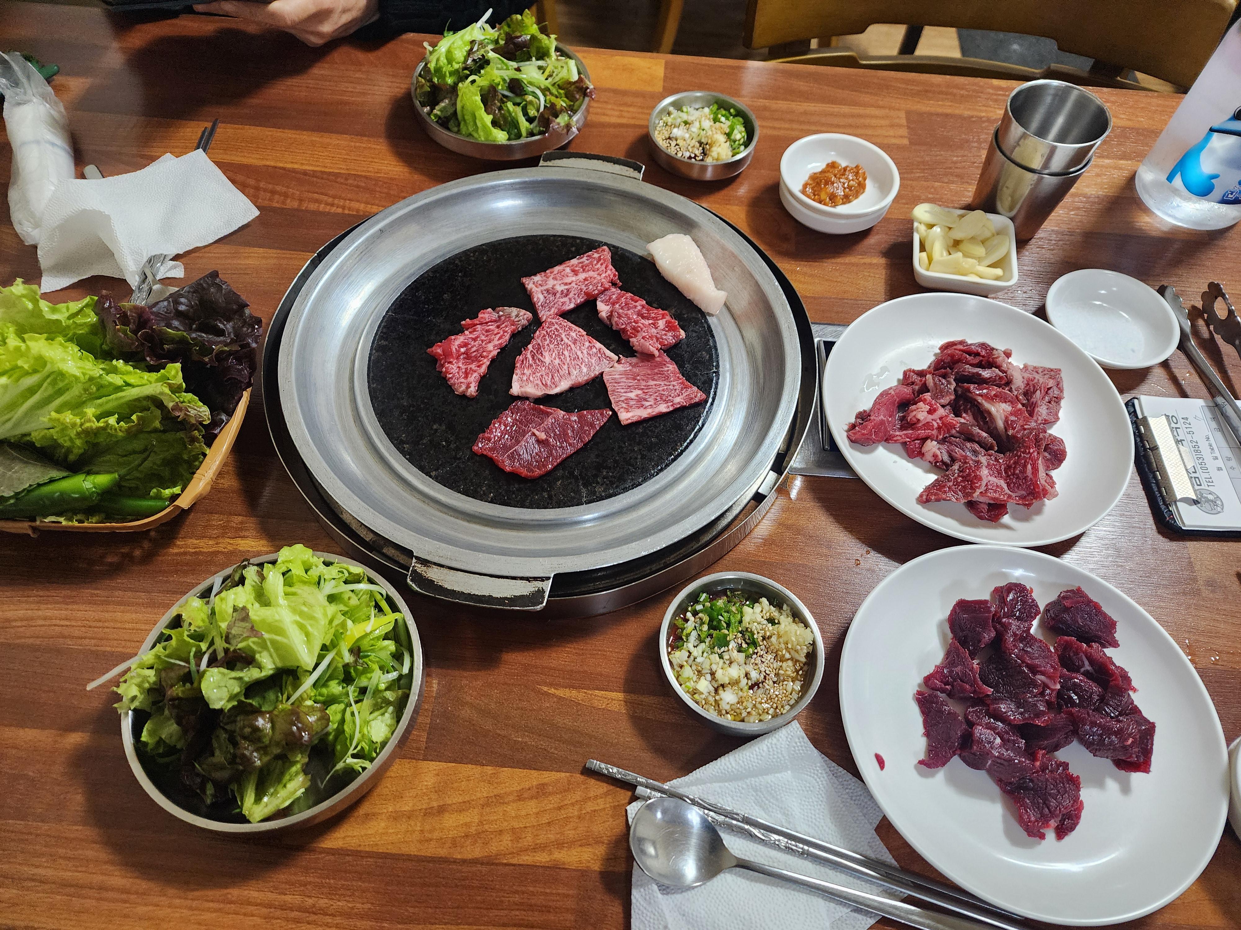 나중에 밥하고 먹는 된장찌개에도 소고기가 아주 많이 들어있었다. 된장찌개는 아주 잘하는 집 같았다. 생고기와 육회는 평일만 가능하다고 한다.