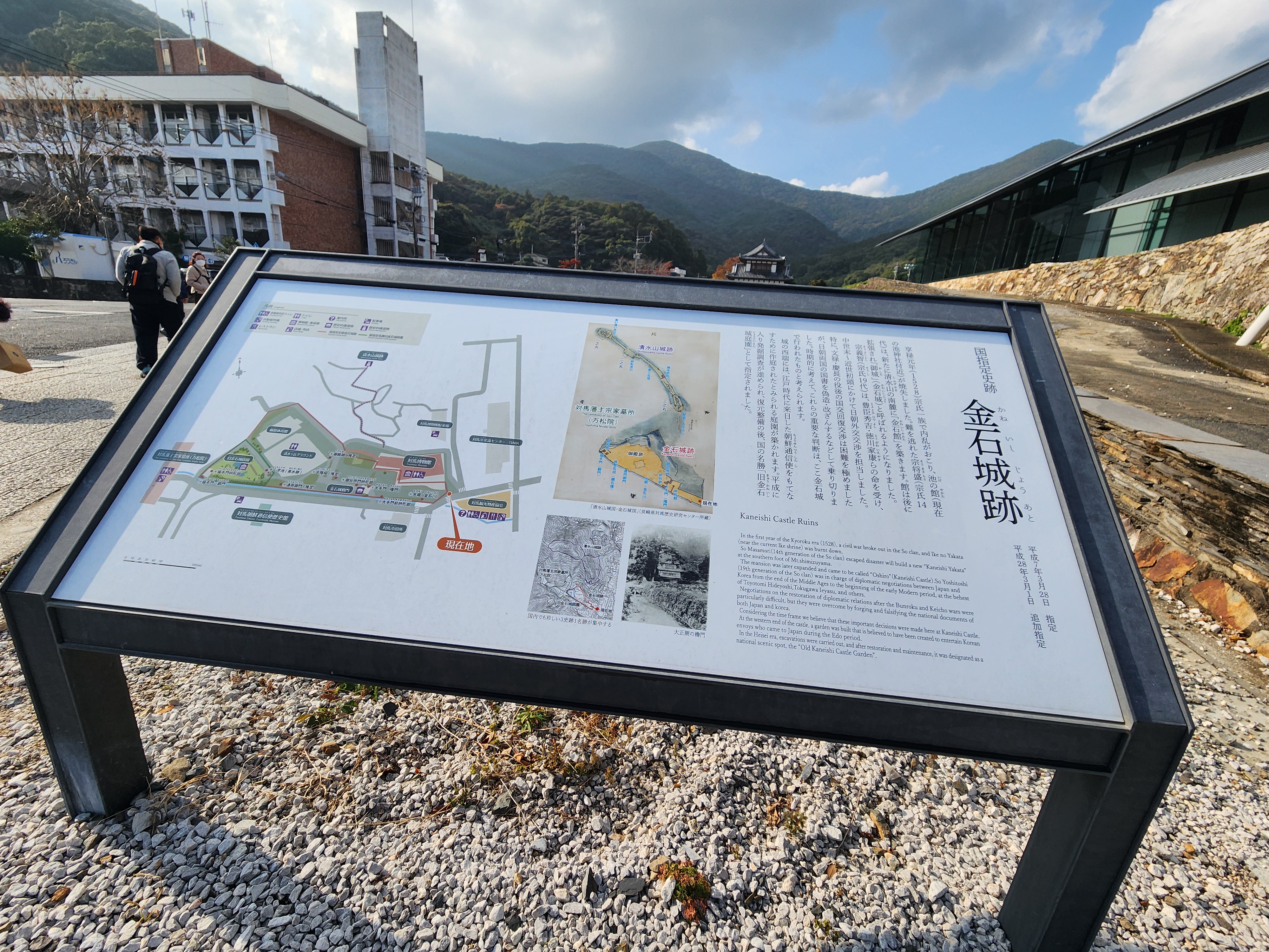 金石城(금석성)은 그러한 시기인 1669년에 소오요시자네(宗義真)가 건설한 성이다. 당시 일본에서는 天守閣(천수각)이 있는 호화롭고 장대한 성이 유행했지만 대마도의 성에는 천수각이 없었다. 성터에는 대마도의 돌담 기술을 엿볼 수 있는 돌담과 성벽이 잘 남아 있고 한구석에는 훌륭한 정원터가 남아 있다. 성 입구인 櫓門(노문-야쿠라문)은 1990년에 복원된 건물이다.
