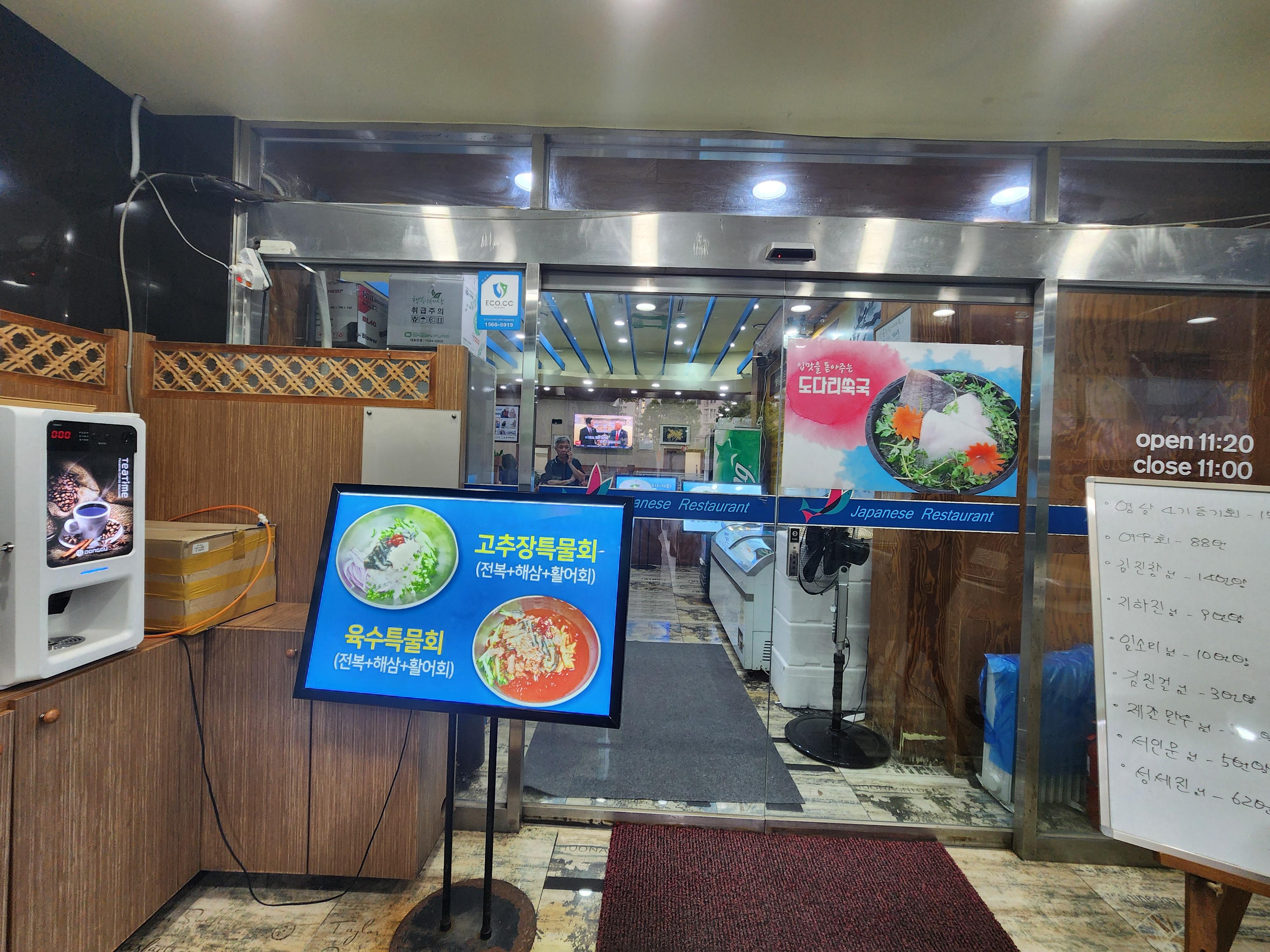 회는 주문하면 바로잡기 때문에 상당히 신선하였다. 식당 바로 앞에 주차장이 크게 있고, 방도 10여 개 있어서 단체 모임하기도 좋은 곳이다. 구 대구은행 본점 자리에서 가까운 수성시장 입구에 있다.
