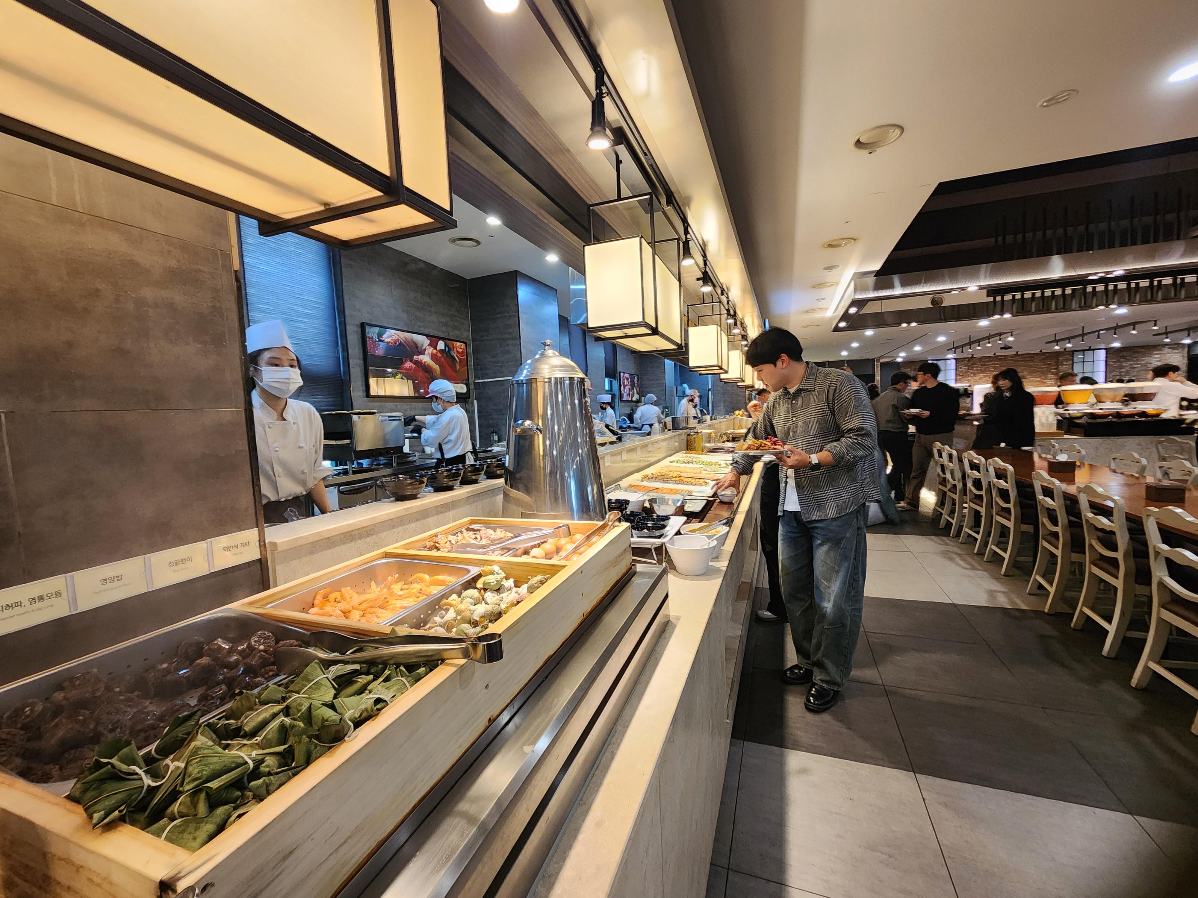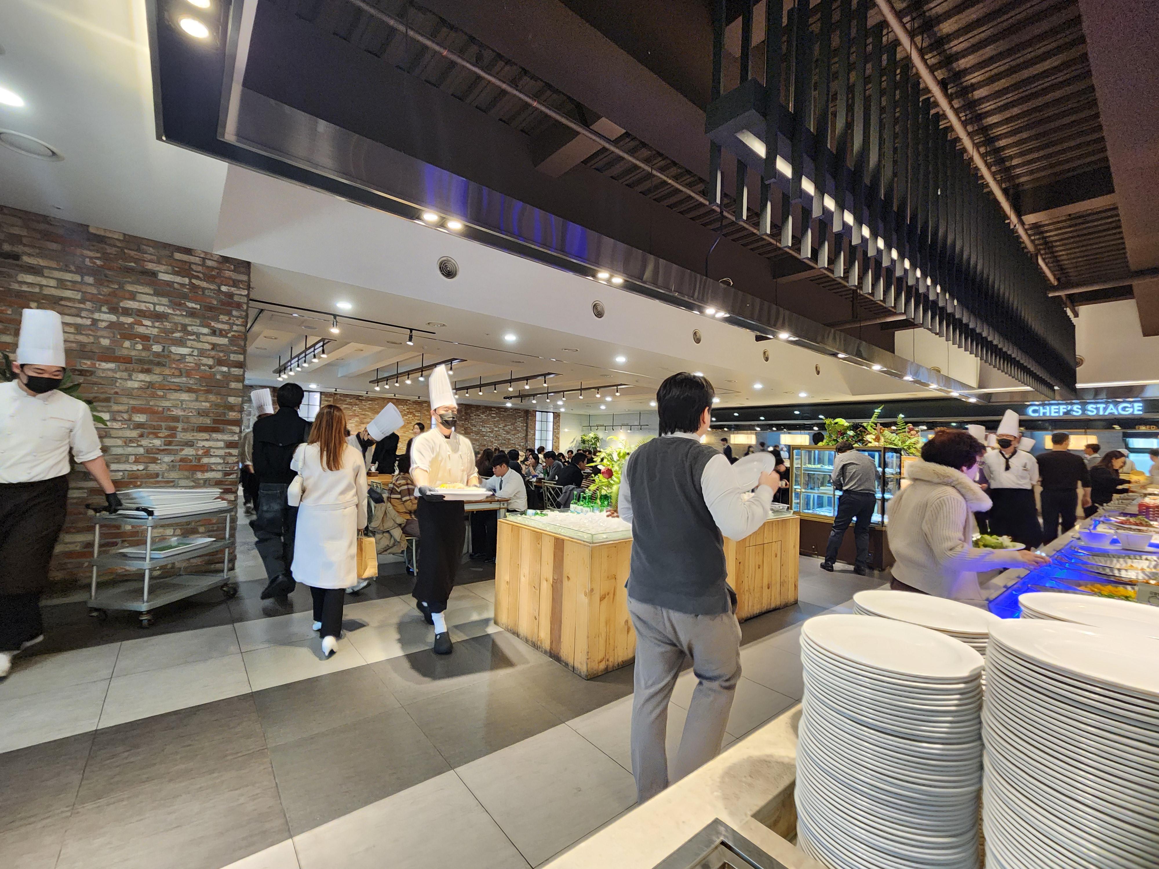 결혼식이 끝나고 나서 하객들은 모두 3층 뷔페식당으로 안내하였다 그 과정을 업로드한다. 퀸벨호텔 웨딩뷔페 루체는 한눈에 보기에도 음식 종류가 많았고, 한식, 중식, 일식 등 취향껏 고르기 편하게 코너 구분이 잘 되어 있었다. 음식 종류는 상당히 많아 취향에 따라 골라서 먹으면 되었다.