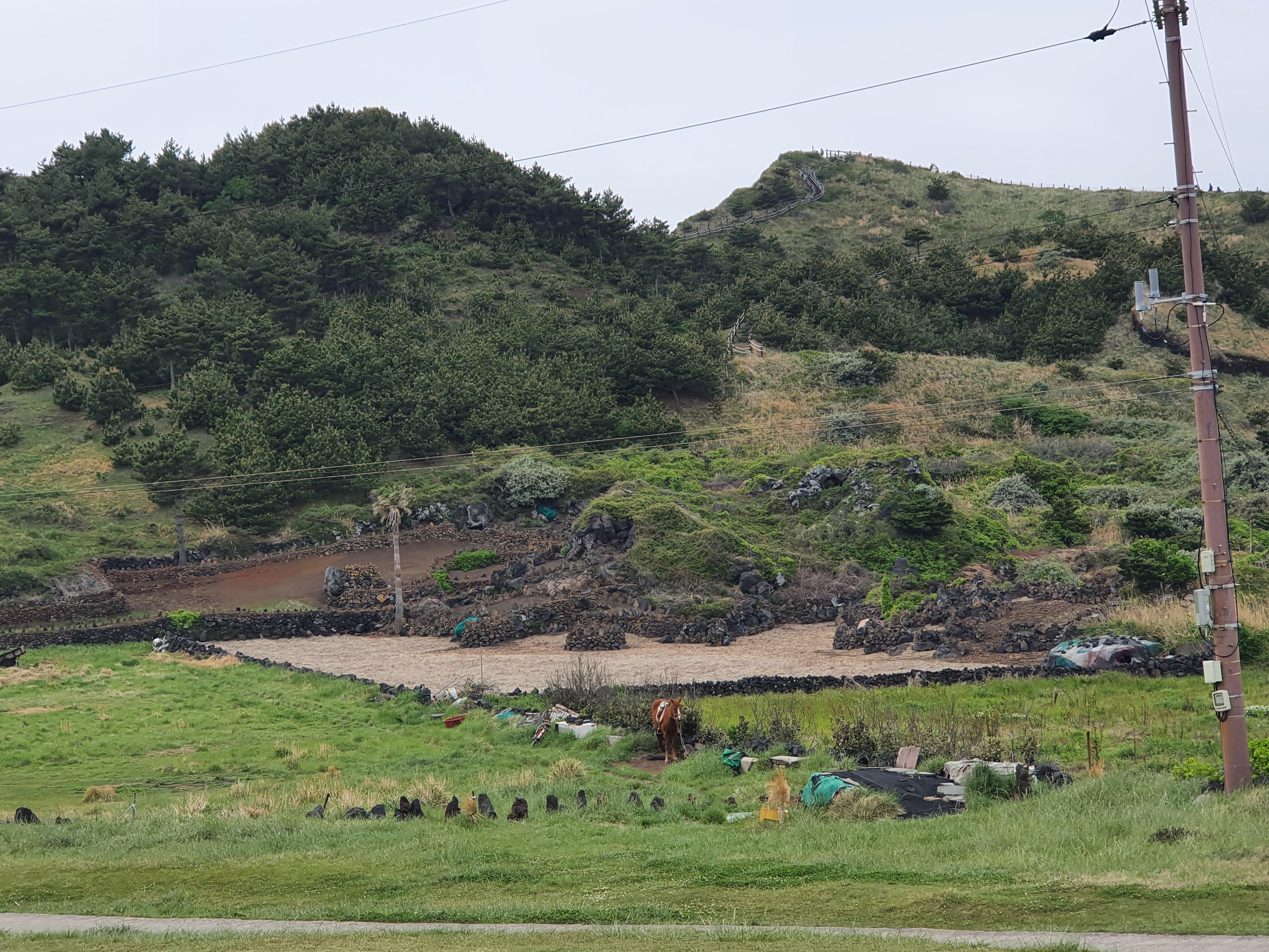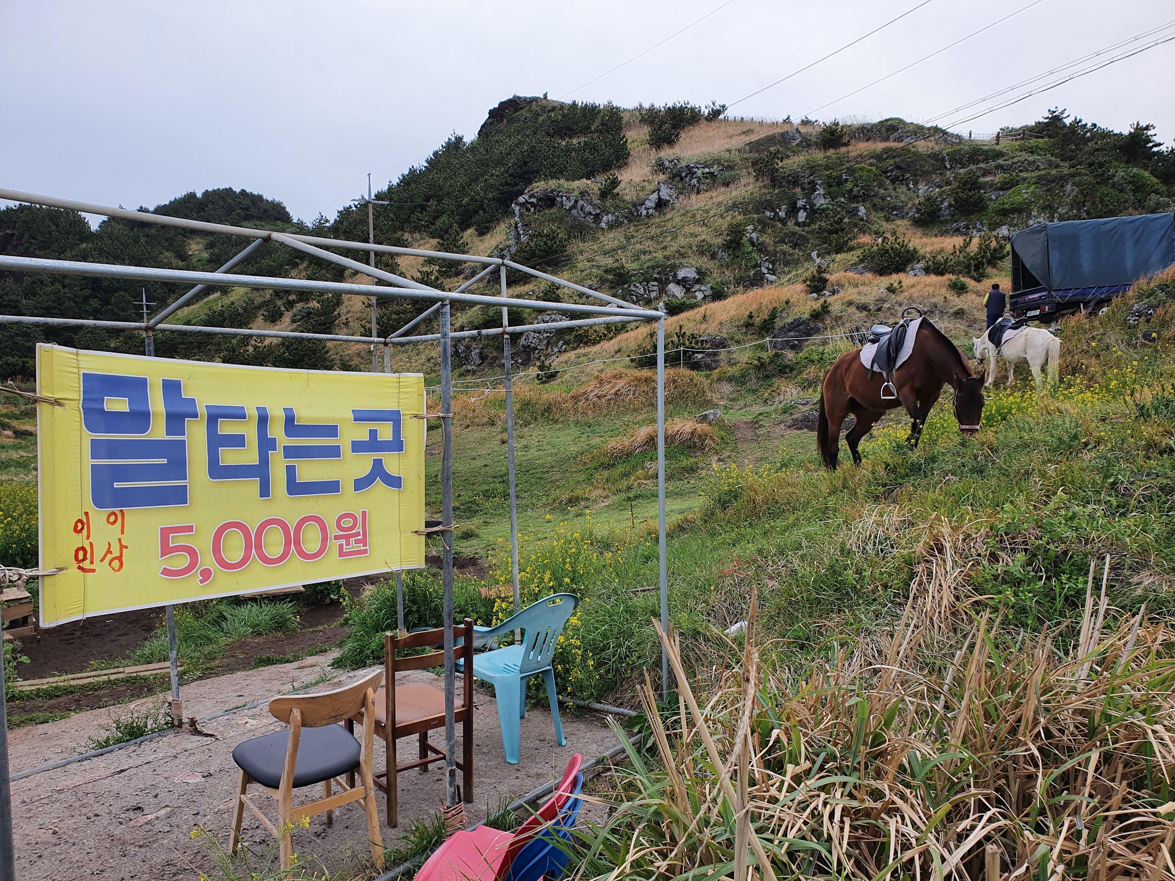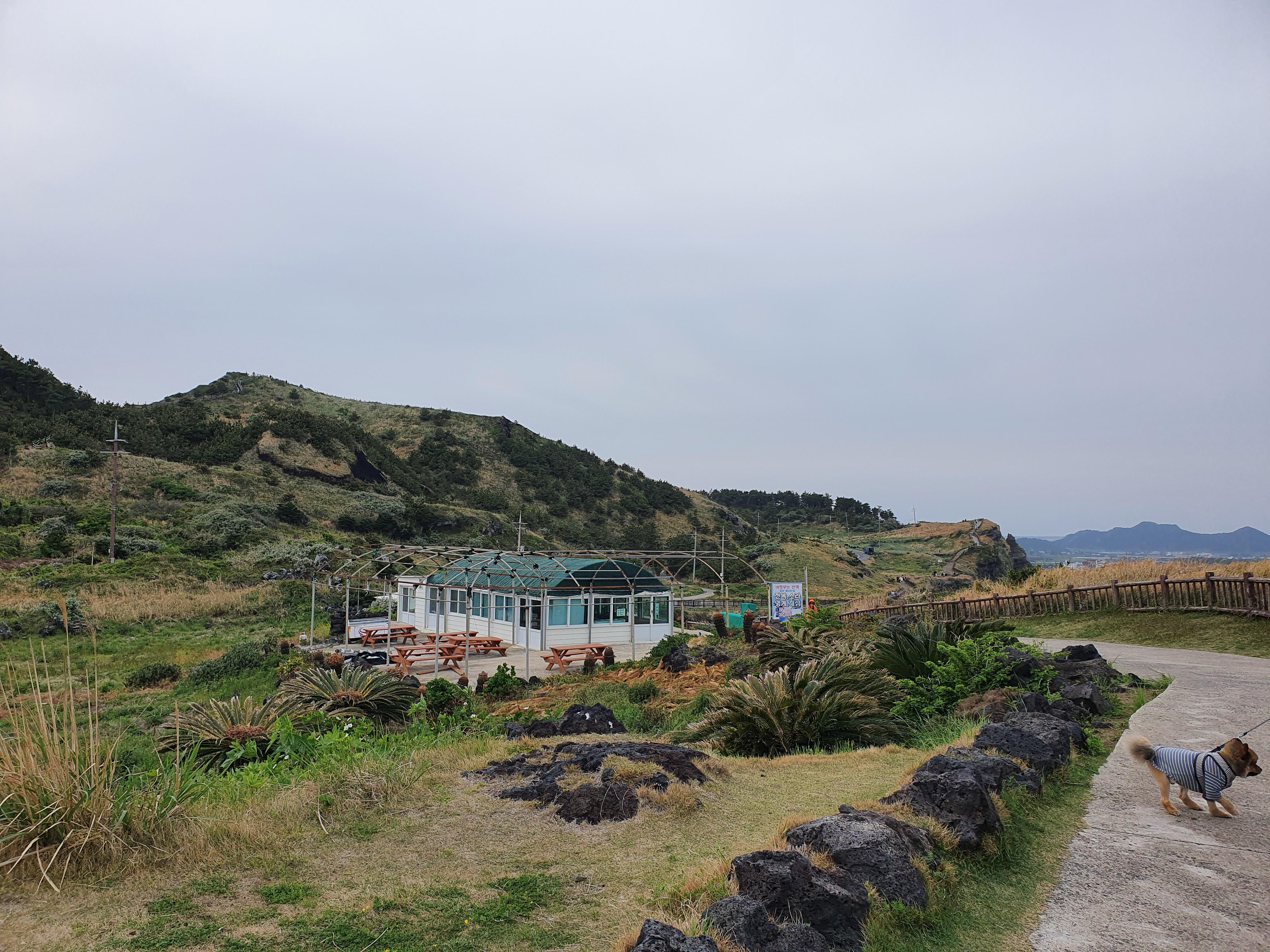송악산 둘레길은 코스가 전체적으로 완만하고 바다를 끼고 있어 오션뷰가 아주 좋다. 중간에 벤치가 많아서 쉬엄쉬엄 가다가 쉬기도 좋다. 둘레길 초입 주차장 근처에 스타벅스, 편의점, 식당 등이 있어서 이용하기도 좋다. 입구에서 약간 들어가면 해녀들이 모듬 해산물(한접시 2, 3만원)을 판매하는 식당도 있고, 제주말을 타고 승마 체험하는 곳도 있는데, 5000원을 받는다고 한다.