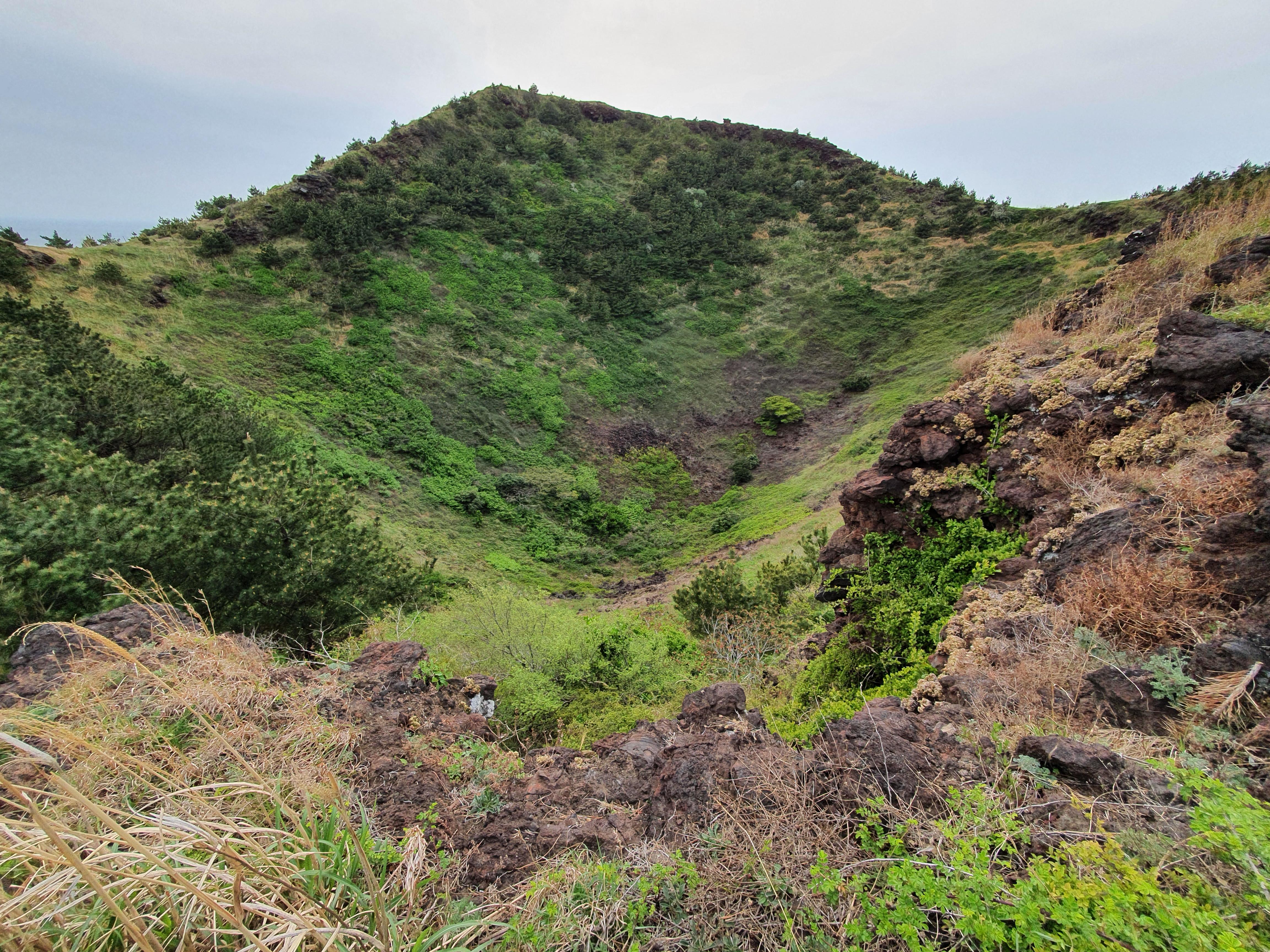 송악산은 일제강점기 일본군의 군사기지를 만들기 위해 강제 동원된 제주 사람들의 고통과 참상을 돌아보는 다크 투어 현장이기도 하다. 예전엔 그 이름만큼 소나무와 동백, 후박, 느릅나무 등이 무성했다고 하는데, 일제시기 군사기지를 만드느라 불태워져 지금은 일부 구간을 제외하면 풀만 무성할 뿐이다. 송악산의 해안가 절벽에는 2차 세계 대전 당시 일본군이 제주 사람들을 동원해 뚫어 놓은 인공동굴 15개가 있다.