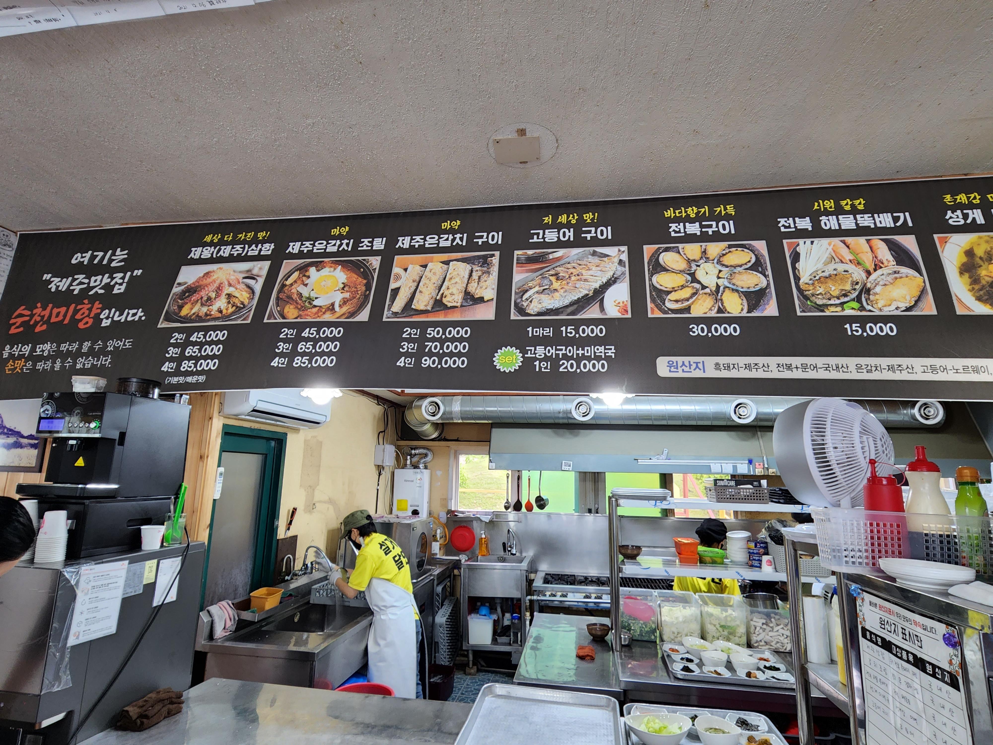 6월 중순 제가 살고있는 산방산 근처에 잘아는 지인이 순천미향이 좋다고 해서 갔다. 평일 날씨가 좋은 날에는 줄을 서서 먹는다고 했다. 예약은 별도로 받지 않고 들어오는 순서대로 받는다고 한다. 식사시간대에는 대기하는 경우가 많았다. 주차, 포장, 반려동물 동반까지 모두 가능하다.