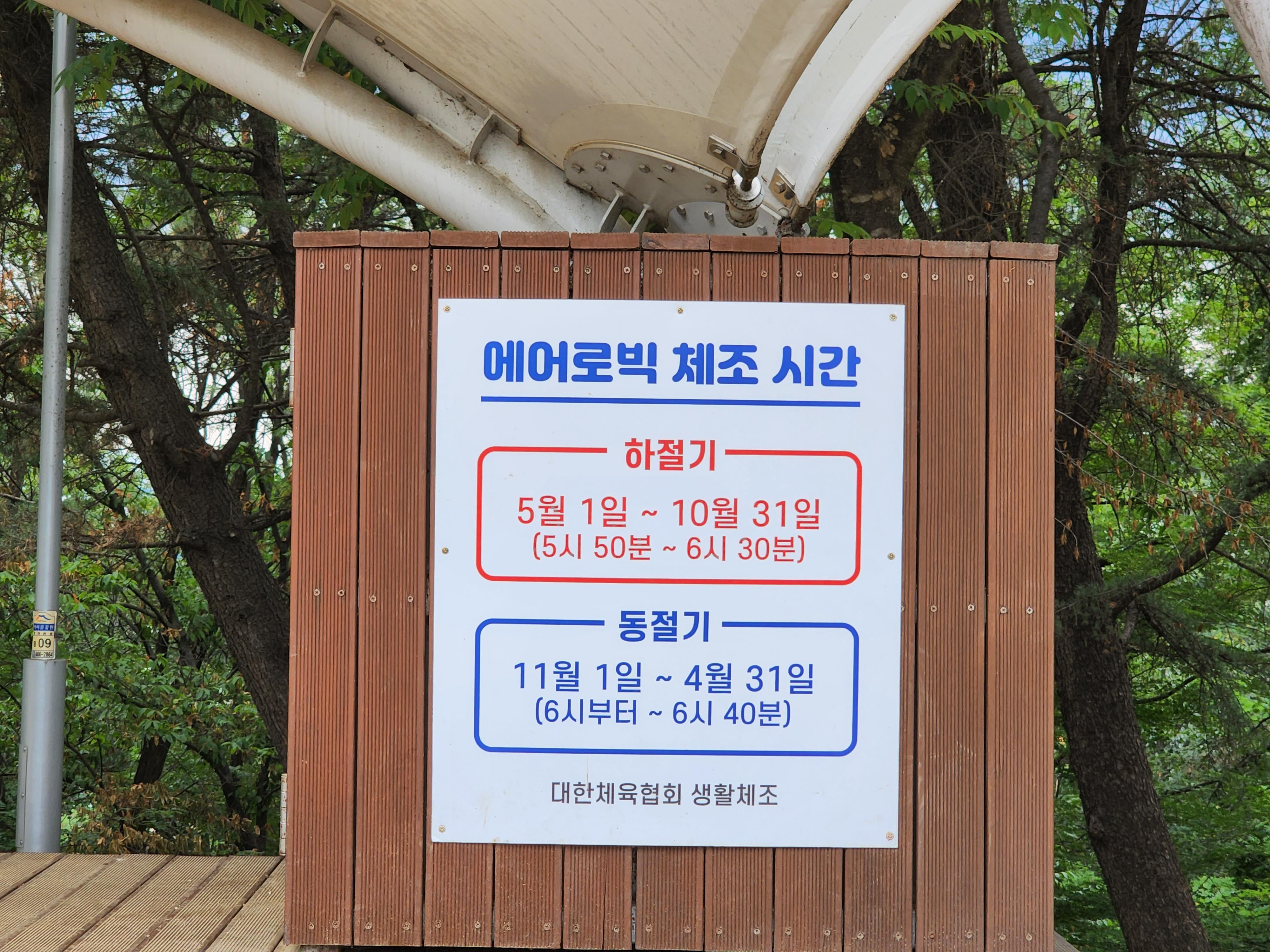 3. 정상에는 에어로빅 체조 공간과 운동시설, 피크볼 운동시설이 있다.