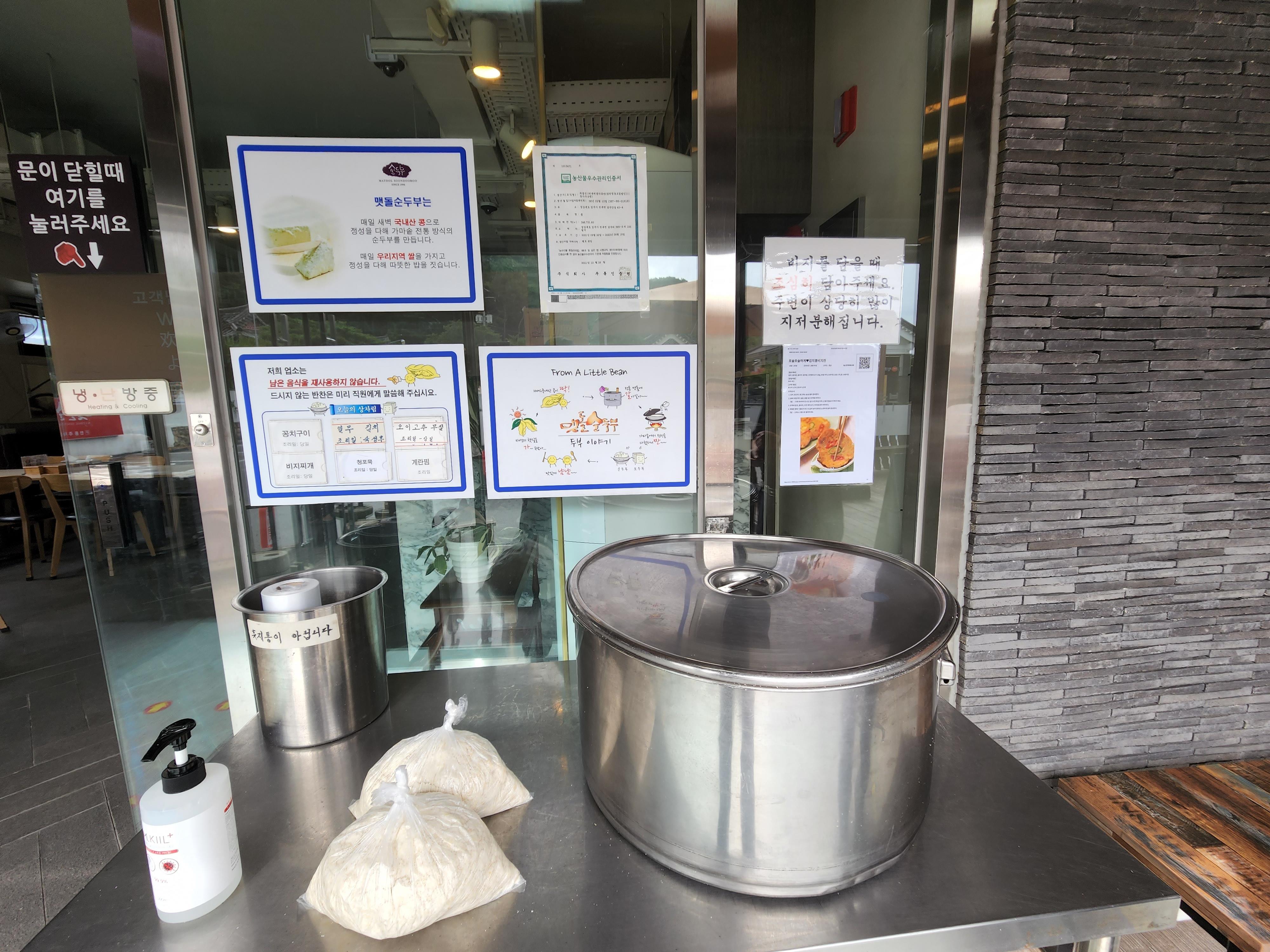 4. 식당 입구에 비지를 비치하여 공짜로 가져갈 수 있다.