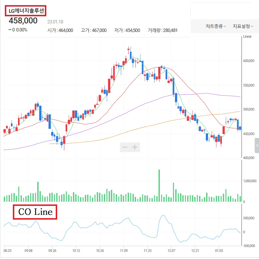 ▶ LG에너지솔루션의 CO지표(2021.8.25--2023.1.20)