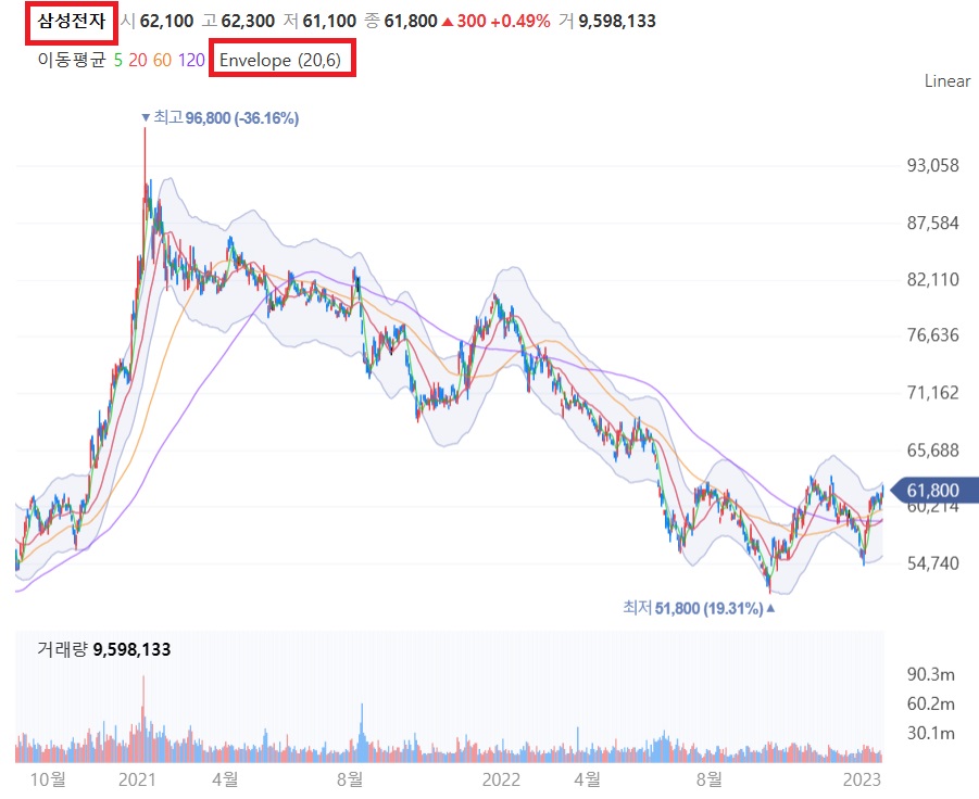 ▶ 삼성전자의 Envelope 지표(2021.10--2023.1.21)