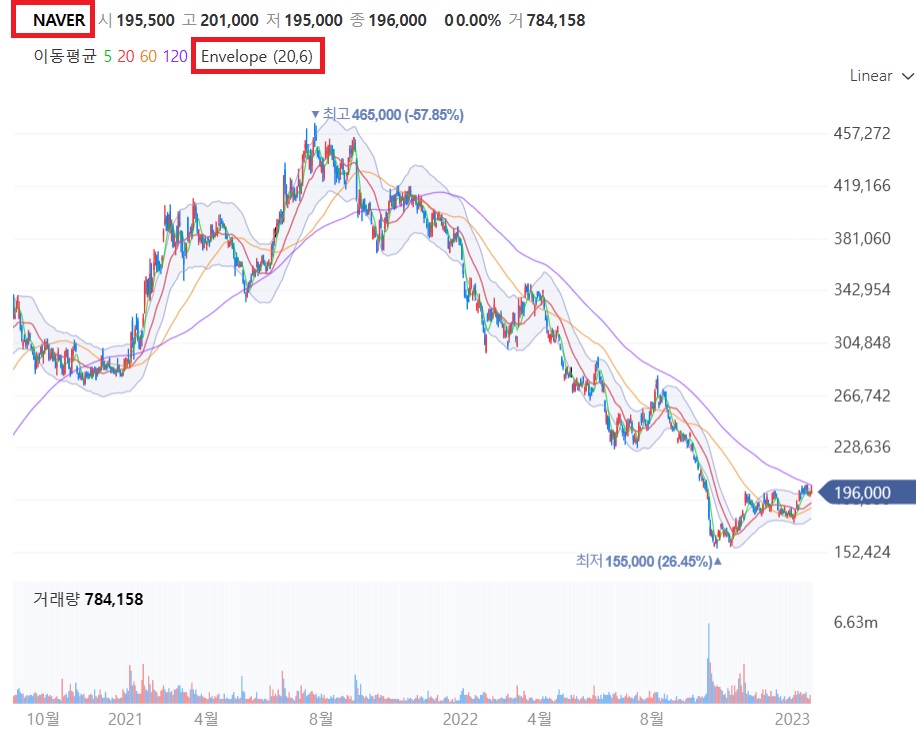 ▶ 네이버의 Envelope 지표(2021.10--2023.1.21)