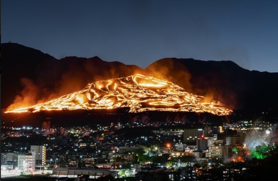 오기야마(扇山; 선산)라는 명칭은 벳부의 주산이 화산분출의 영향으로 나무가 없는 지역이 부채꼴처럼 펼쳐져 있어 붙여진 듯하다. 이러한 지역을 화산성 선상지(火山性 扇狀地)라고 하는데, 나무는 없는 대신 억새와 잡풀로 채워져 멀리서 보면 목장처럼 보이기도 한다. 매년 4월에는 억새 태우는 행사를 벳푸시 주관으로 한다고 하는데 장관일 듯하다. 골프장은 이 오기야마 중턱에서 벳푸시가지와 벳푸만을 바라볼 수 있도록 조성되어있어 경관이 아주 좋다.