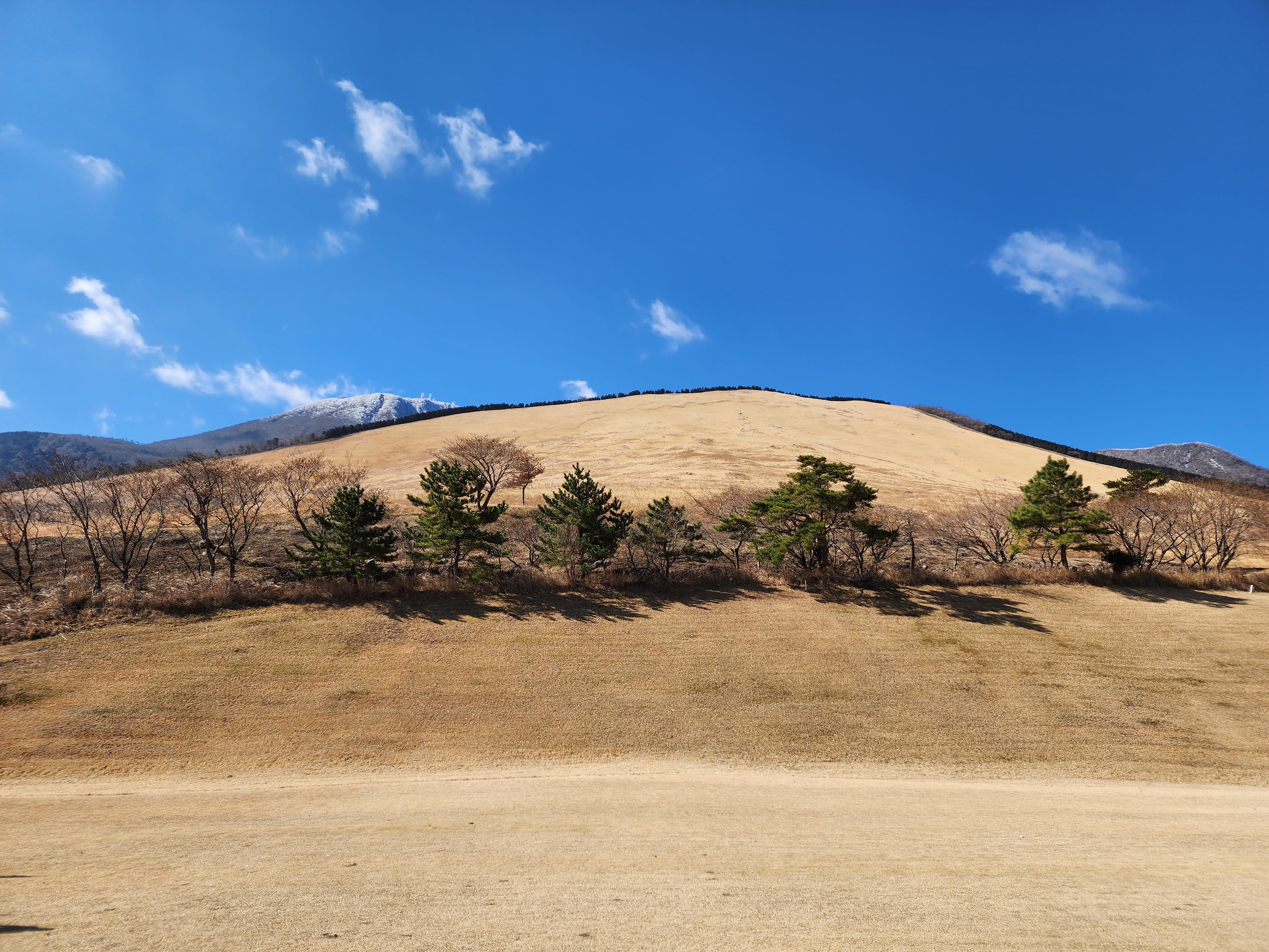 저는 지인들과 함께 7박 8일 일본에 갔는데, 운동과 여행을 병행하였다. 부산 김해공항에서 후쿠오카 공항을 통해 갔고, 다시 후쿠오카 공항에서 고속버스를 약 1시간 40분 타고 벳푸(부)시로 갔다. 벳푸시내 일본자위대 입구에 내리니 골프장에서 직원이 나와서 골프장까지 태워주었다. 골프장에 도착하니 같이 간 지인이 오기야마 골프장의 사장인 이신호(李信浩) 회장과 절친한 사이라 회장께서 반갑게 맞이하여 주었다. 골프장의 뒤편은 부채꼴 모양의 억새초원이 누렇게 물들어 있어 보기 좋았다.