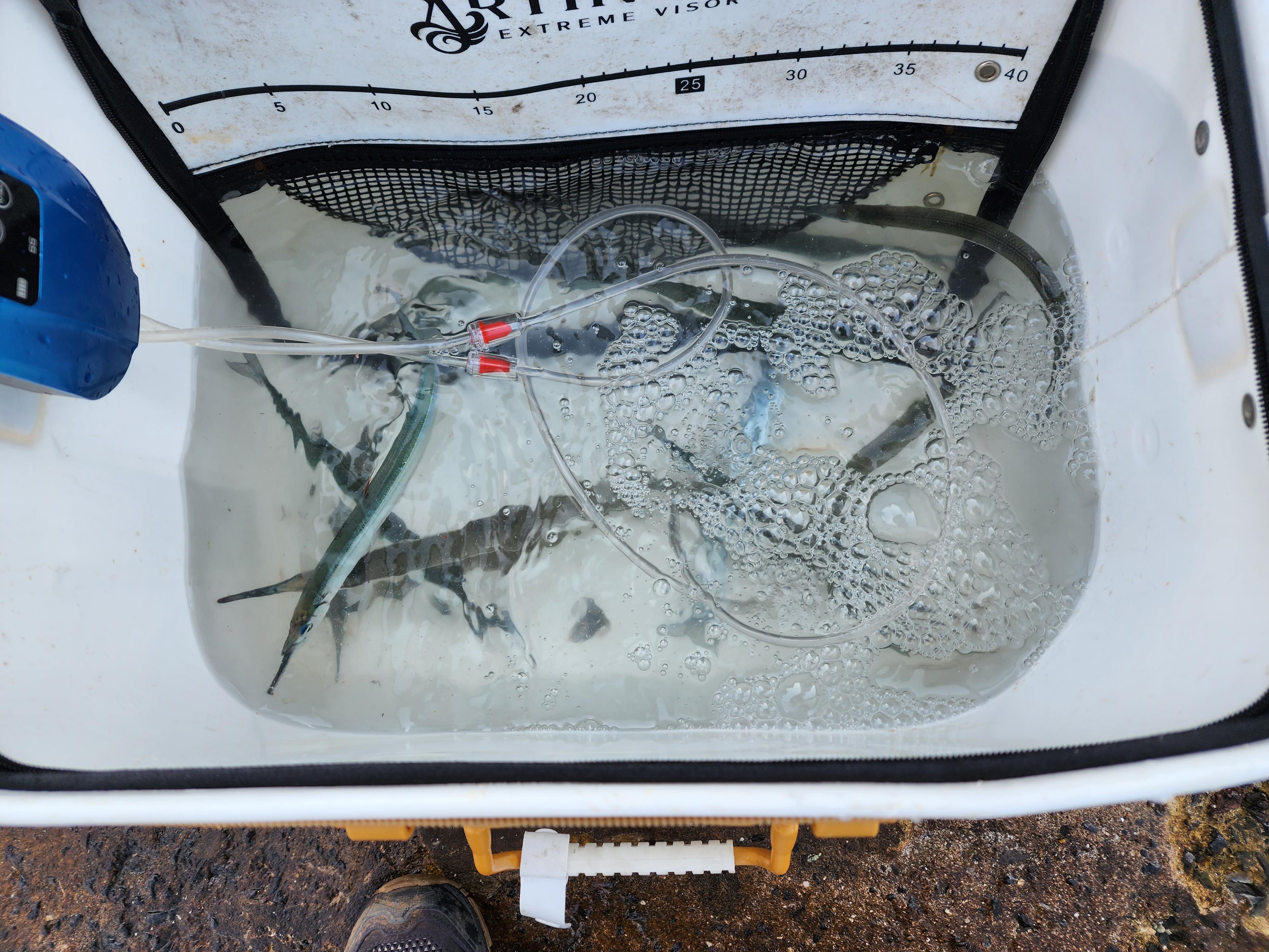 최근에는 학꽁치가 가장 많이 잡히고, 가끔 자리돔과 돌돔 등이 잡힌다고 한다. 근처에 들고양이들이 있어 가끔 매달려오는 학꽁치를 방파제에서 놓치면 고양이들이 재빨리 잡아먹기도 하였다.