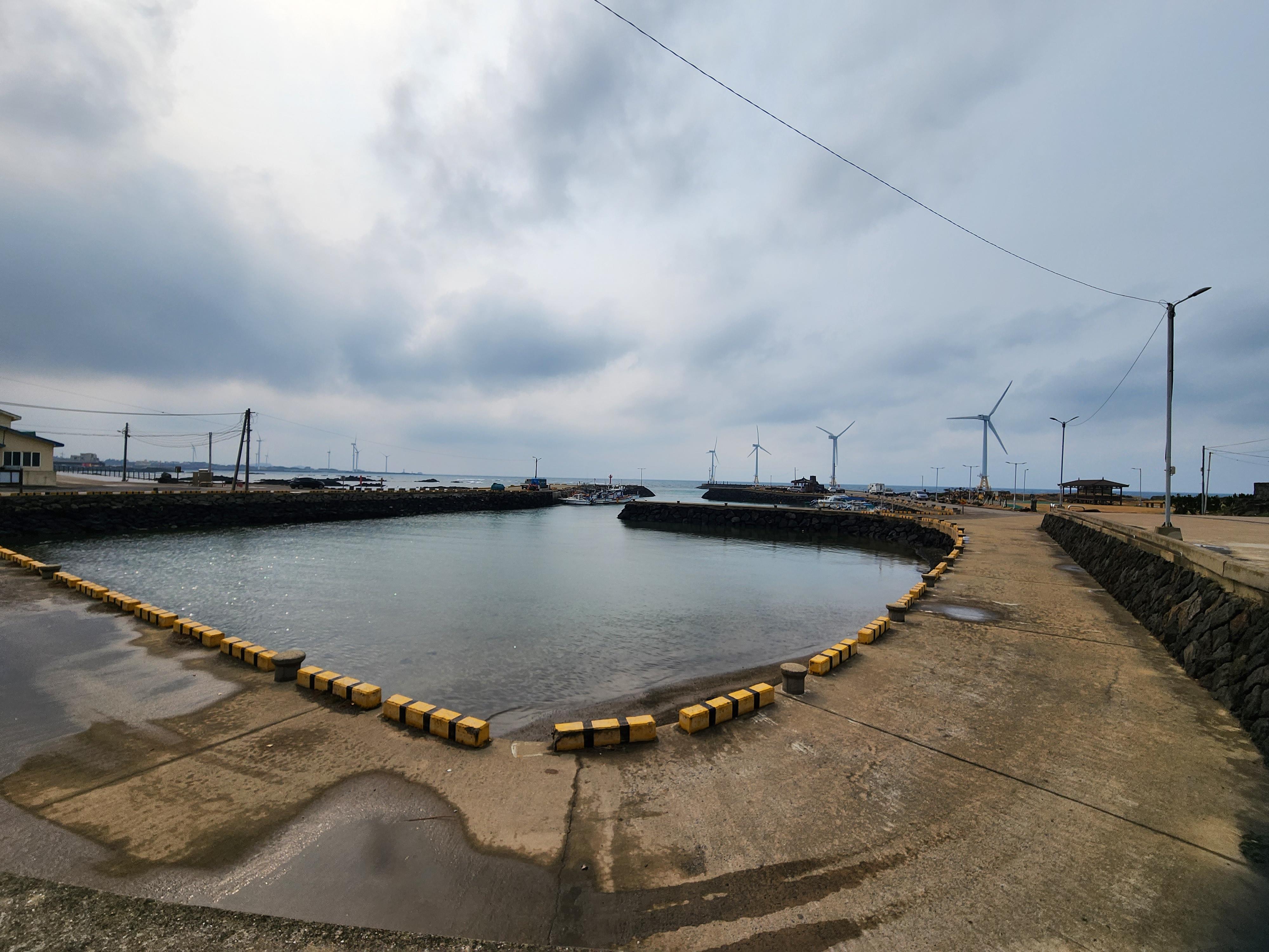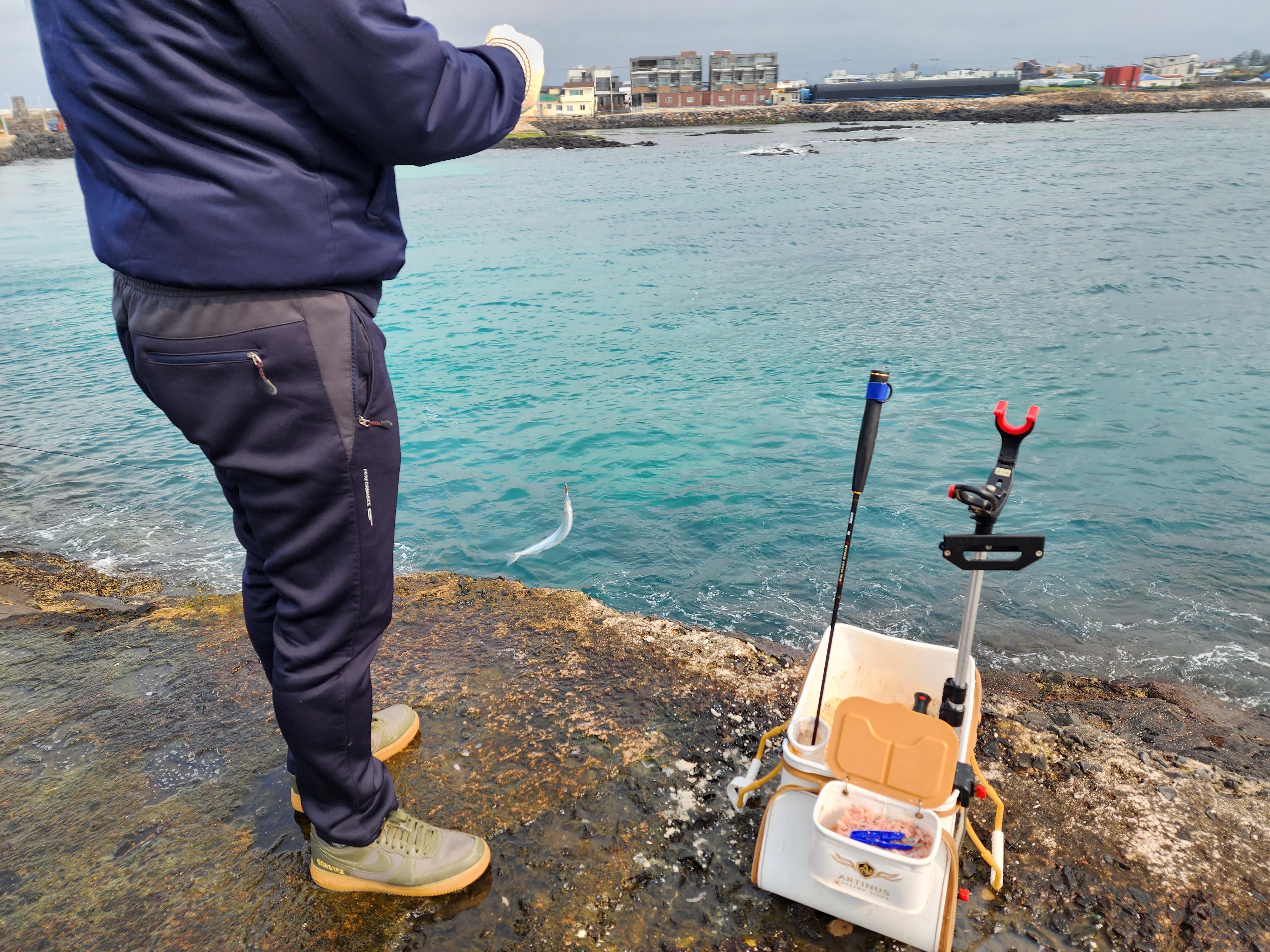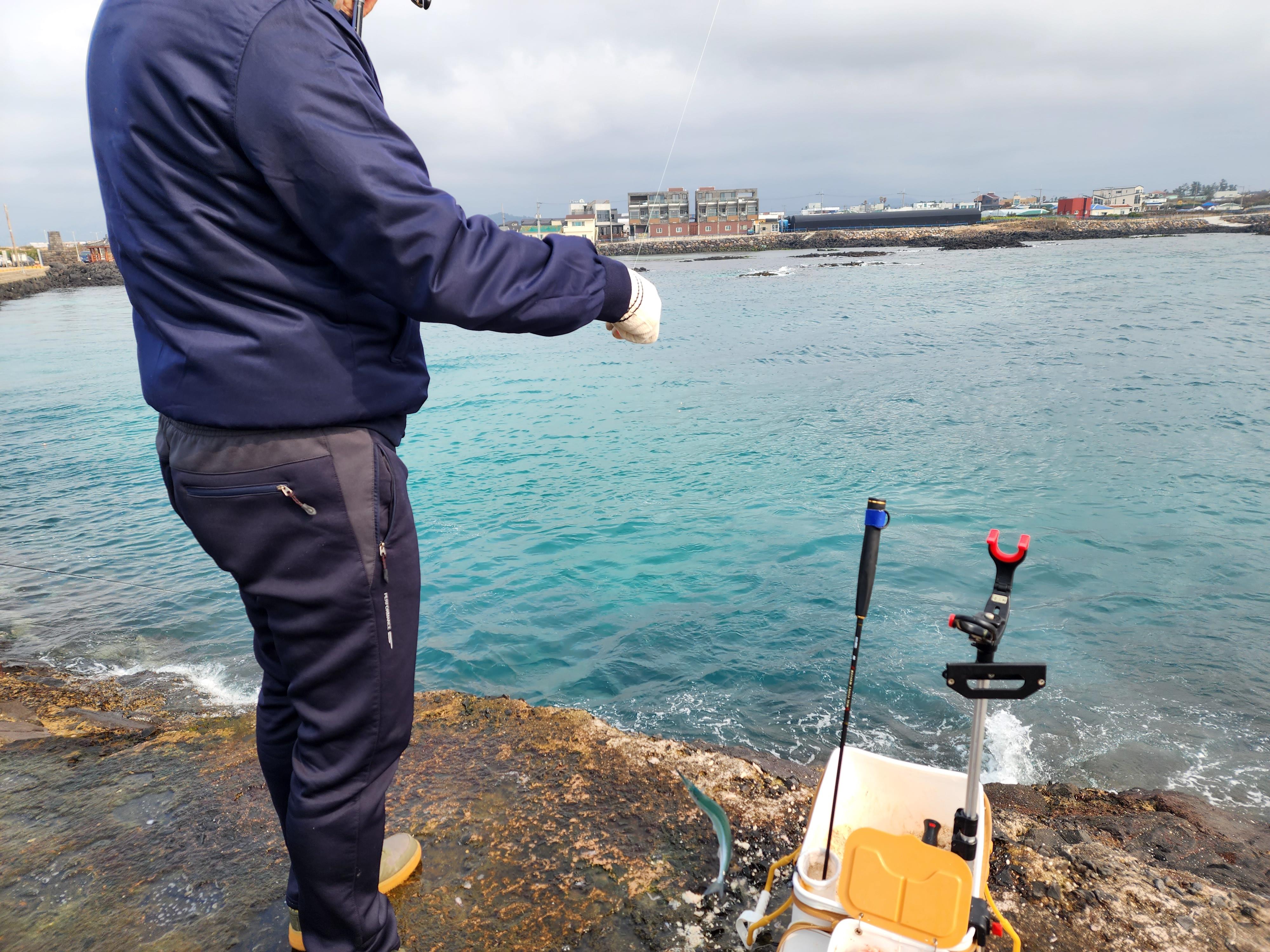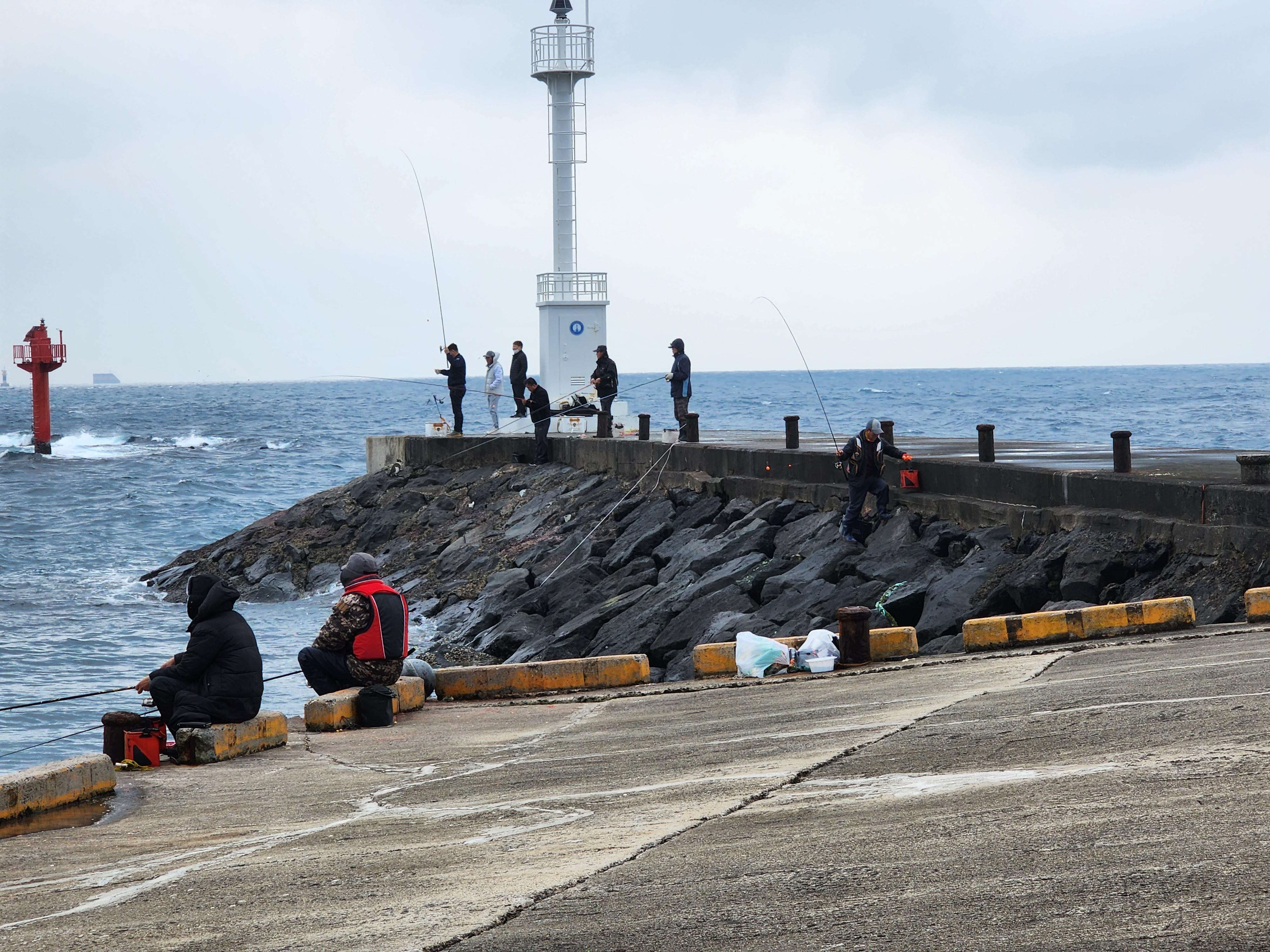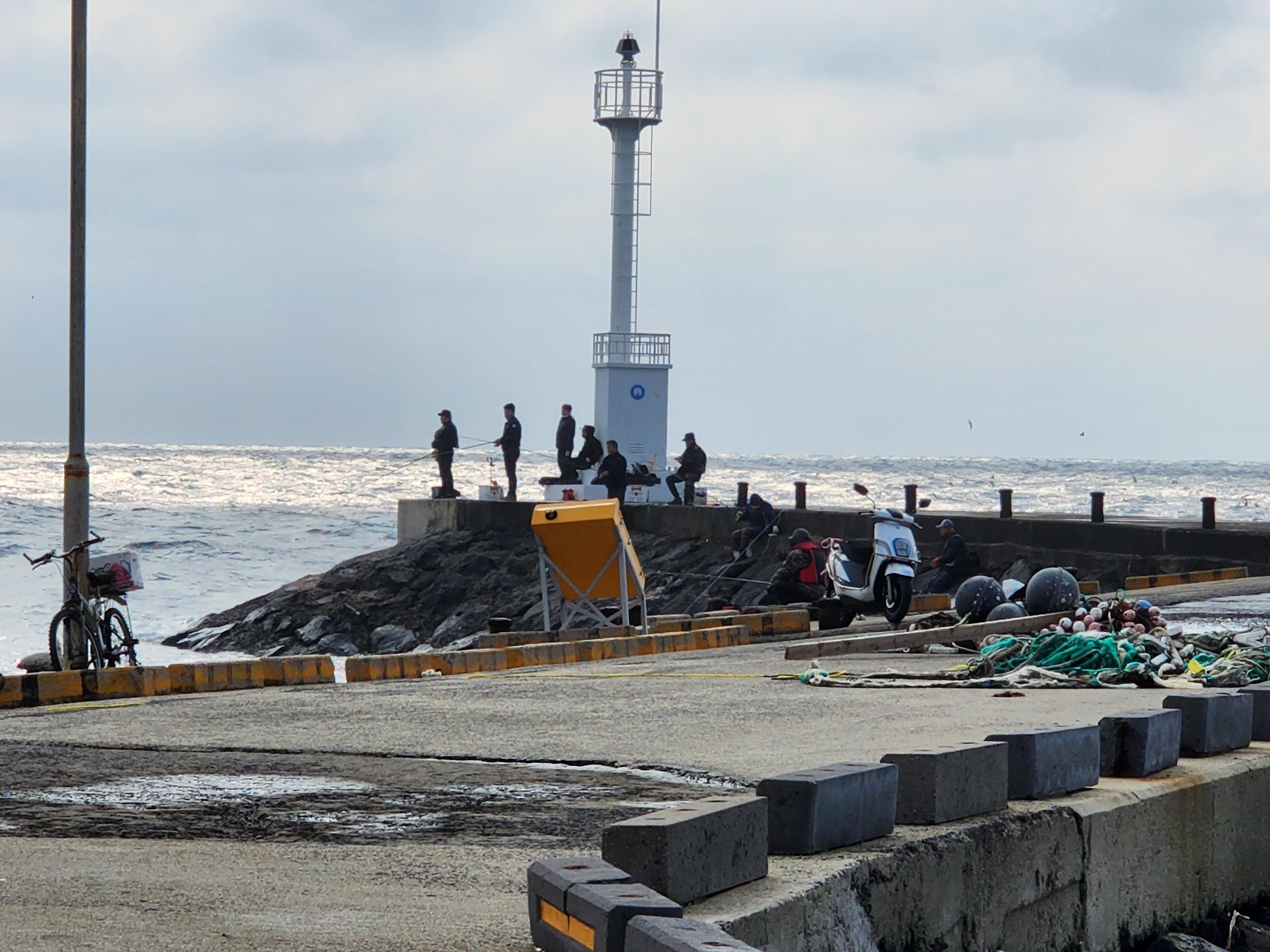 저는 3월 초 판포포구 옆에 있는 <바다를 본 돼지> 유명 맛집에 가서 점심을 먹고, 해변도로를 따라 신창 풍차해안도로를 가다가 두모포구 근처 방파제에서 낚시를 하는 분들이 많아 사진을 촬영했다. 두모포구는 제주 한경면 판포포구와 신창리 포구 중간에 있다.
