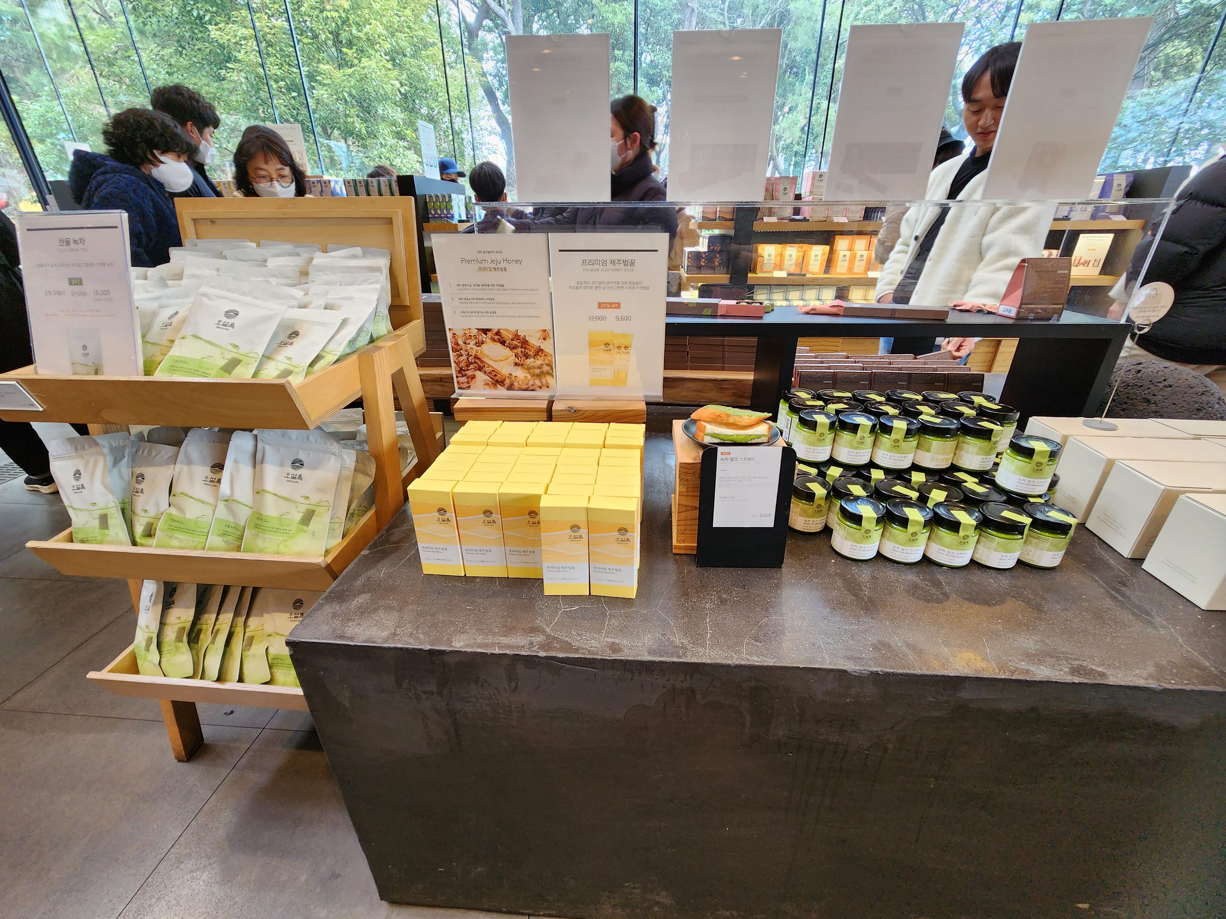 오설록에 들어가면, 우리나라 차의 역사를 볼 수 있는 전시관부터, 차 문화를 체험하는 공간, 녹차로 만든 화장품, 제주도에서 만든 다양한 녹차 등을 구경할 수 있다.