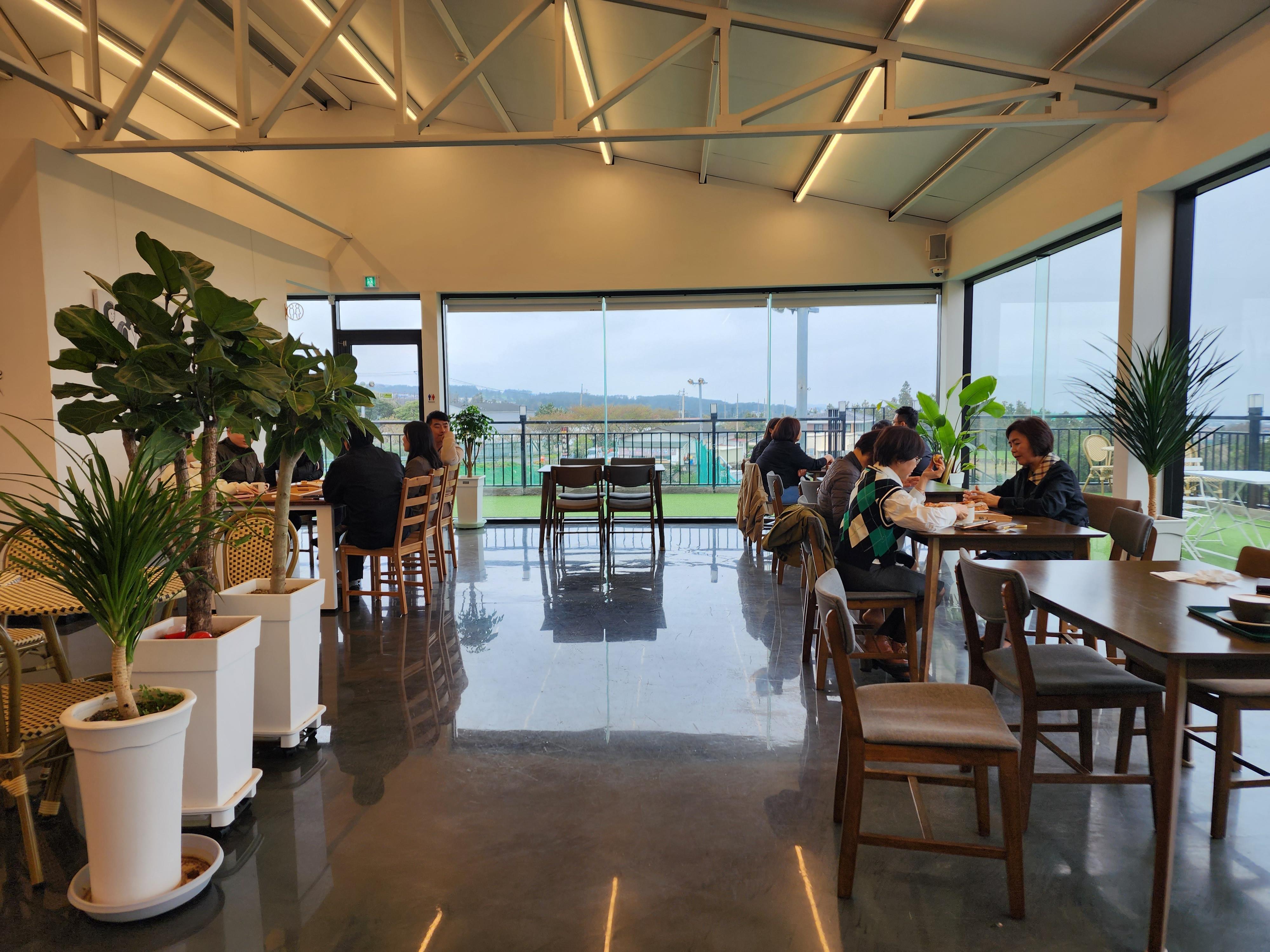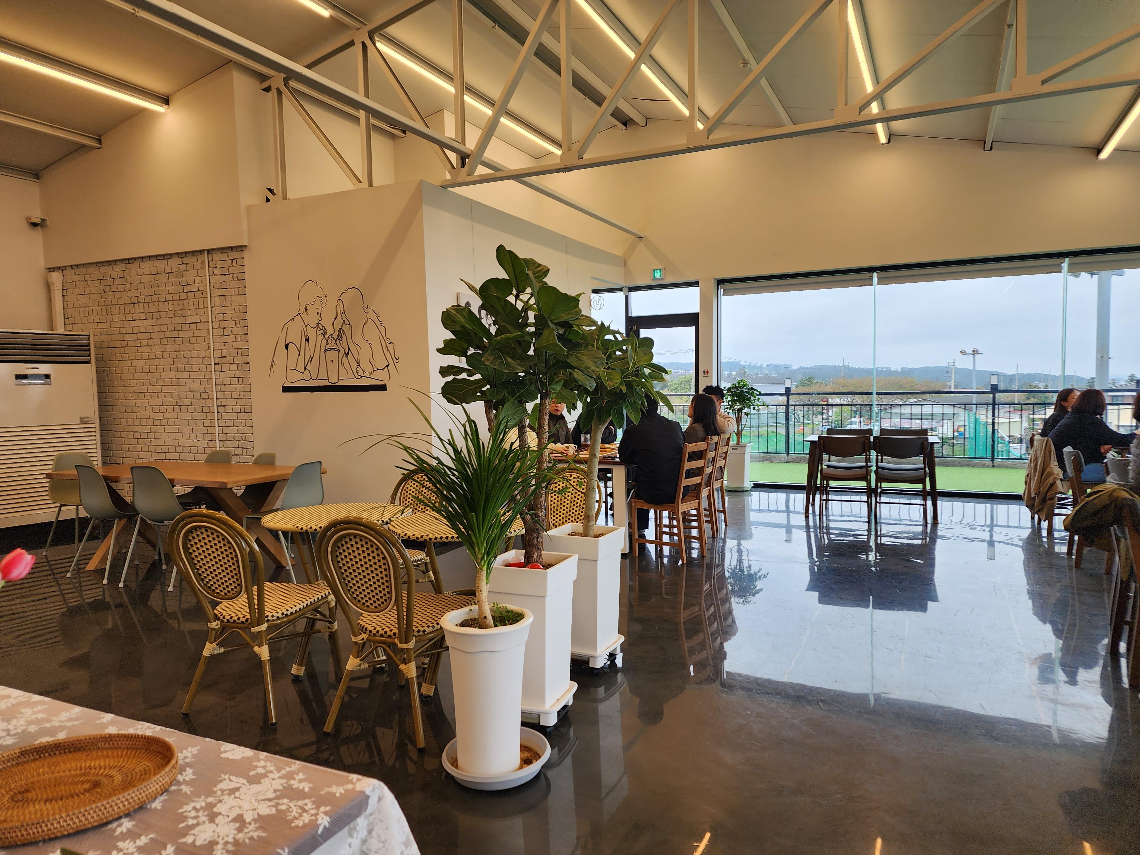 웃뜨리(WOOYRI) 카페는 제주 애월읍에 있는 카페로 통유리로 되어 있고, 중산간 지역 높은 지대에 있어 애월앞 바다뷰가 상당히 좋은 카페이다. 카페 규모가 상당히 큰 편이고 넓어 좌석간 거리도 넓은 편이었다. 제주관광대 지인 교수와 만나 시간이 있어 차 한잔하러 카페에 갔다.