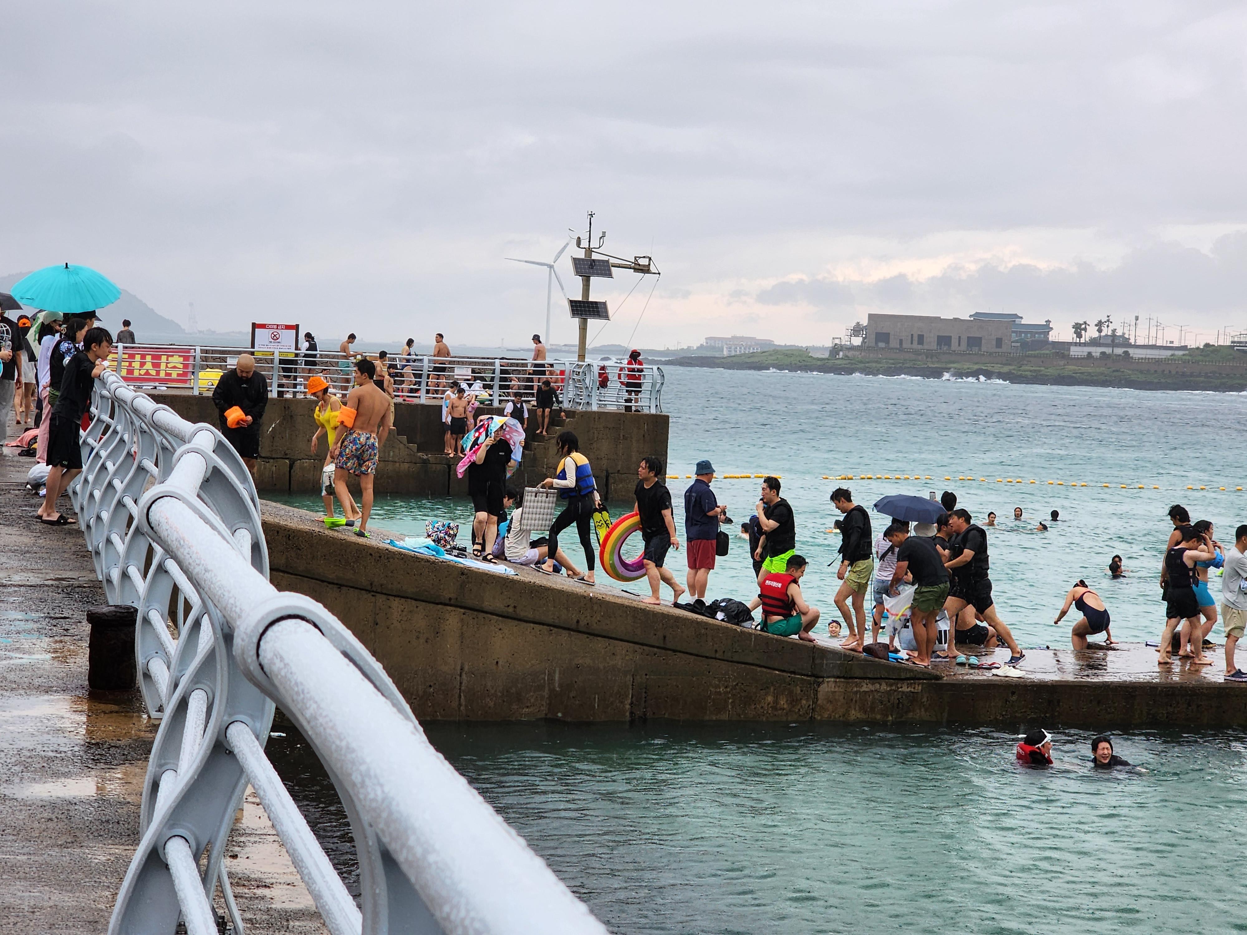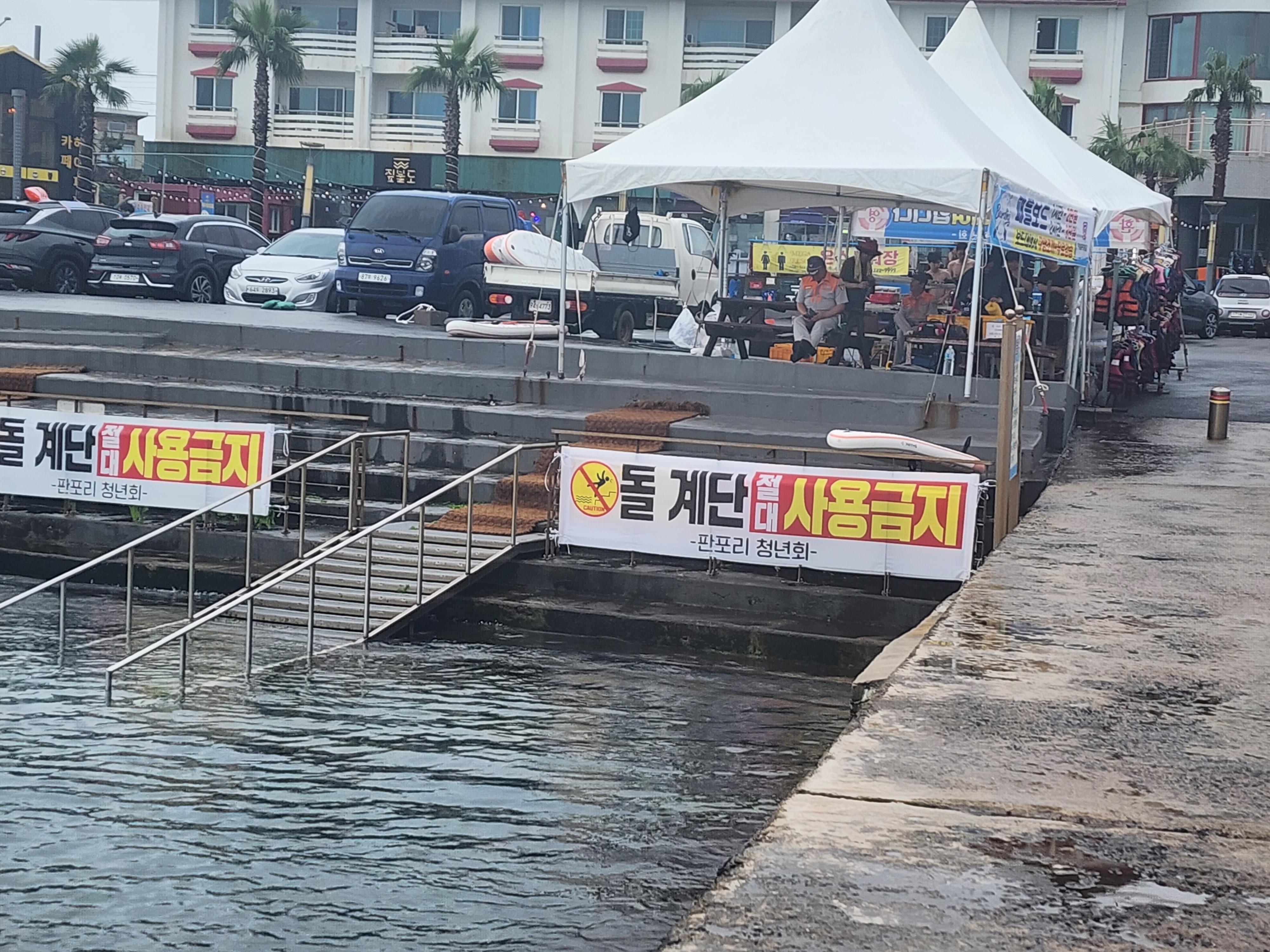 7월 8일경 토요일 장마철이라 판포포구에 가보니 물놀이하는 분들, 특히 선남선녀 청년들이 많이 있었다. 그래서 사진을 찍은 후 올린다. 판포포구는 협재해수욕장과 금능해수욕장에서 차량으로 10분 정도로 가까운 위치에 있어 여름 성수기에 해수욕장뿐만 아니라 물놀이 명소로도 유명한 곳이다. 바람이 많은 제주도에서도 판포포구에서는 방파제 덕분에 잔잔한 바다에서 물놀이할 수 있고 스노클링도 즐길 수 있는 곳이다. 안전요원까지 배치되어 있어서 좋았다.