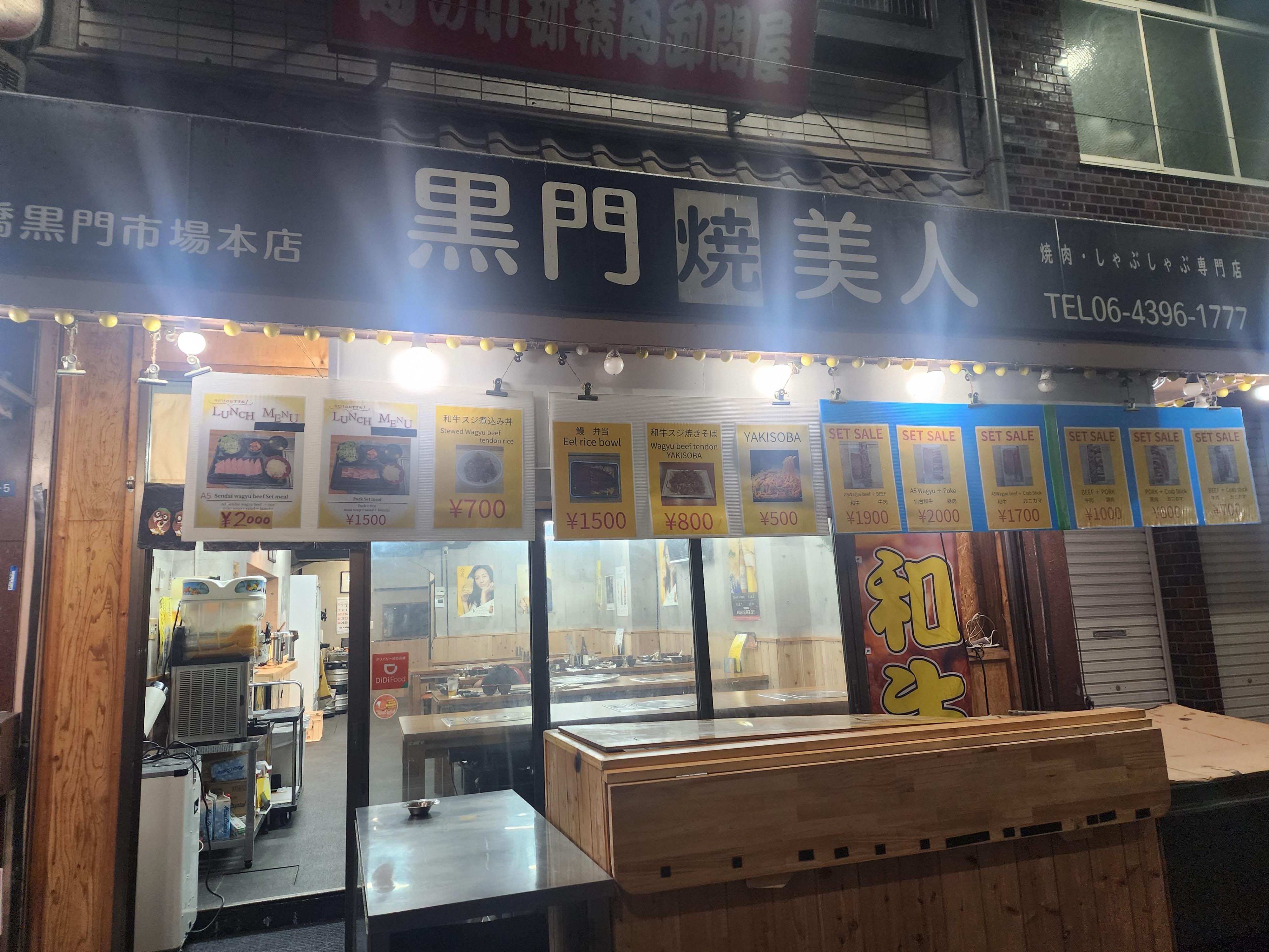 ▶ 저녁으로 소고기와 돼지고기 구이를 먹은 흑문소미인( 黑門燒美人; 쿠로몬야키비진) 식당; 연락처; 06-4396-1777 쿠로몬시장 중간지점